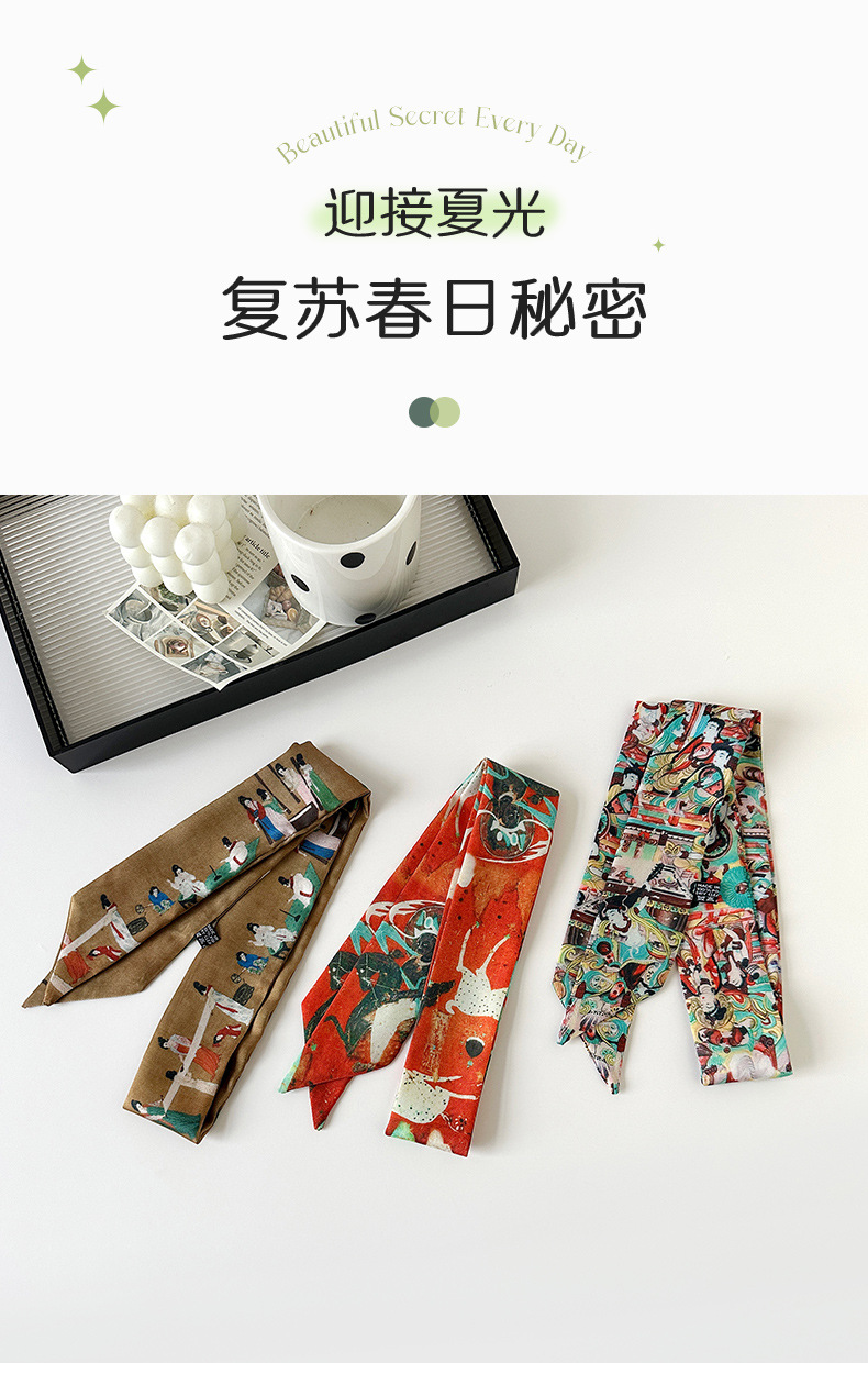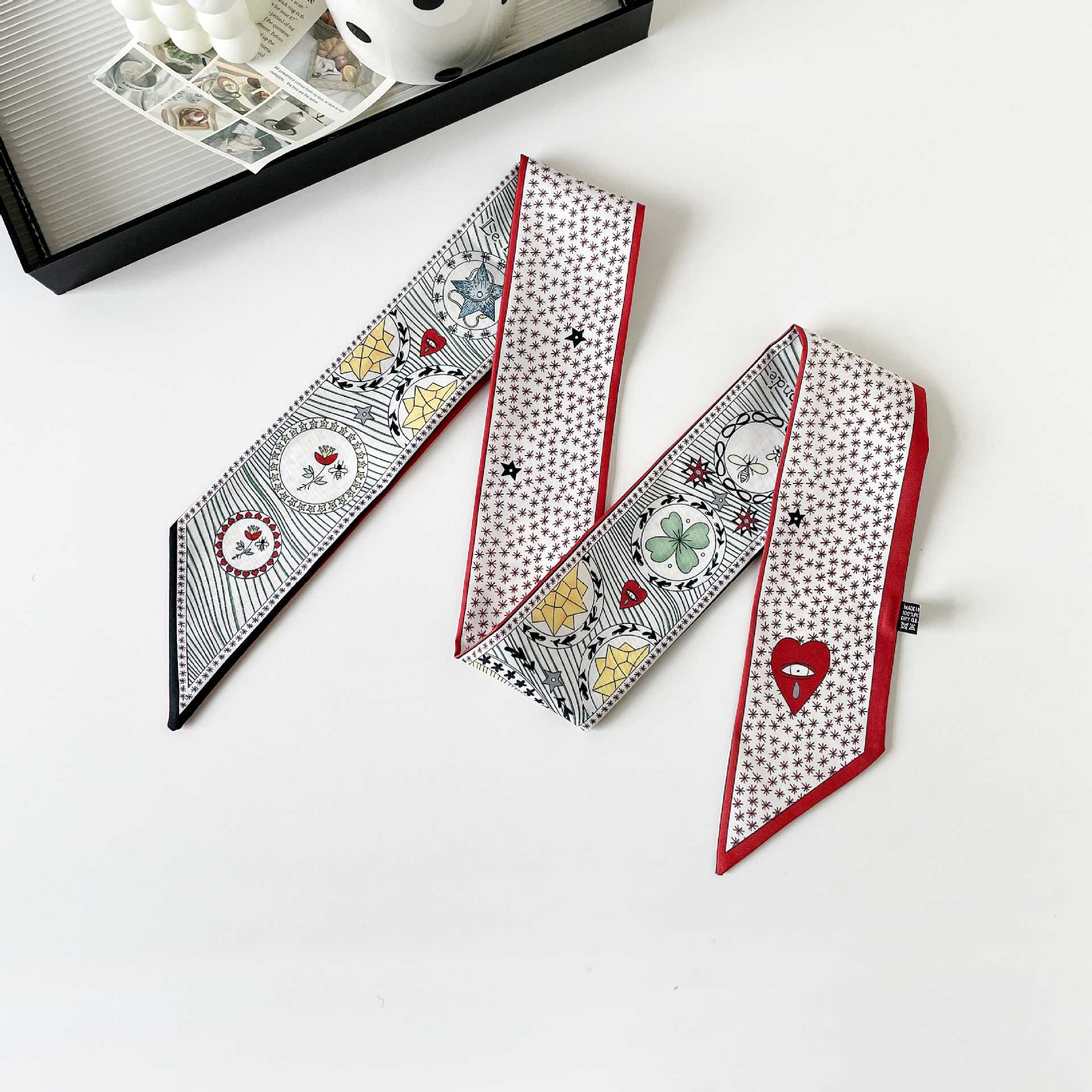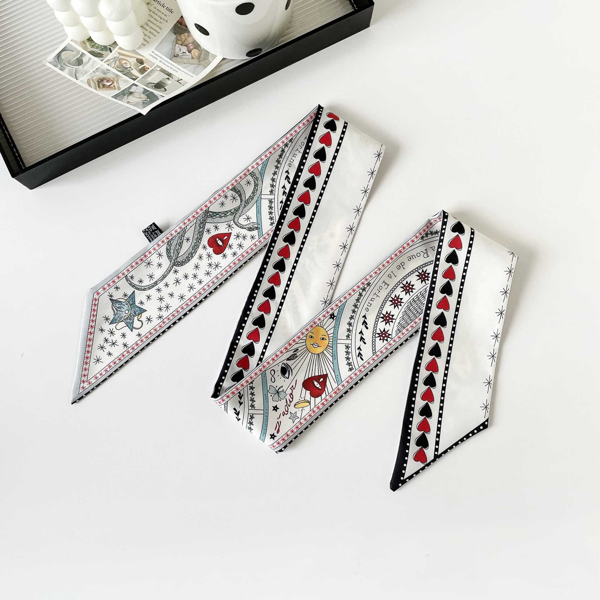 오리지널 디자인 타로 카드 시리즈 리본 스카프 능직 장식 스카프 머리띠 얇고 긴 작은 실크 스카프 가방 묶음