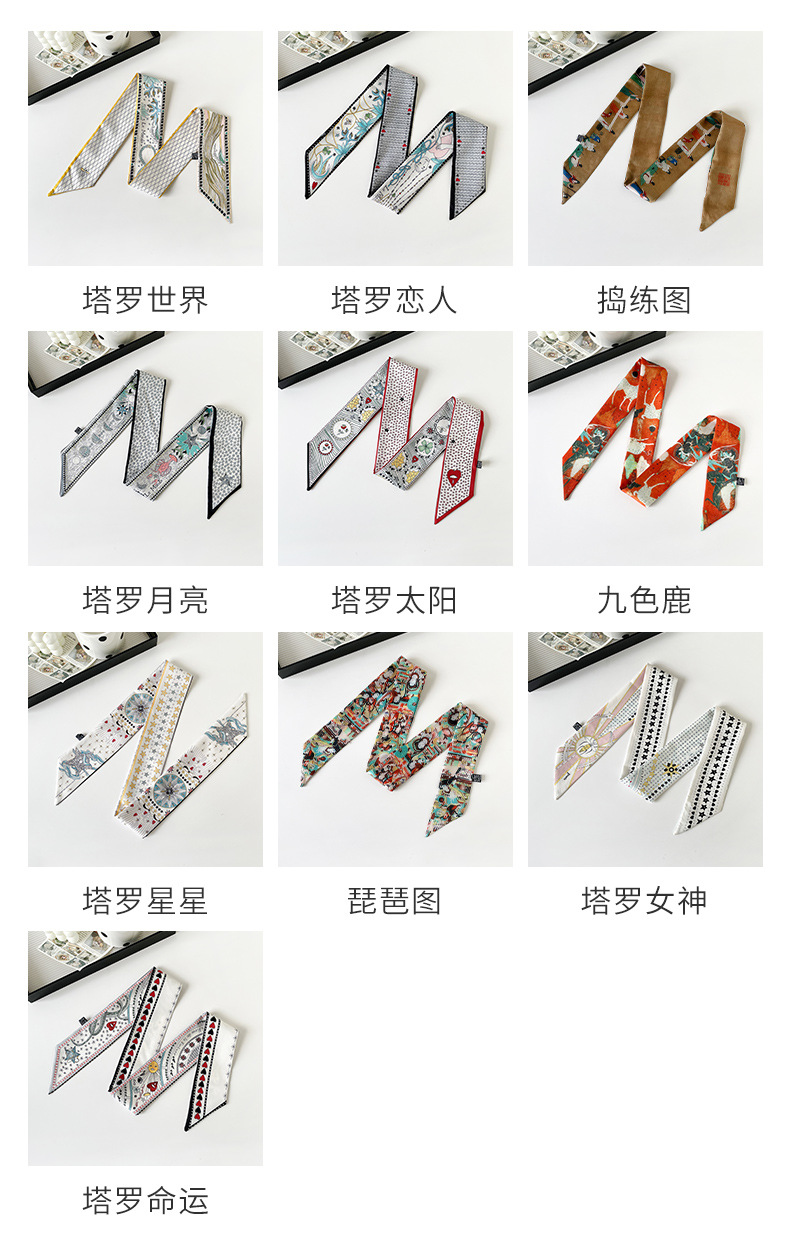 오리지널 디자인 타로 카드 시리즈 리본 스카프 능직 장식 스카프 머리띠 얇고 긴 작은 실크 스카프 가방 묶음스토어 가기