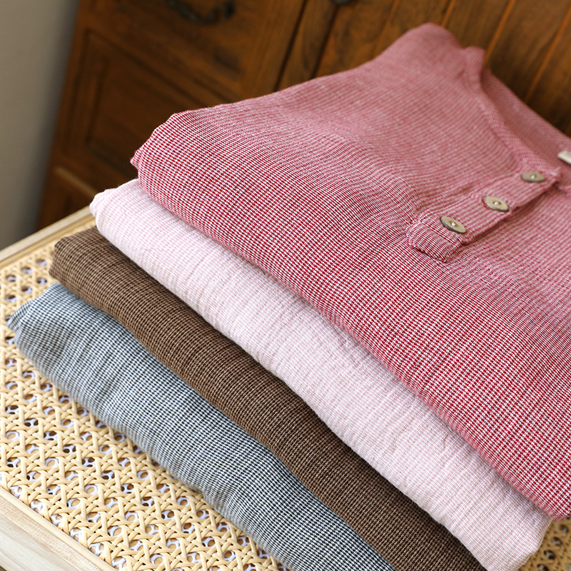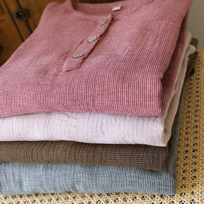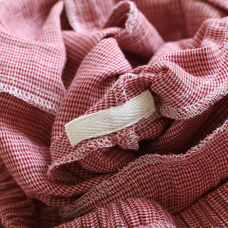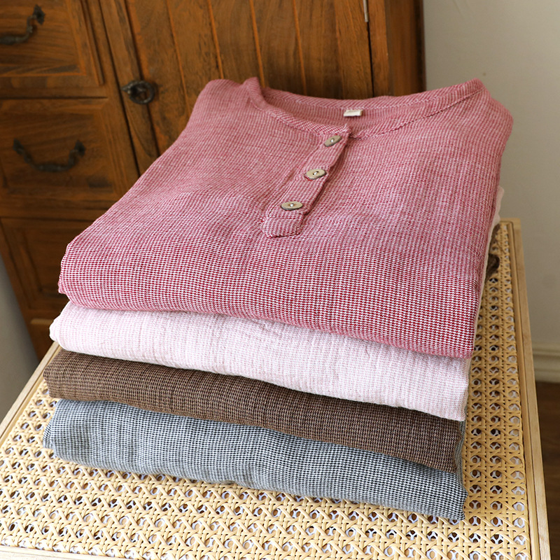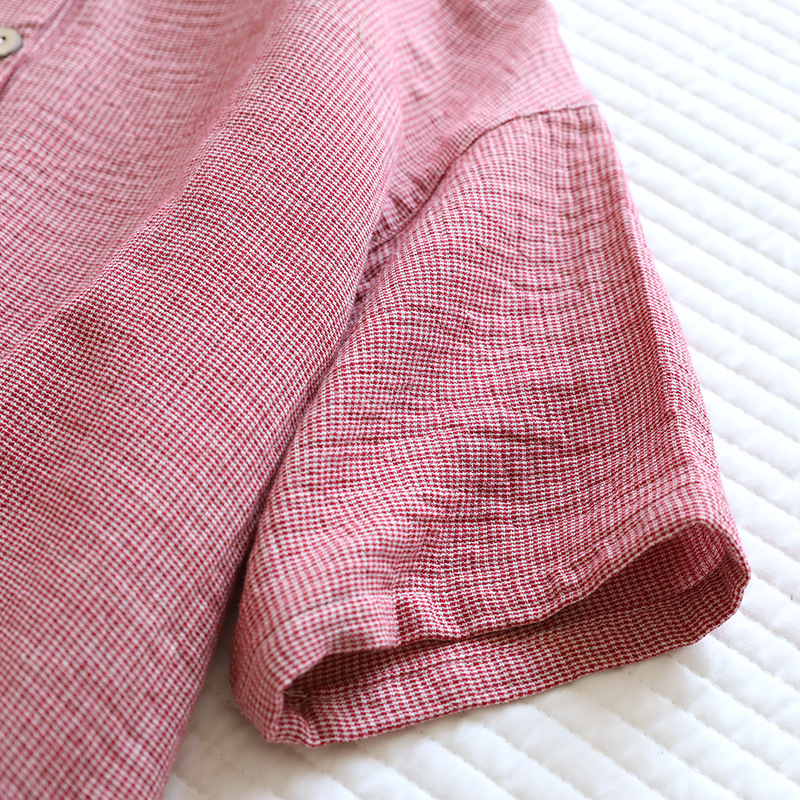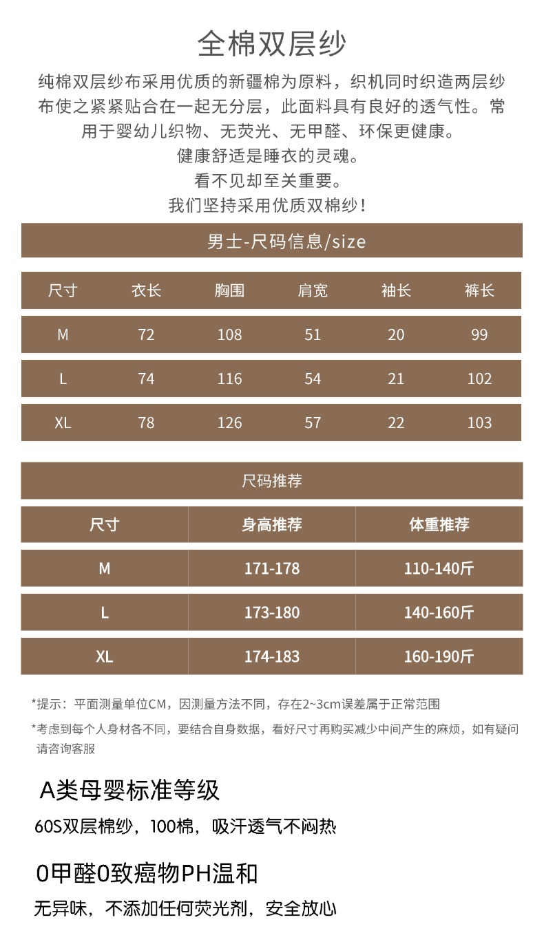 평범한 커플의 면 두 배 층 원사 반팔 바지 세트 간단한 둥근 목 파자마 캐주얼 외관이 느슨하게 착용