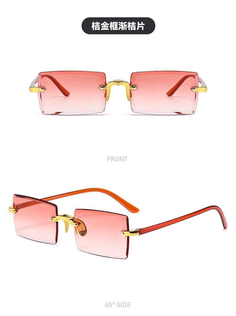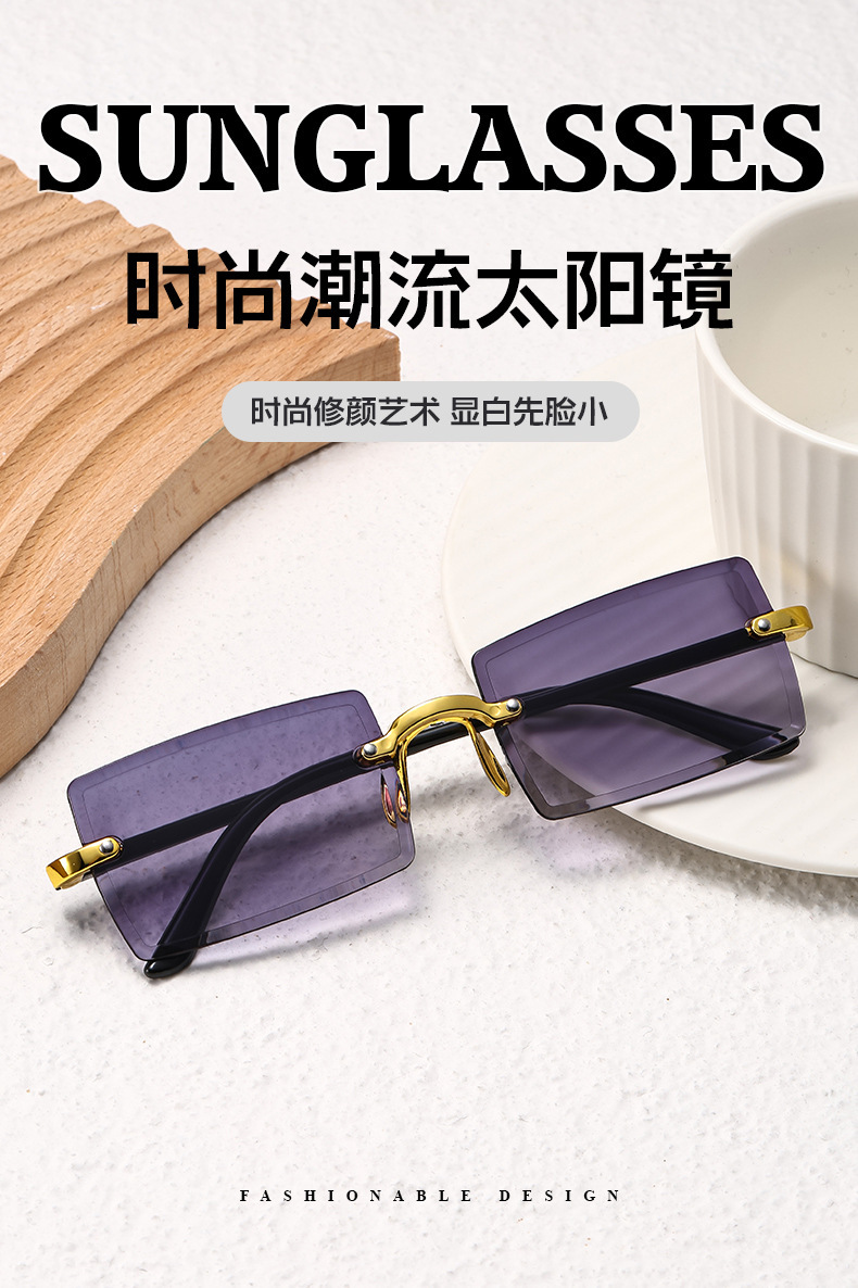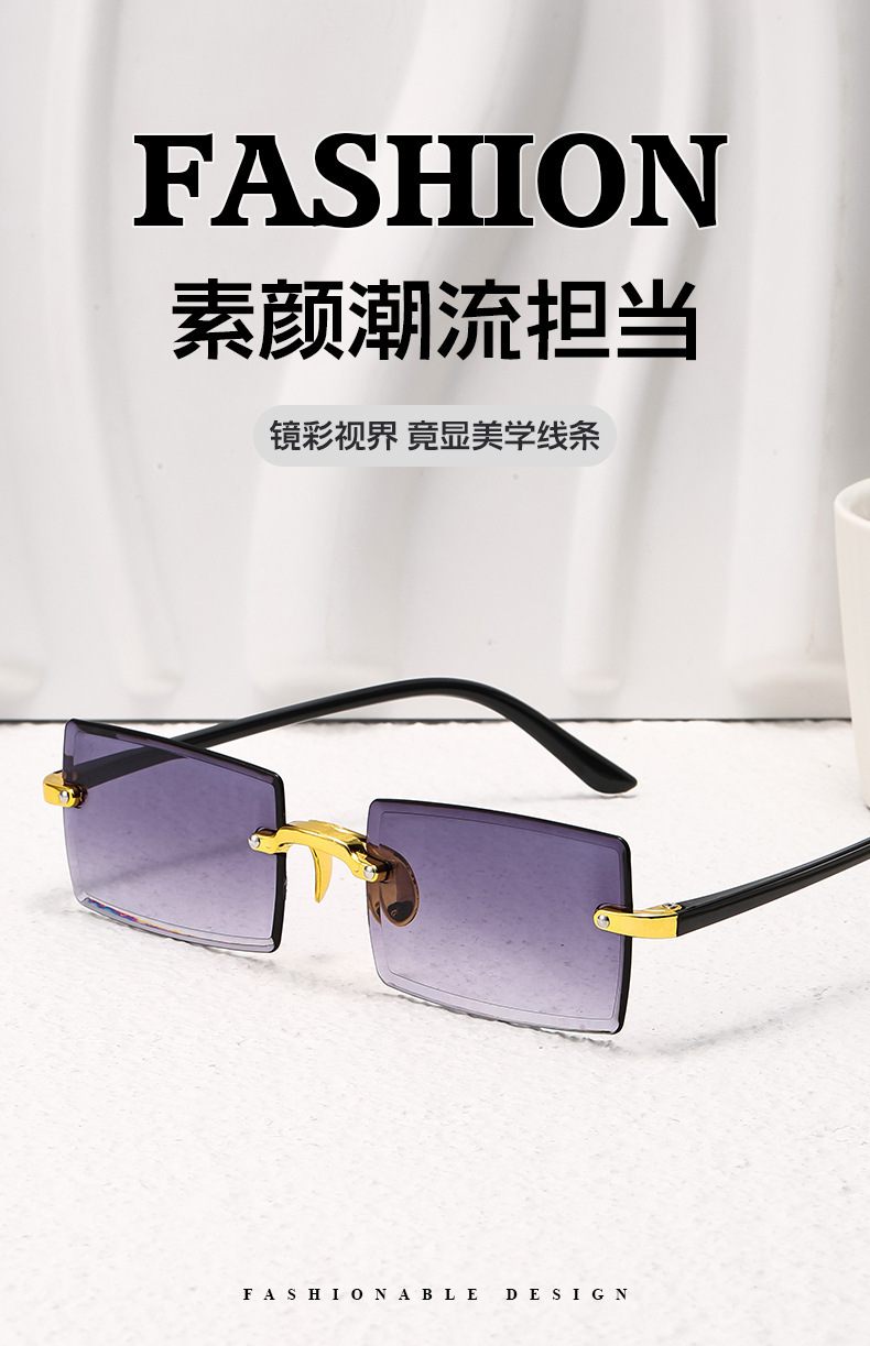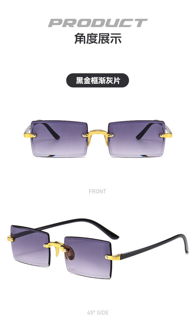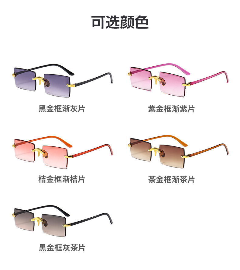 새로운 프레임리스 에지 컷 스퀘어 그라데이션 오션 선글라스 유럽과 미국 패션 인터넷 연예인 거리 사진 트렌디 선글라스