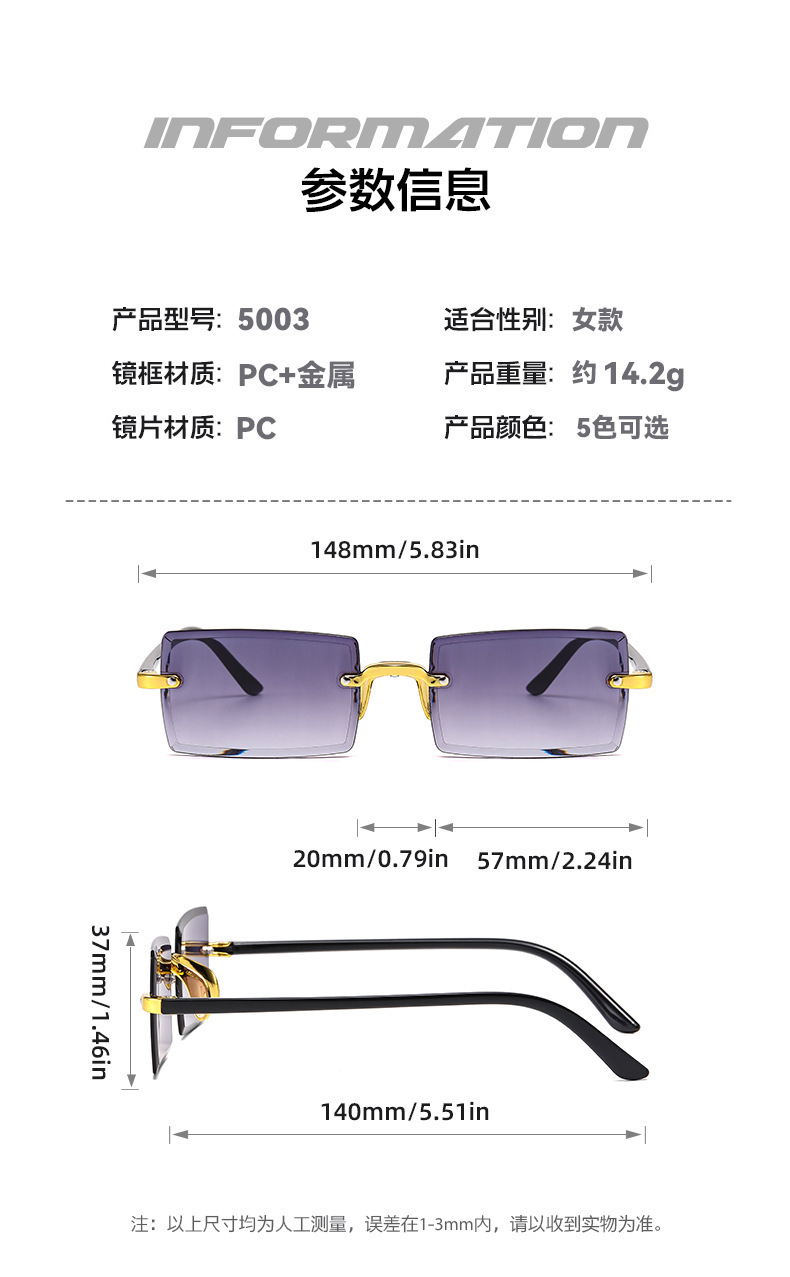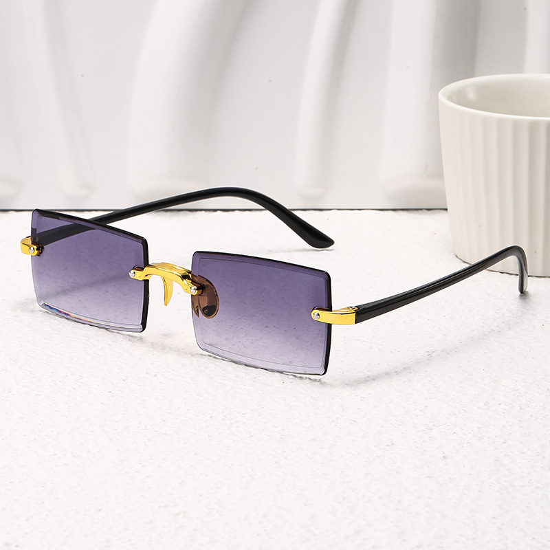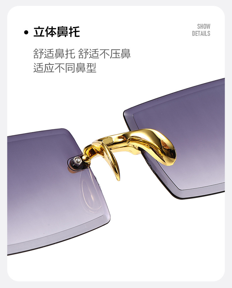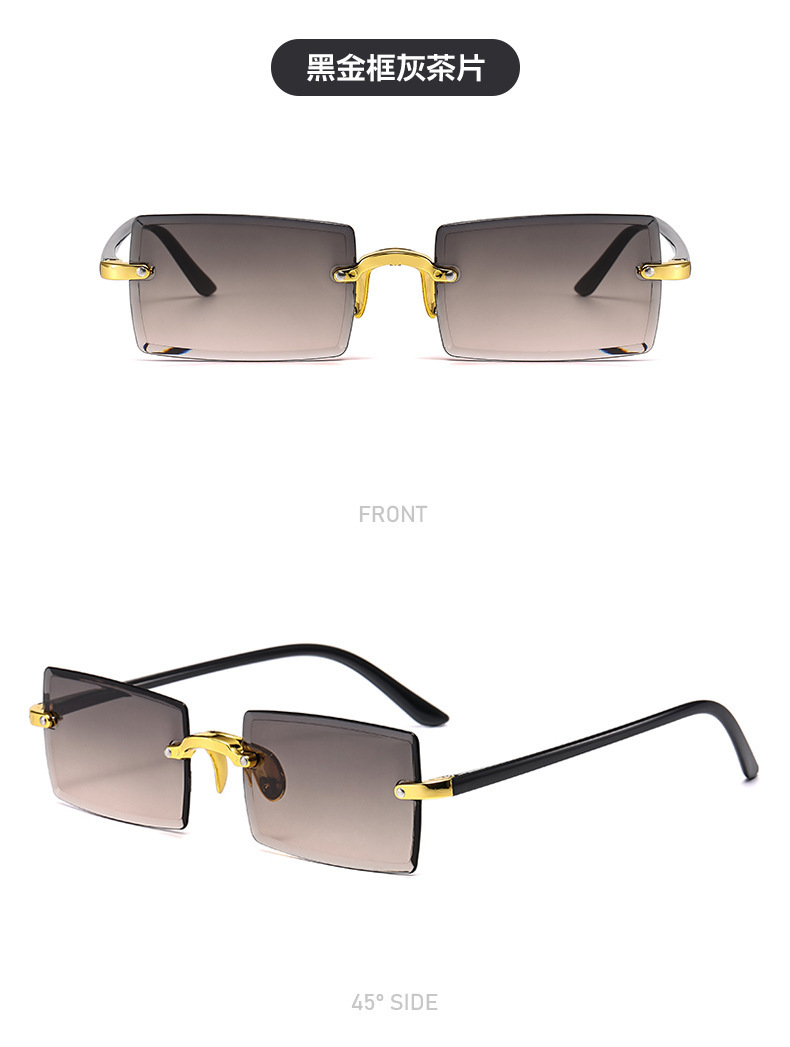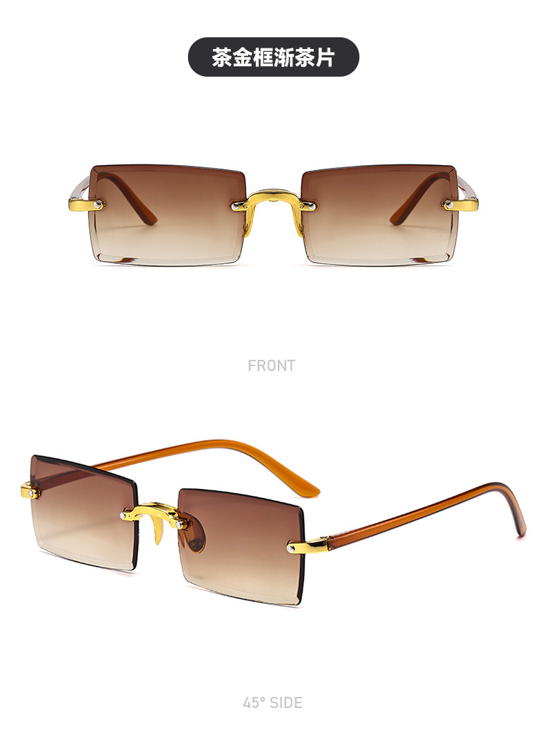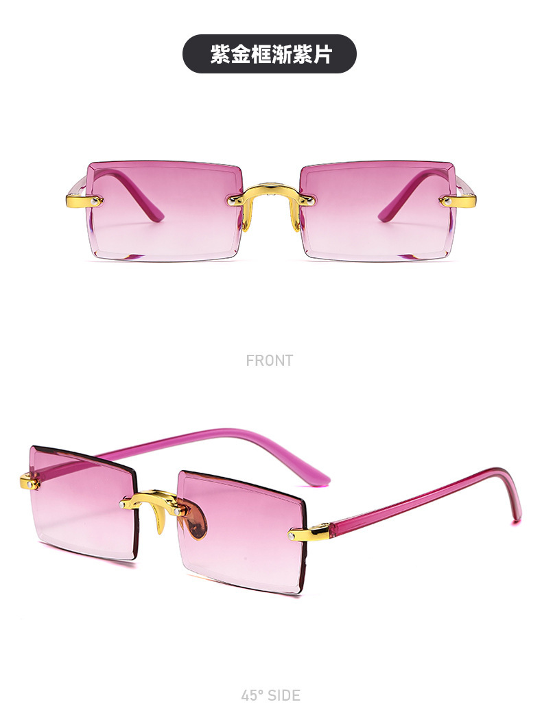 새로운 프레임리스 에지 컷 스퀘어 그라데이션 오션 선글라스 유럽과 미국 패션 인터넷 연예인 거리 사진 트렌디 선글라스