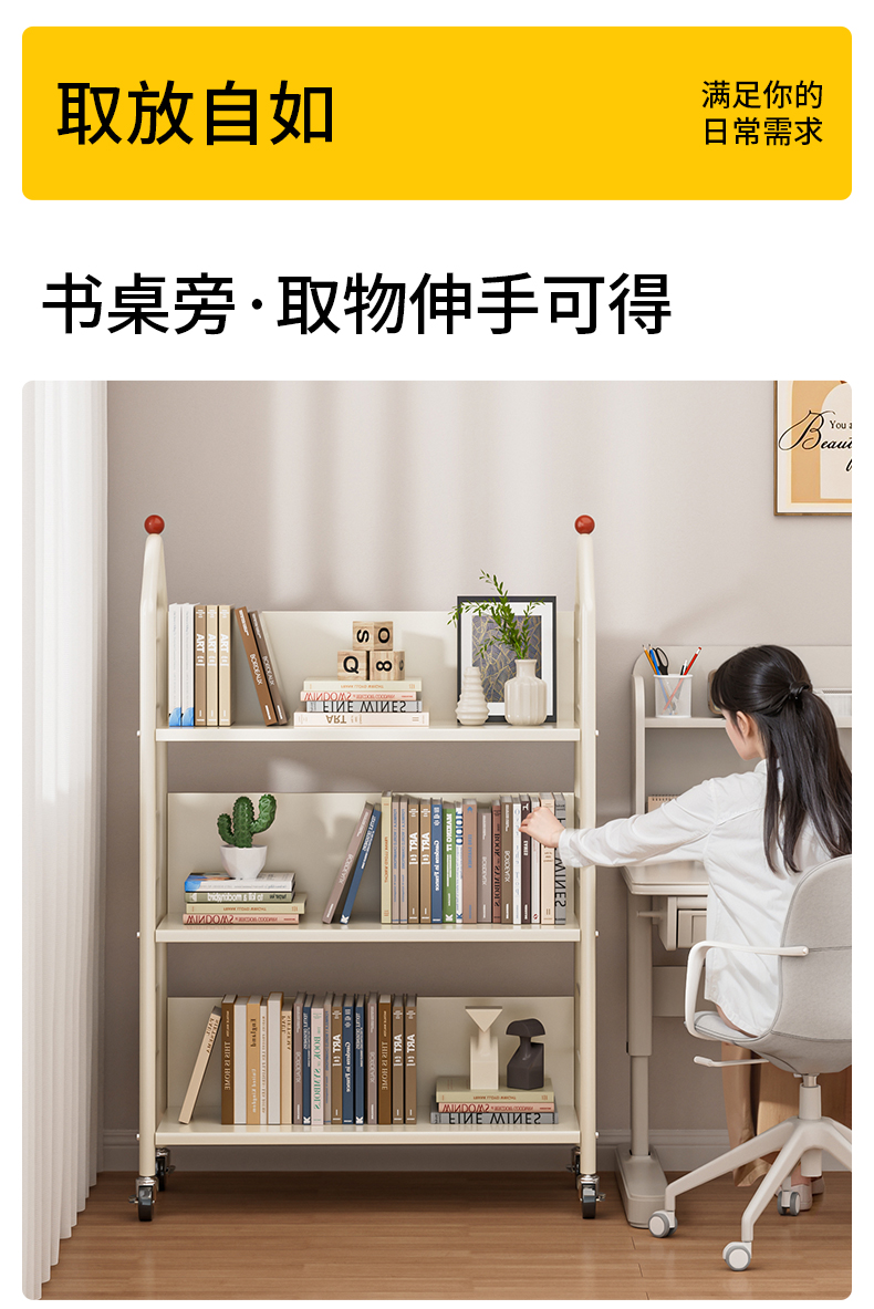 책장 보관 랙 바닥에서 바퀴로 이동식 어린이 작은 책장 홈 간단한 카트 독서 보관 랙 철