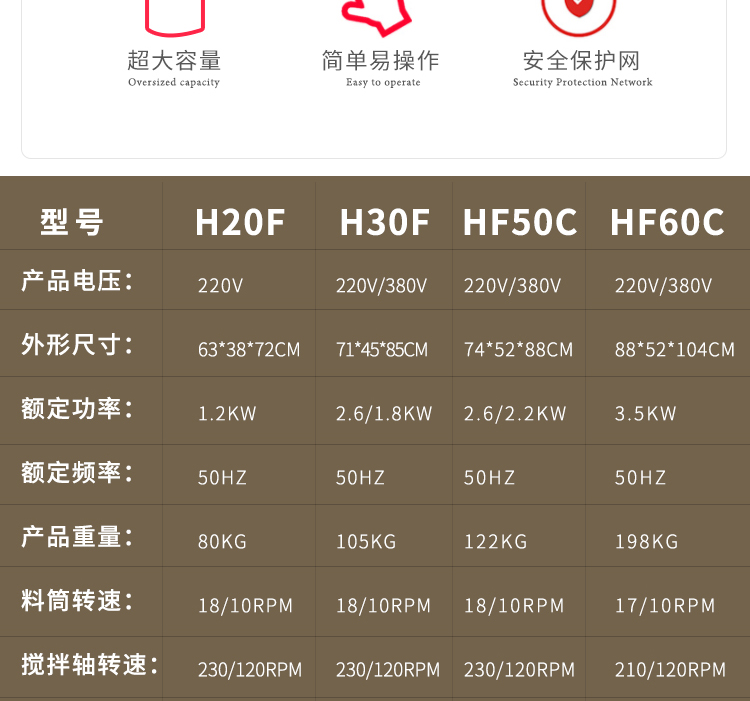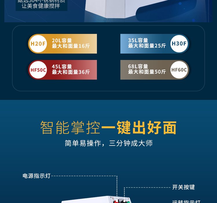 • HF50C (최대 반죽 용량 18kg 밀가루) 45리터