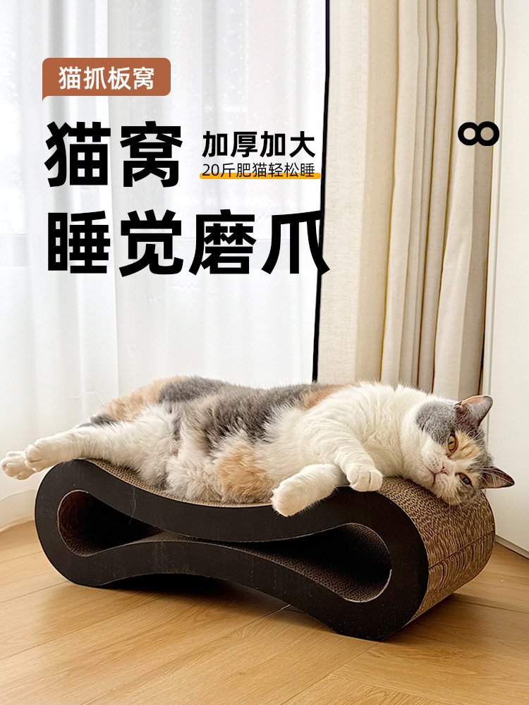 8자형 고양이 스크래쳐 골판지 맞춤 제작, 8자형 긴 의자 고양이 소파, 초대형 내마모성, 부스러기 없는 고양이 스크래쳐 둥지스토어 가기