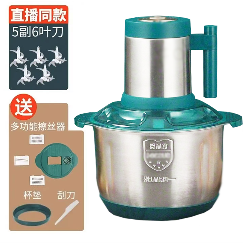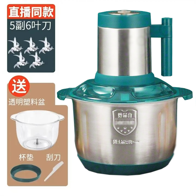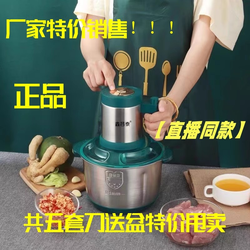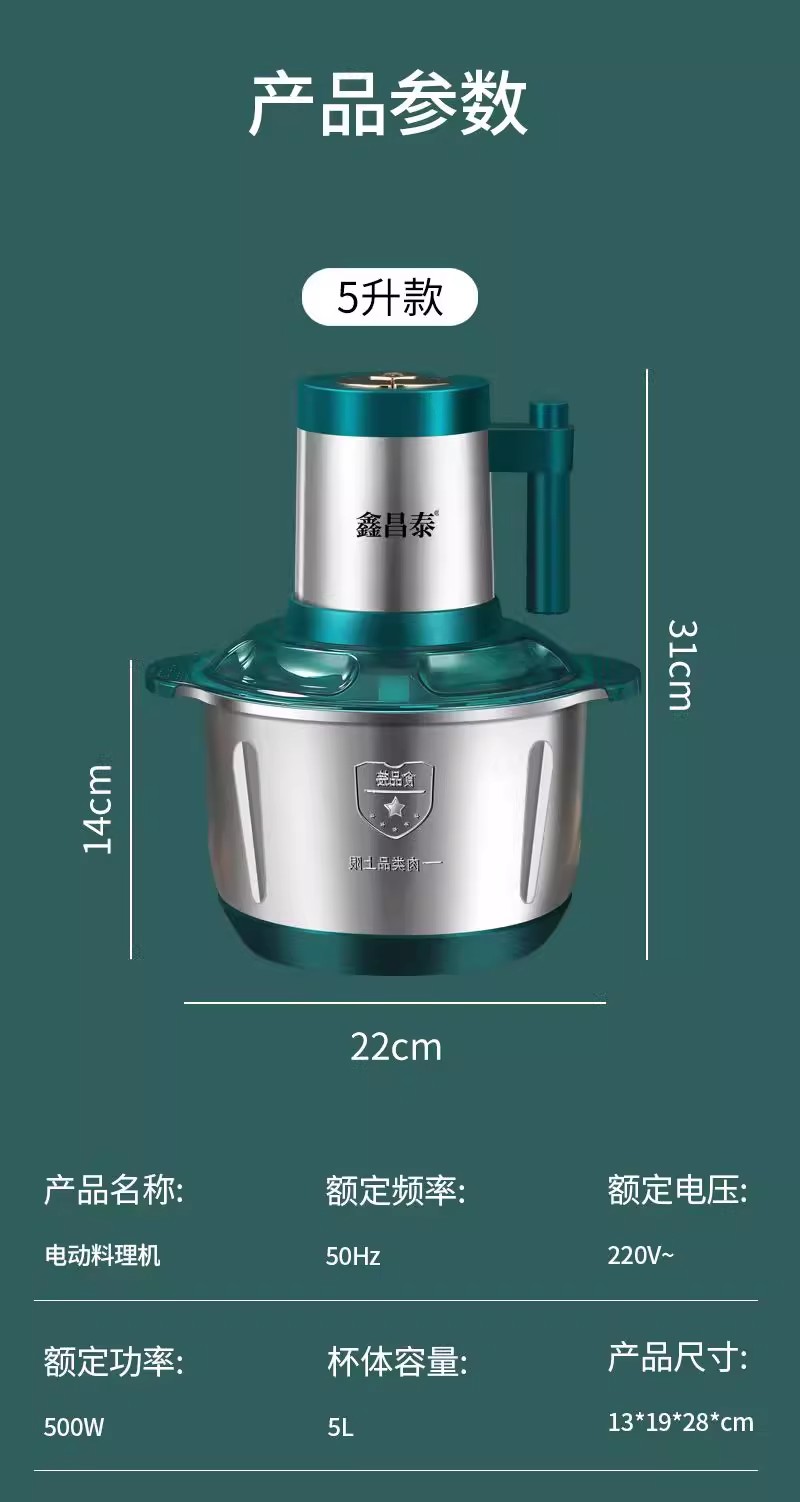 Xinchangtai 더블 분지 고기 분쇄기 5 리터 6 블레이드 새로운 가정용 반죽, 채소 다지기, 다기능 요리 전기스토어 가기