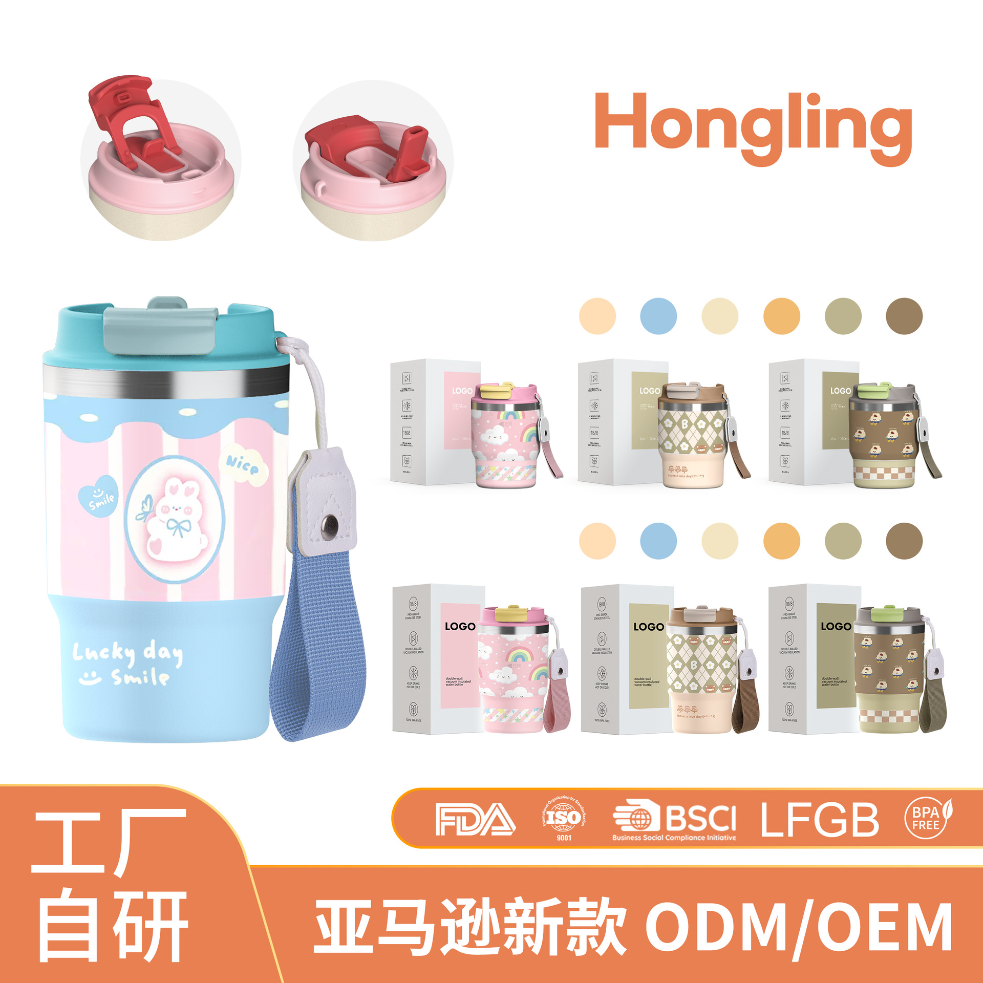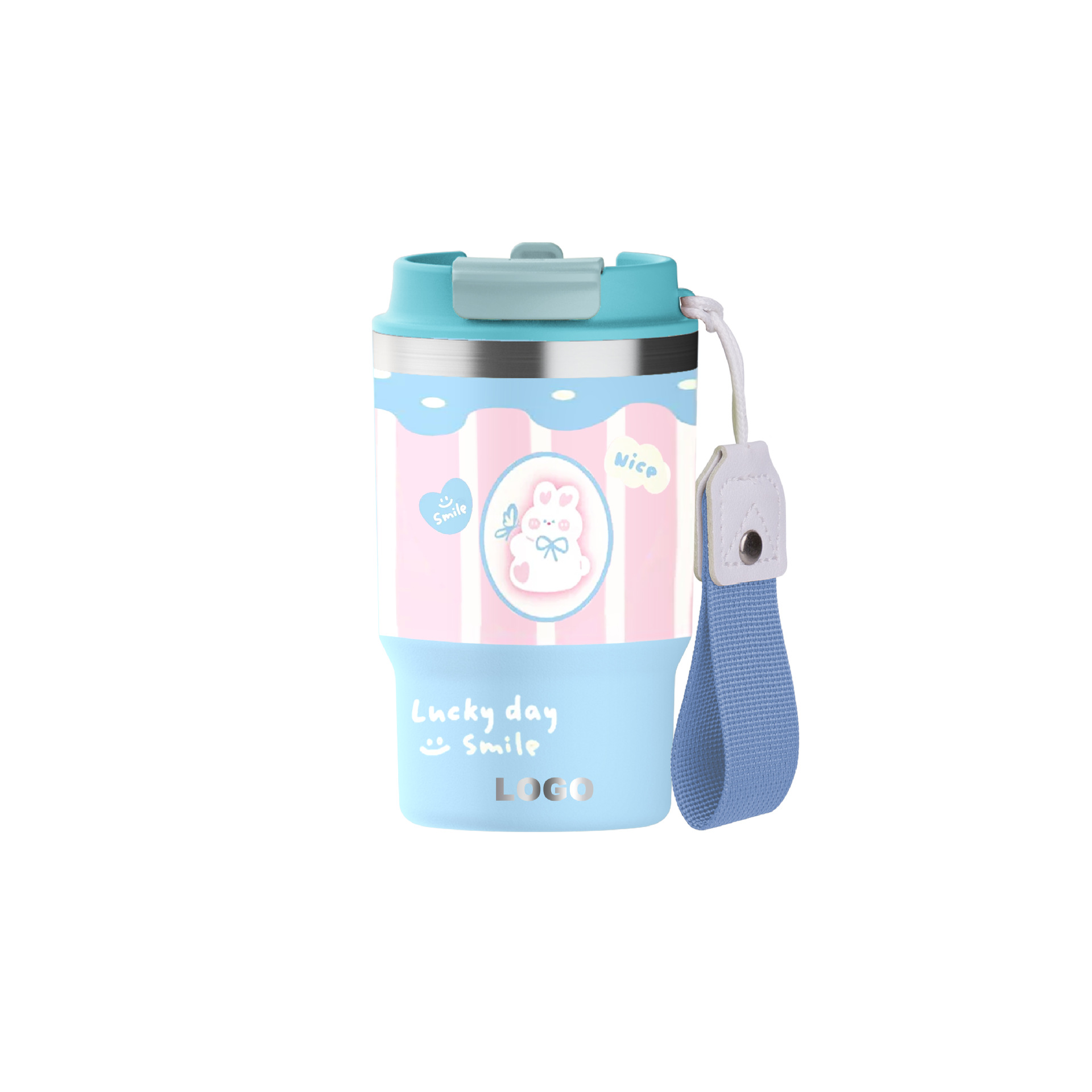 아마존 새로운 더블 마시는 로프 12oz 커피 컵 304 스테인레스 스틸 만화 휴대용 밀짚 보온병 컵 사용자 정의