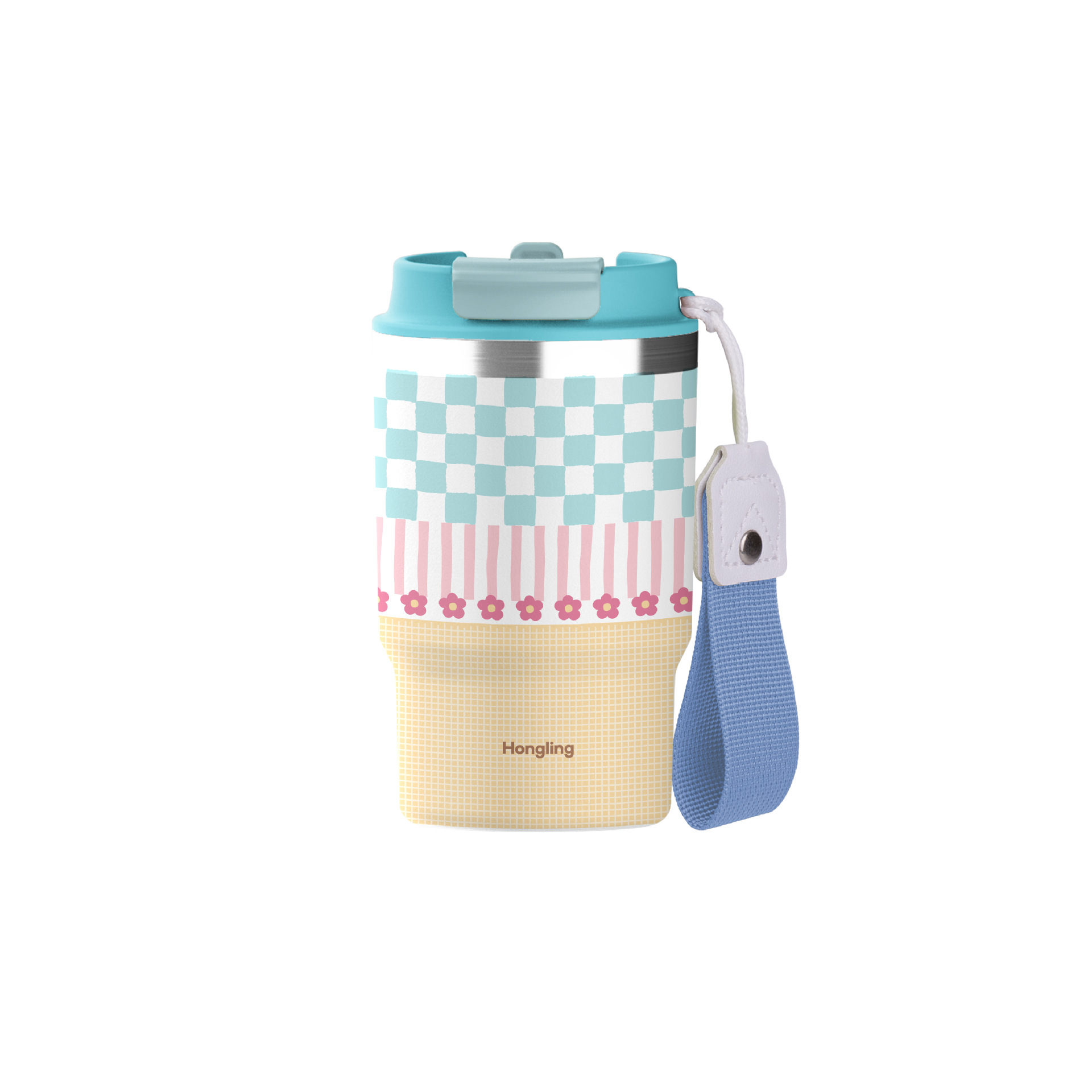 • 파란색 격자 무늬 꽃무늬 커피 컵