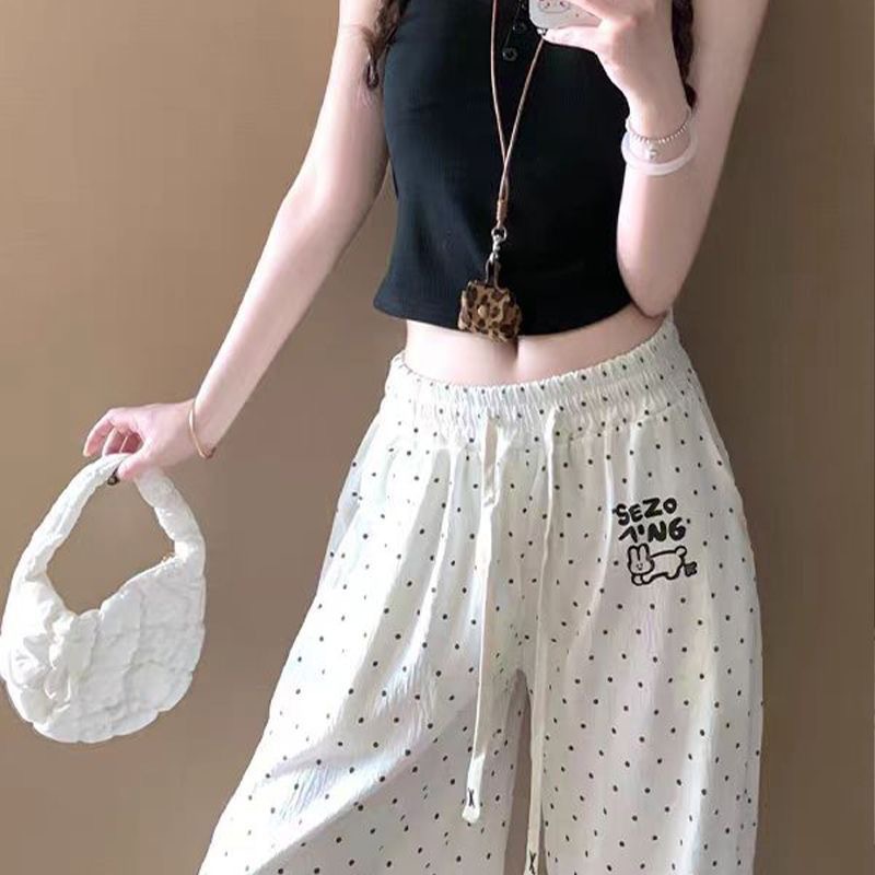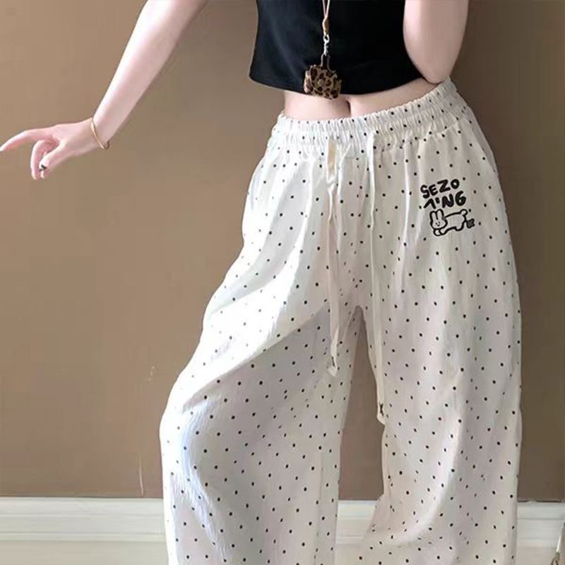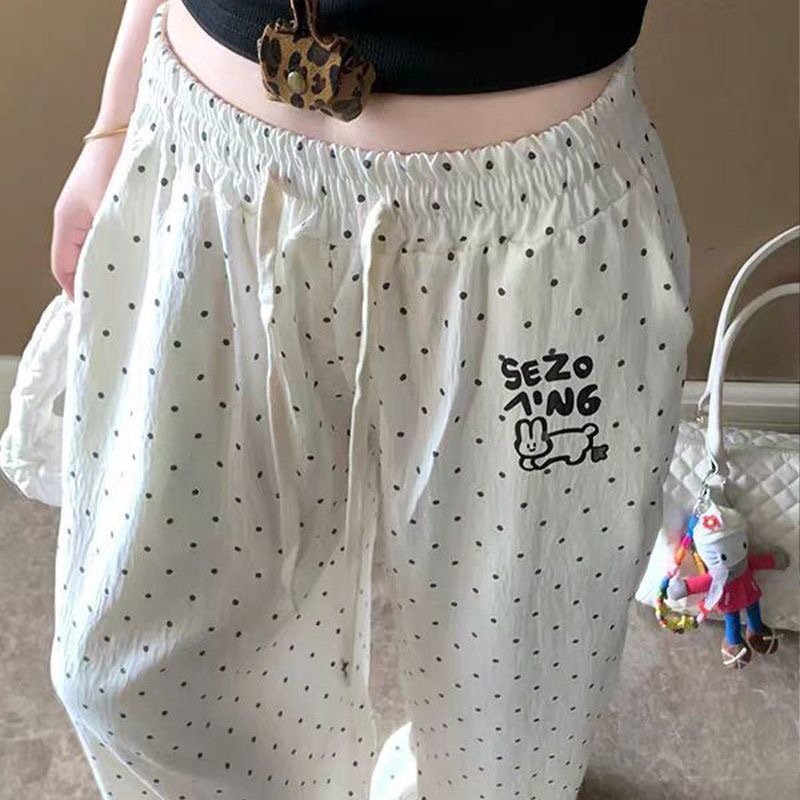 • 흰색 도트무늬 토끼바지 [주머니 없음, 끈 없음]
