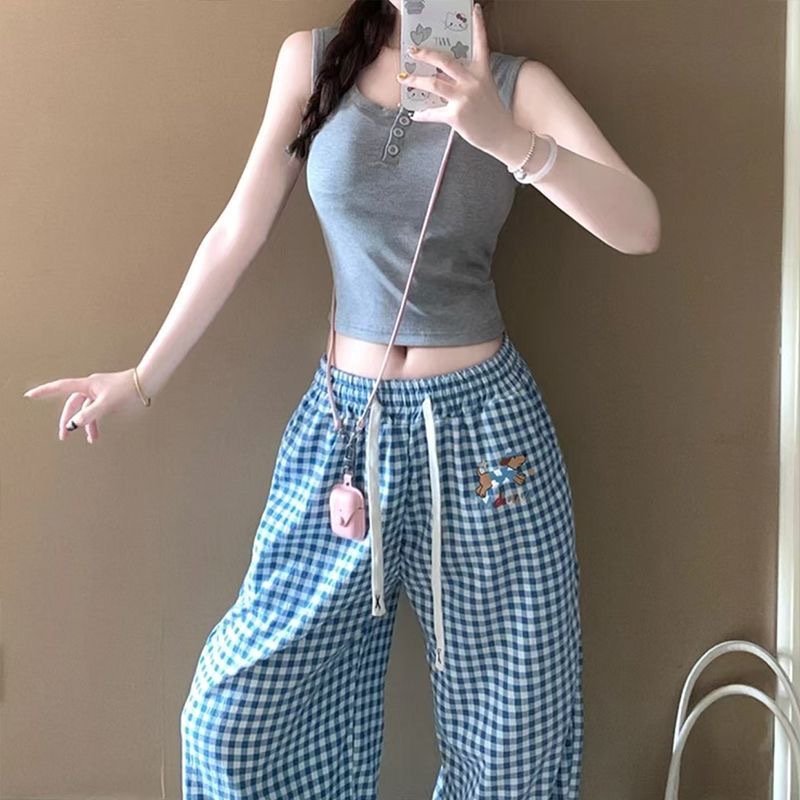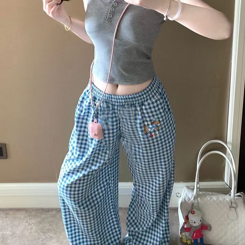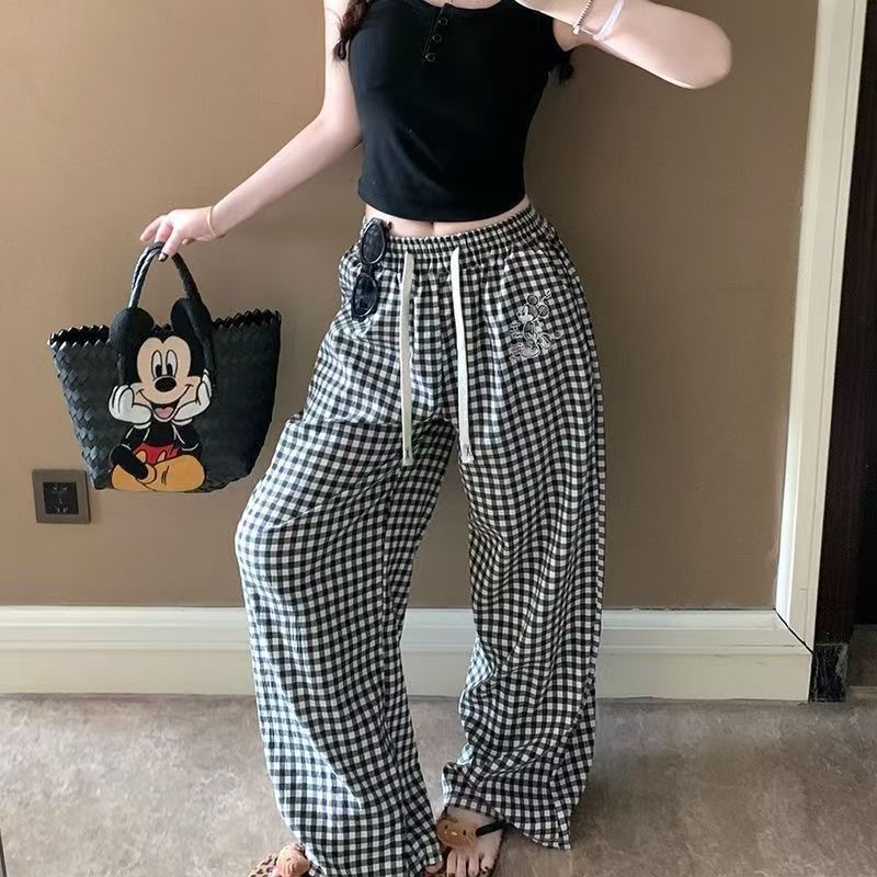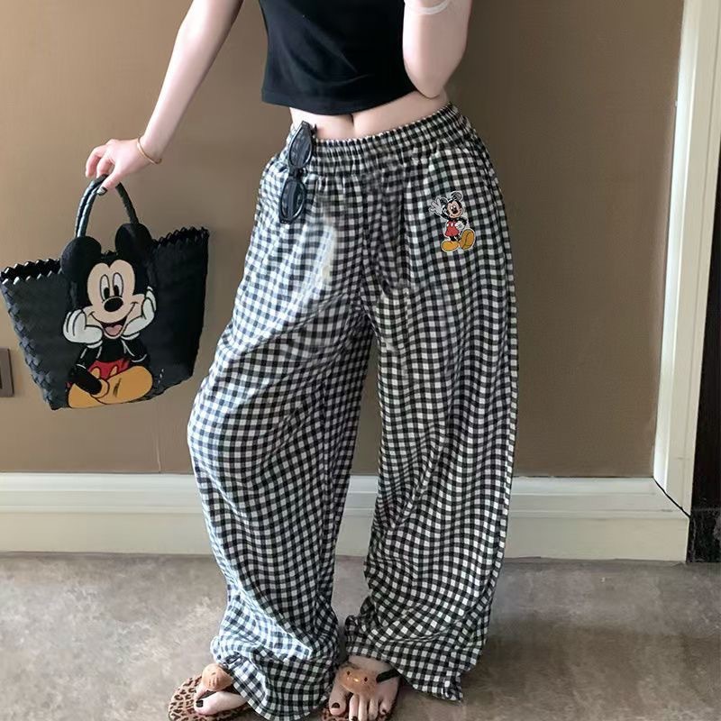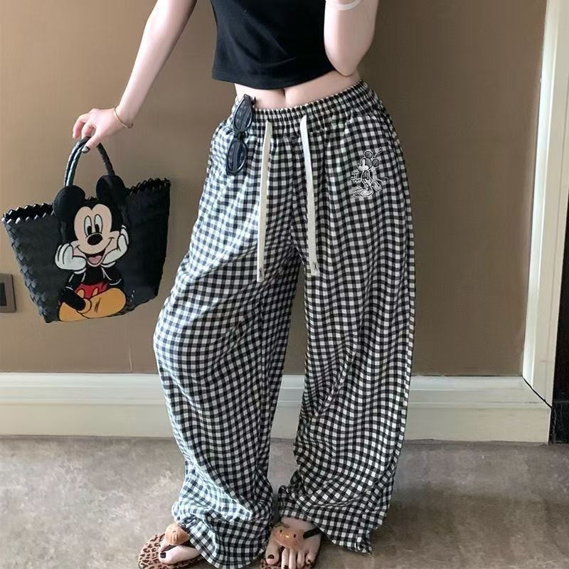 • 흑백 체크 무늬 A 스타일 미키 팬츠 [주머니 없음, 끈 없음]