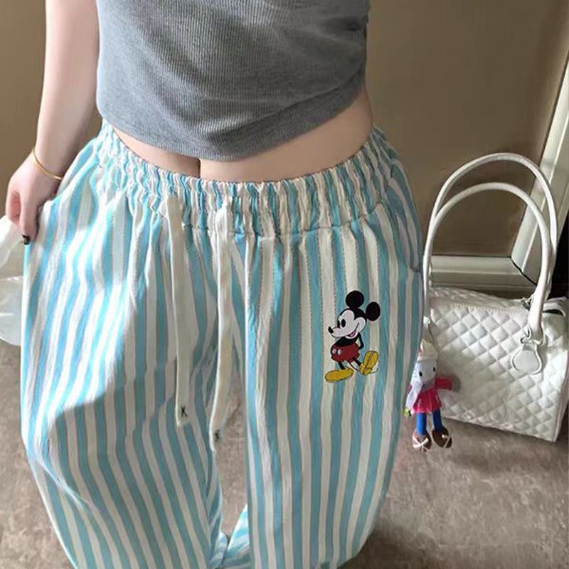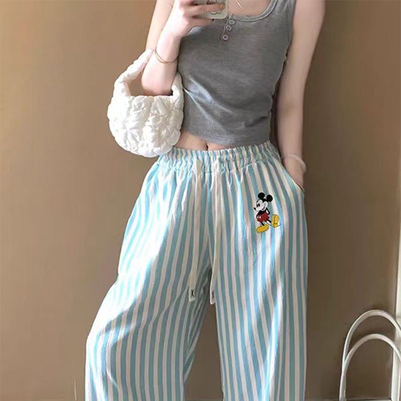 • 파란색과 흰색 줄무늬 미키 바지 [주머니 없음, 끈 없음]