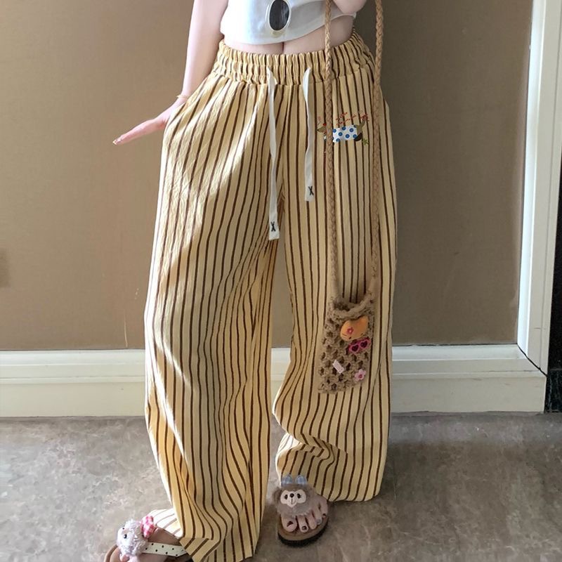 • 파란색과 흰색 줄무늬 미키 바지 [포켓 + 끈]