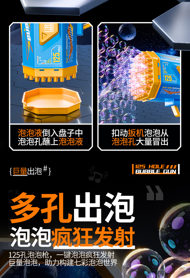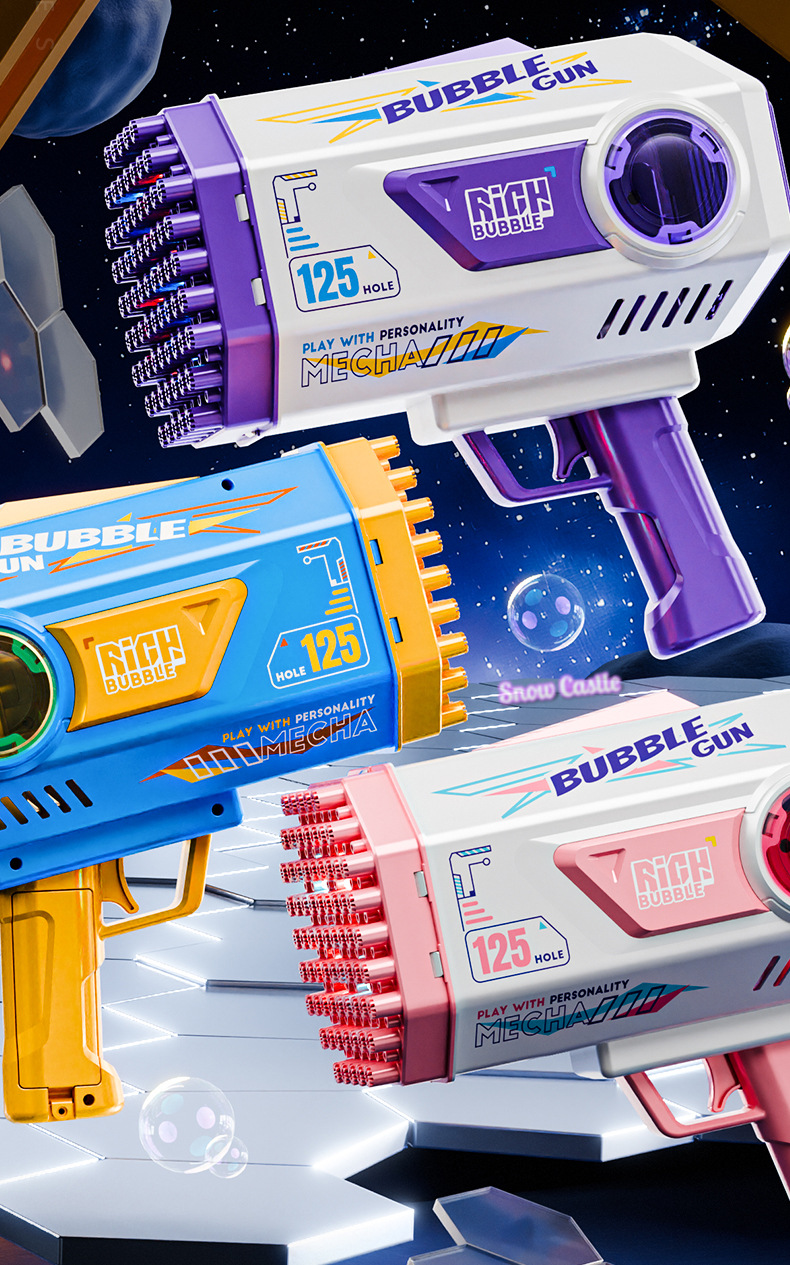 2025 새로운 국경 간 버블 머신 어린이 휴대용 인터넷 연예인 전기 개틀링 125 홀 버블 건 소녀 장난감