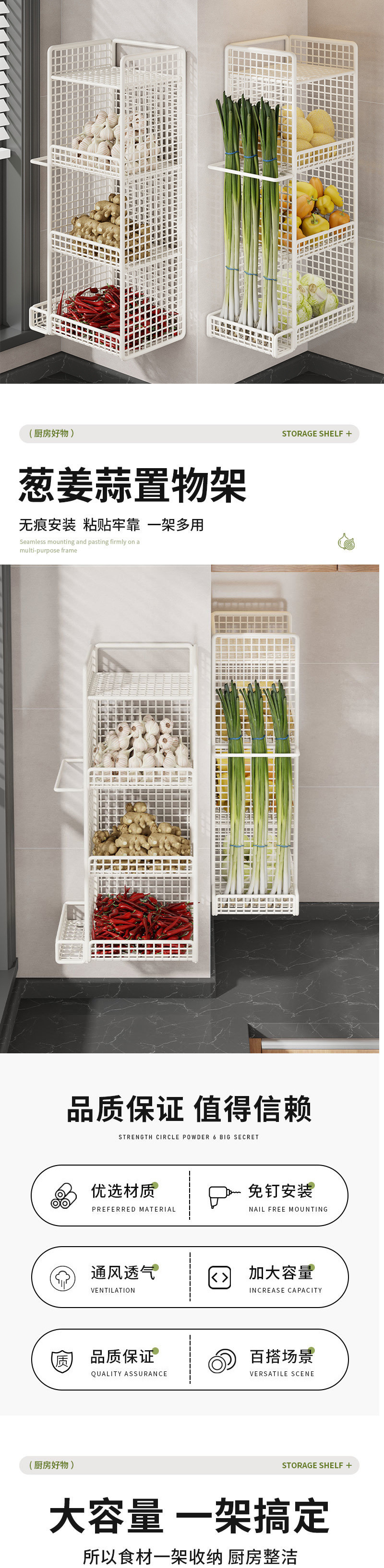 주방 양파, 생강, 마늘 보관함, 벽걸이형 선반, 다층 야채 및 과일 바구니 선반스토어 가기