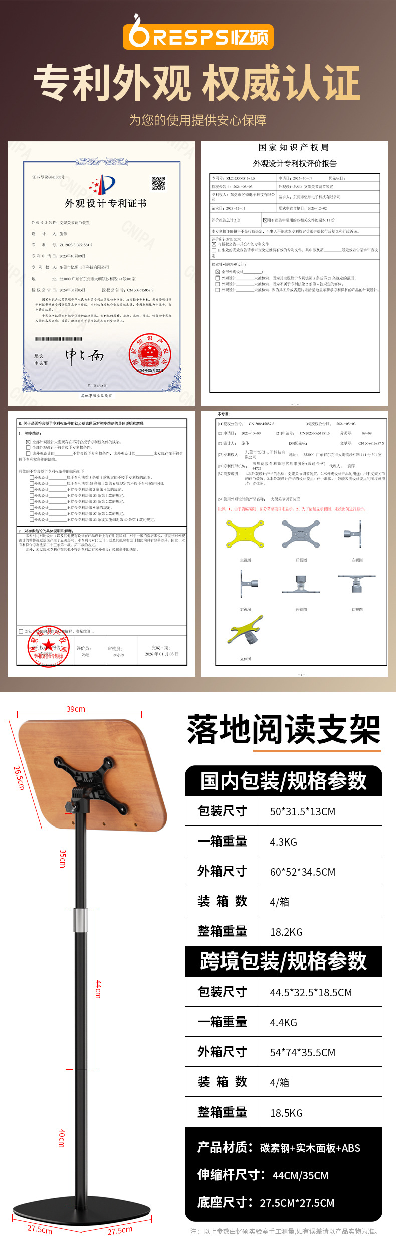 • 50-1.8M 플로어 스탠딩 독서 스탠드