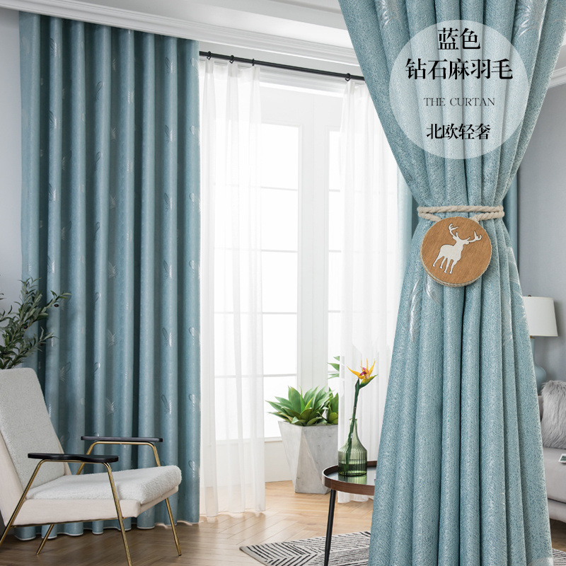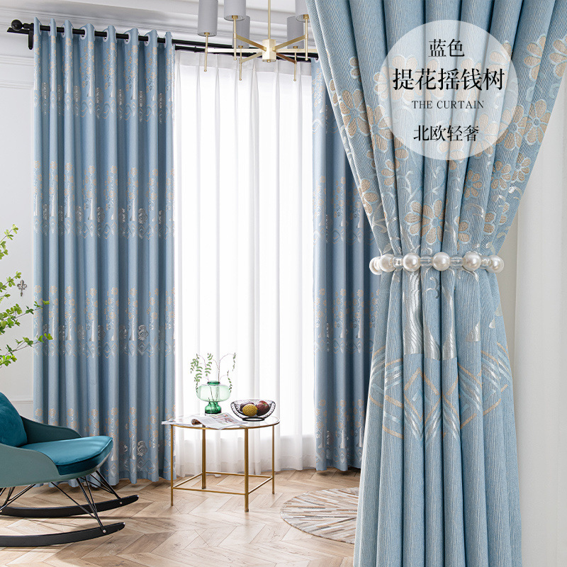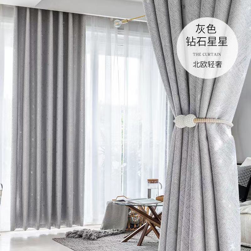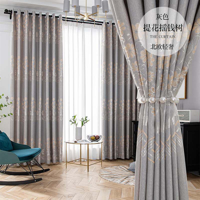 커튼 라이트 럭셔리 차양 천 빛 차단 후크 유형 완제품 거실 전체 소재 침실 현대적인 단순 처리