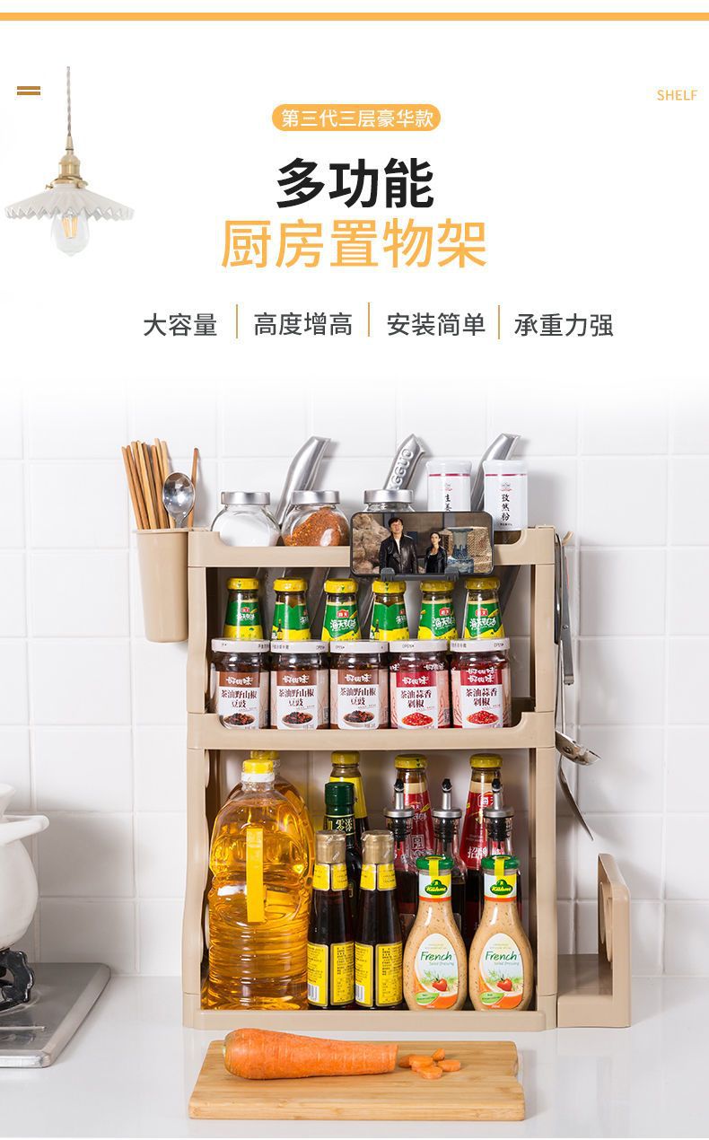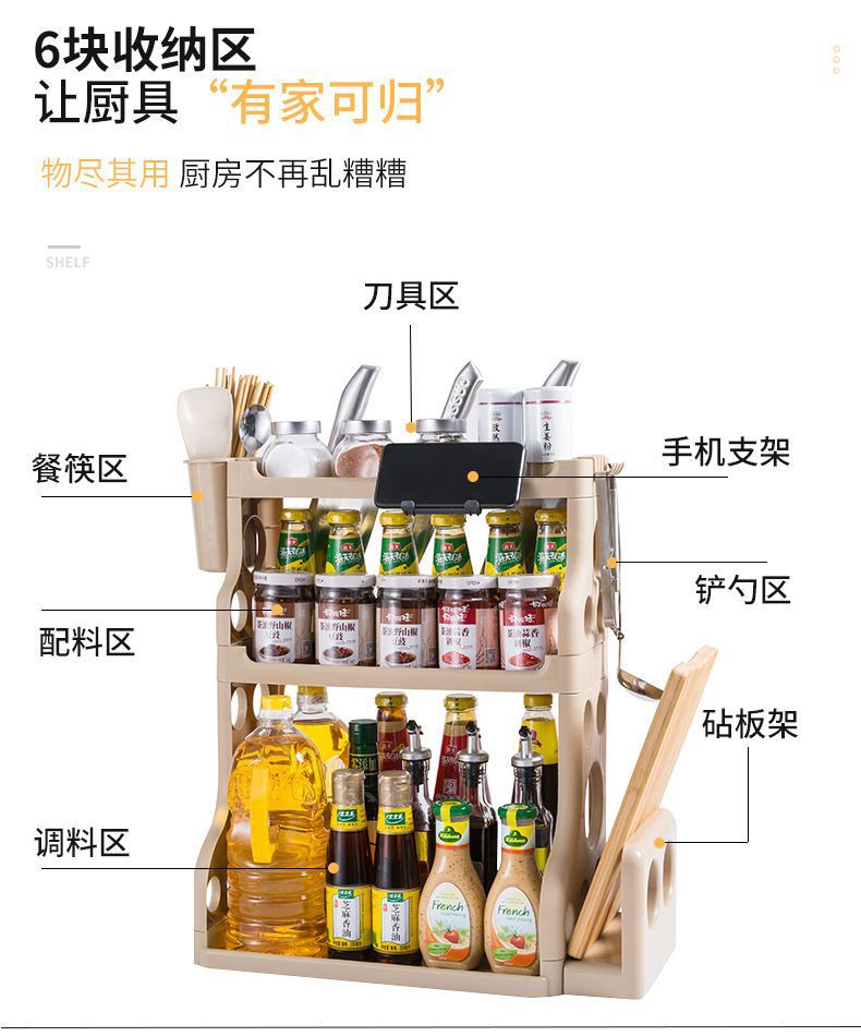 주방 수납 선반, 바닥 수납 선반, 조미료 선반, 주방 용품 플라스틱 수납 상자 선반, 칼 선반, 수납 선반, 두꺼운스토어 가기