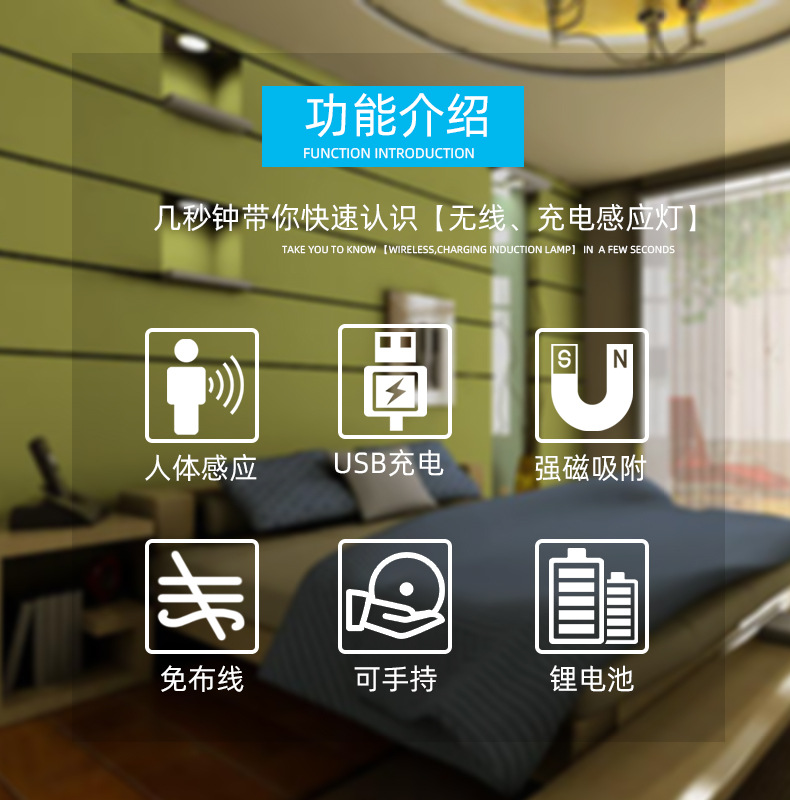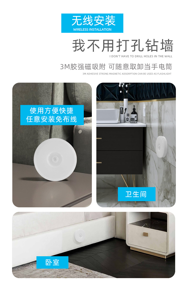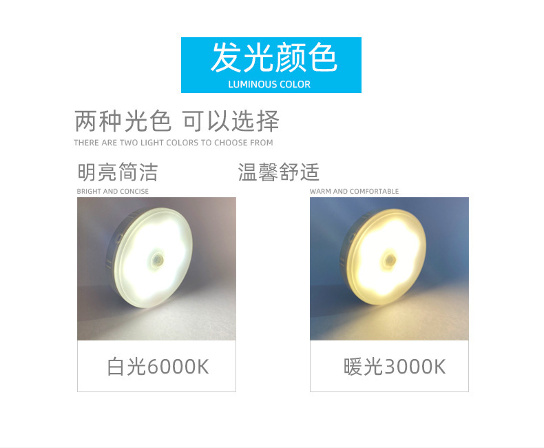 침실 머리맡에 있는 사람들을 위한 LED 인체 유도 야간 조명 충전식, 밝기 조절이 가능한 2색 옷장 캐비닛 조명 침대 옆스토어 가기