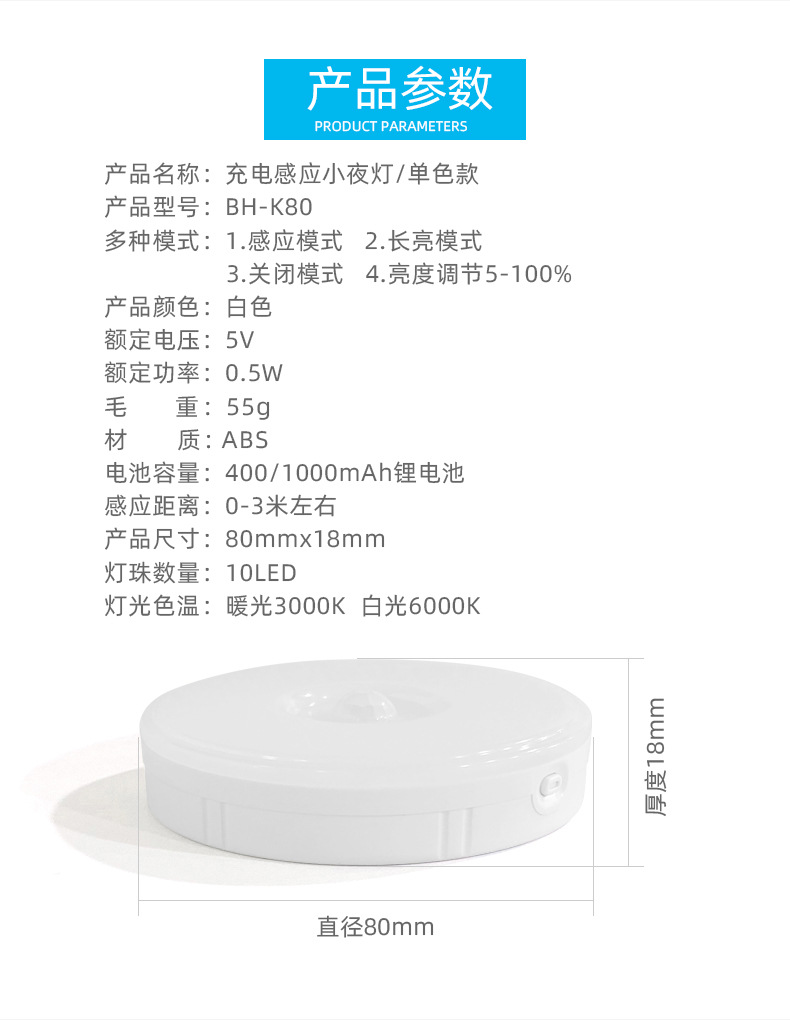 • [단일 색온도] 백색광 6500K 키 스위치/무단계 디밍