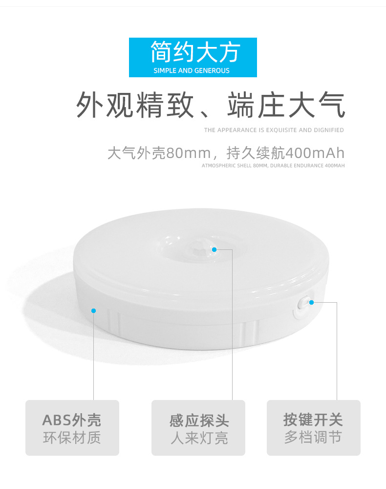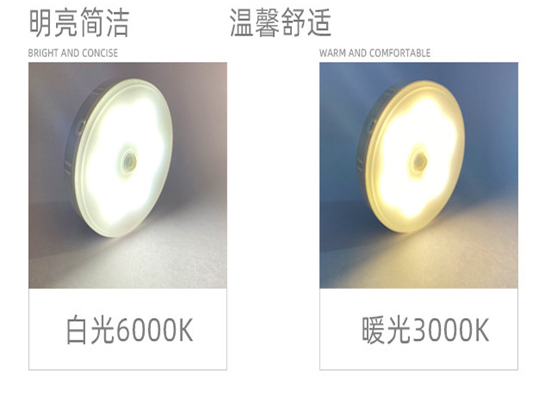 침실 머리맡에 있는 사람들을 위한 LED 인체 유도 야간 조명 충전식, 밝기 조절이 가능한 2색 옷장 캐비닛 조명 침대 옆