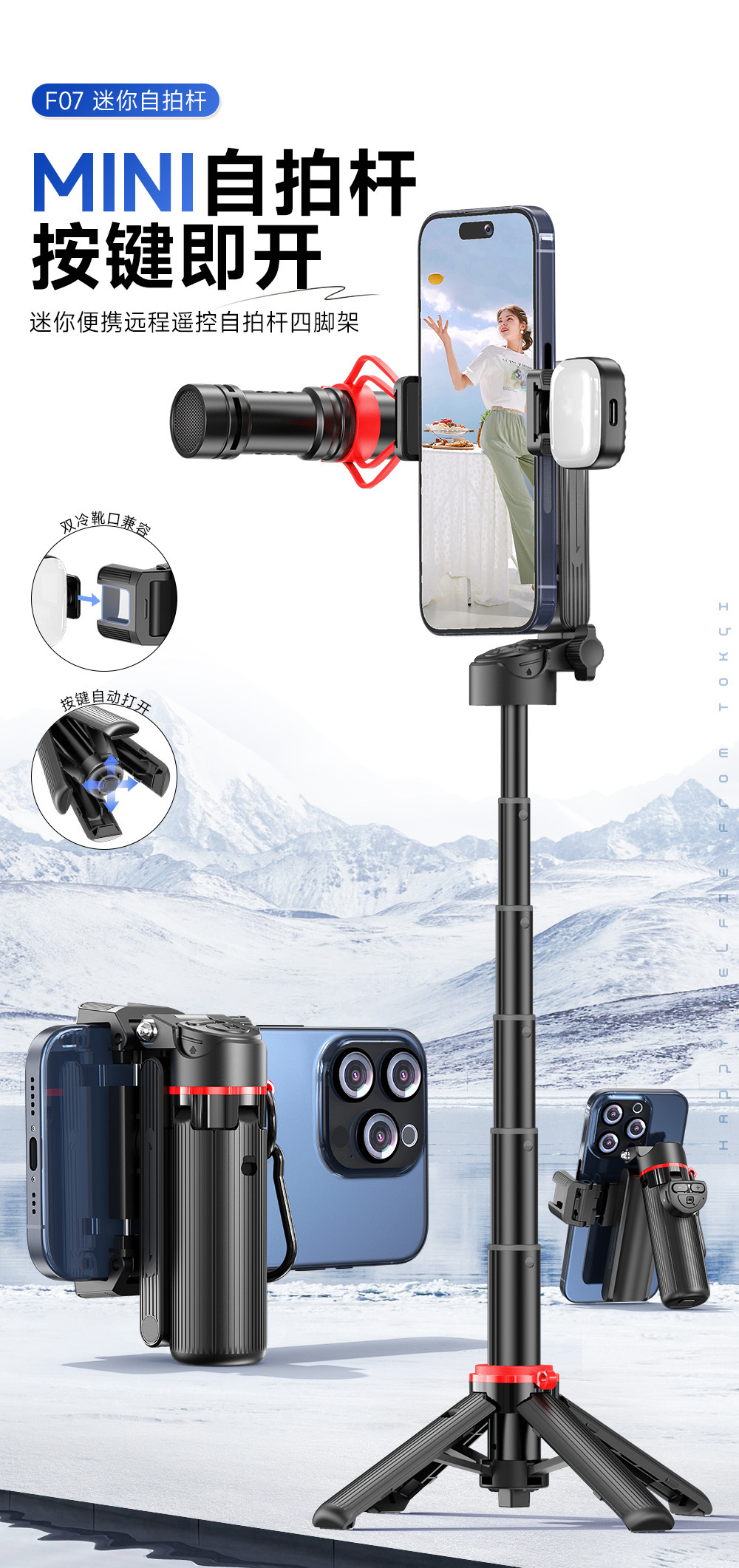 제조업체 도매 F07 Q21S Q20 셀카봉 휴대폰 블루투스 카메라 미니 다기능 라이브 방송 여행용 촬영 스탠드