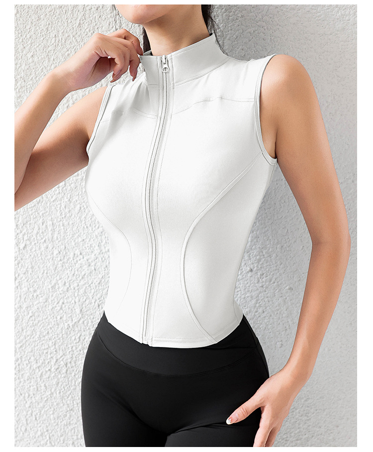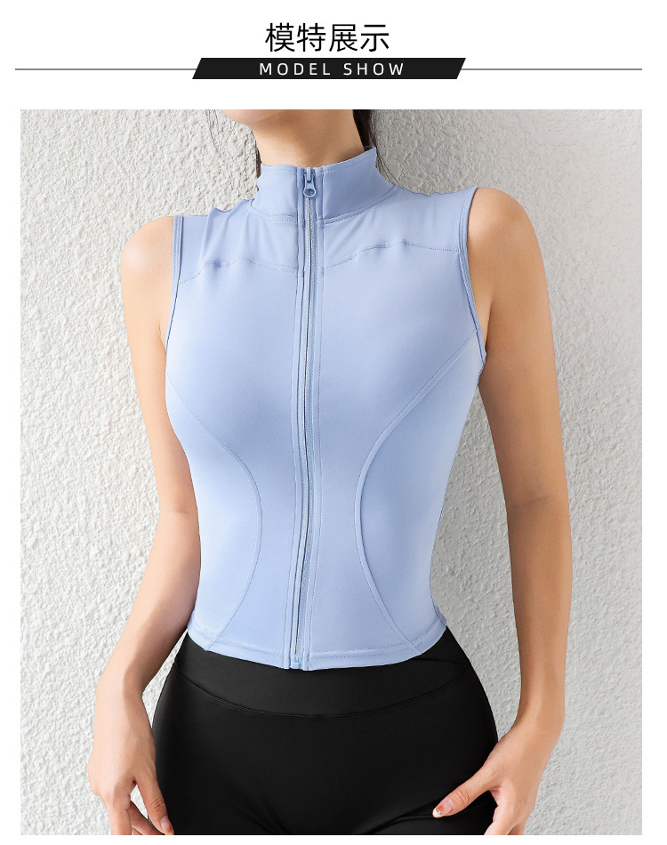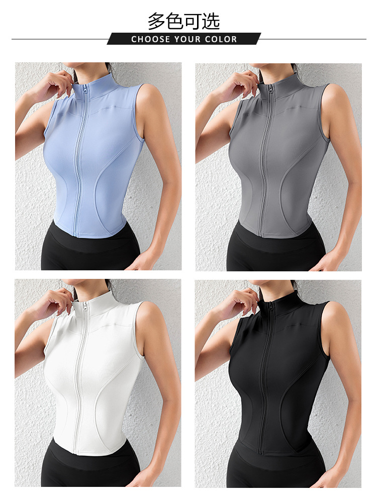 여자 조끼 여름 외부 착용 캐주얼 칼라 지퍼 스포츠 조끼 달리기 피트니스 요가 옷 테니스 옷스토어 가기
