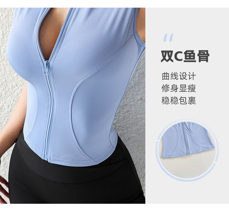여자 조끼 여름 외부 착용 캐주얼 칼라 지퍼 스포츠 조끼 달리기 피트니스 요가 옷 테니스 옷