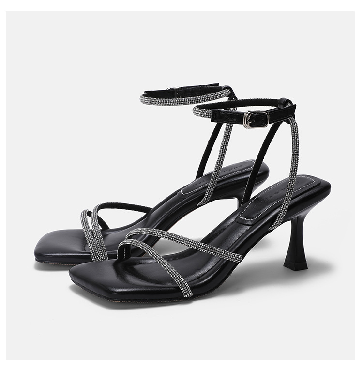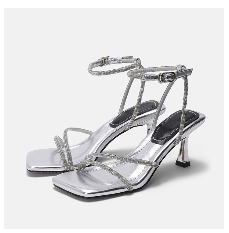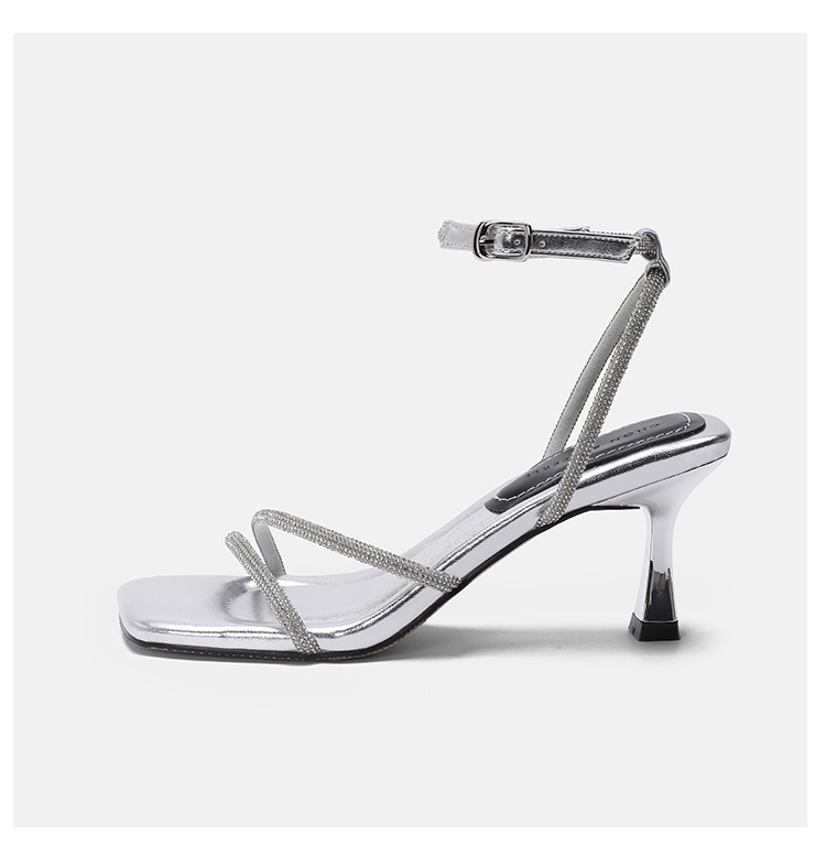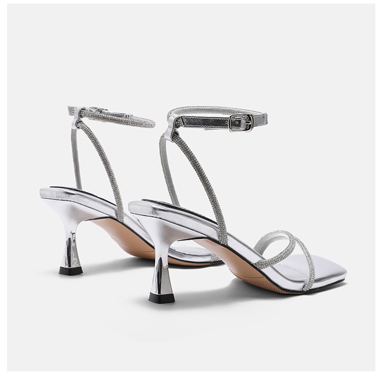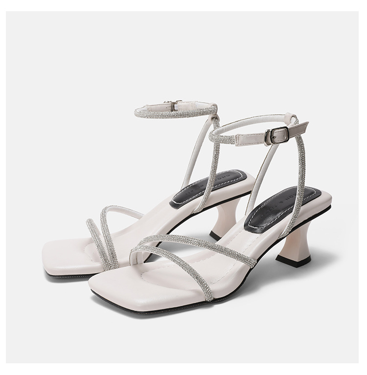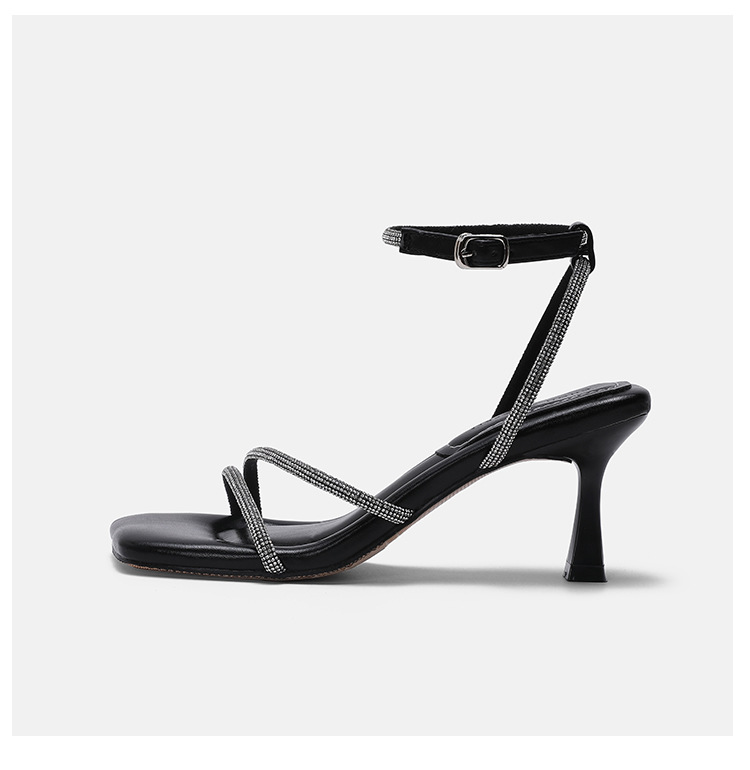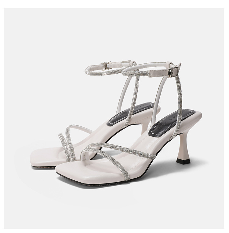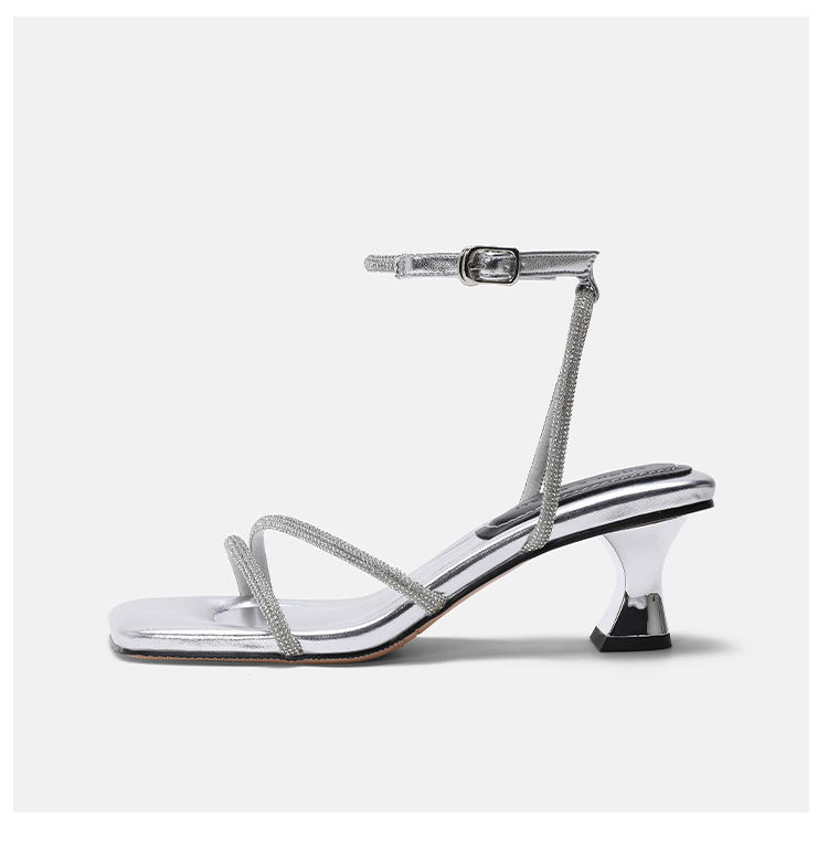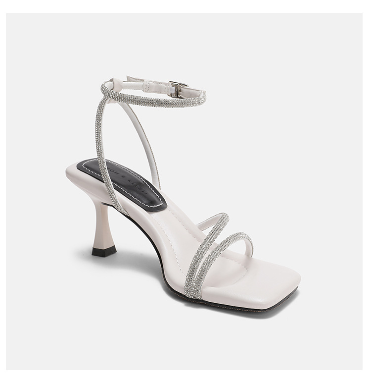 여성용 워터다이아몬드 스트랩 하이힐 샌들 2026년 신상 스퀘어토 오픈토 프렌치 스타일 슬림힐 하이힐스토어 가기