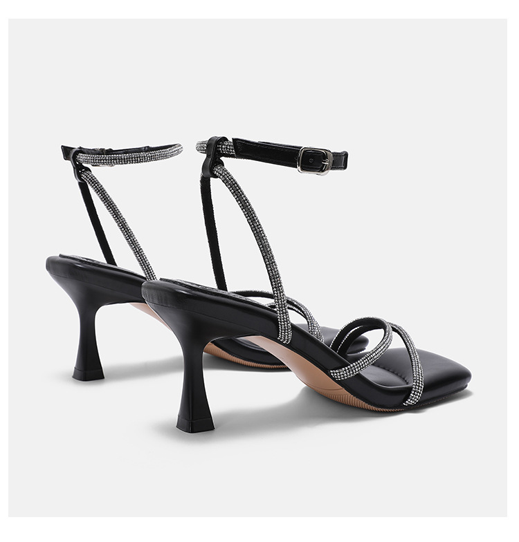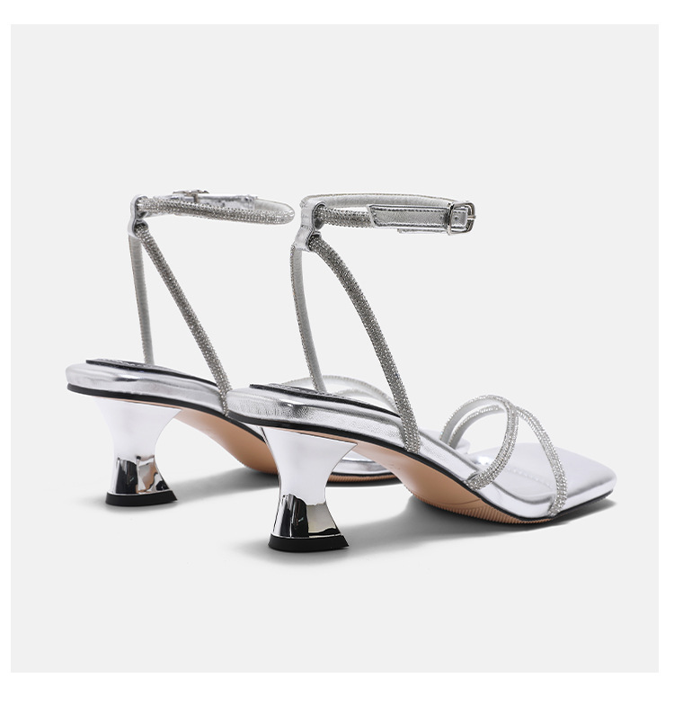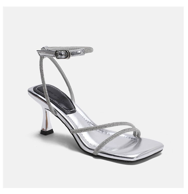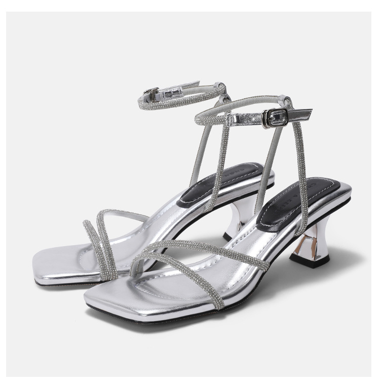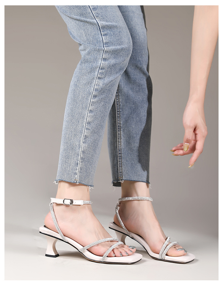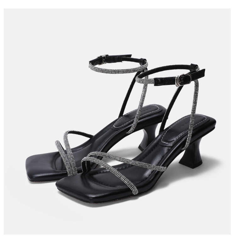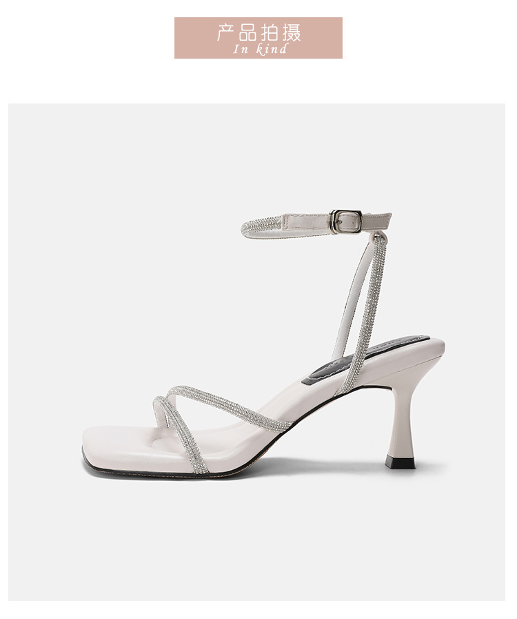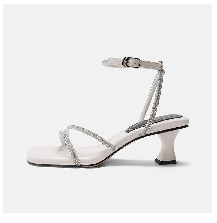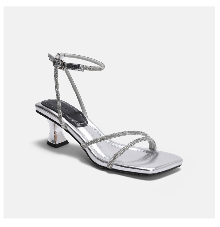 여성용 워터다이아몬드 스트랩 하이힐 샌들 2026년 신상 스퀘어토 오픈토 프렌치 스타일 슬림힐 하이힐스토어 가기