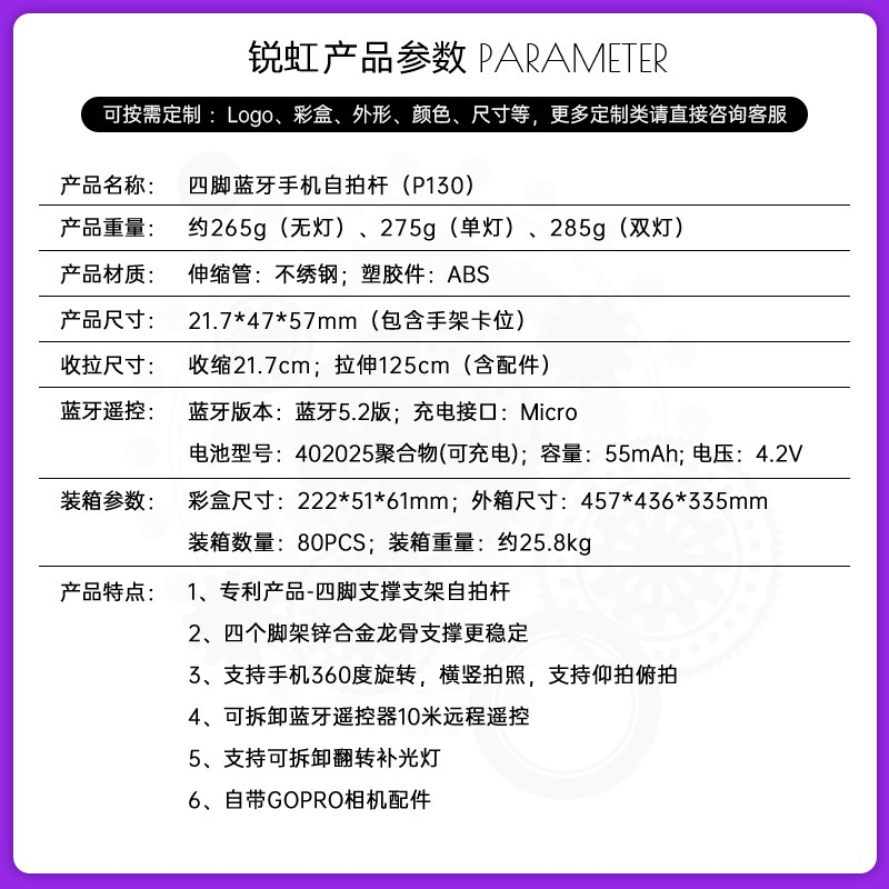 • P135 단일 작은 사각형 조명 흰색 [1.35m 알루미늄 합금 + 충전 블루투스 리모컨 + 1 작은 사각형 조명]