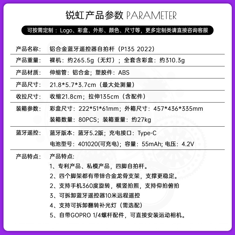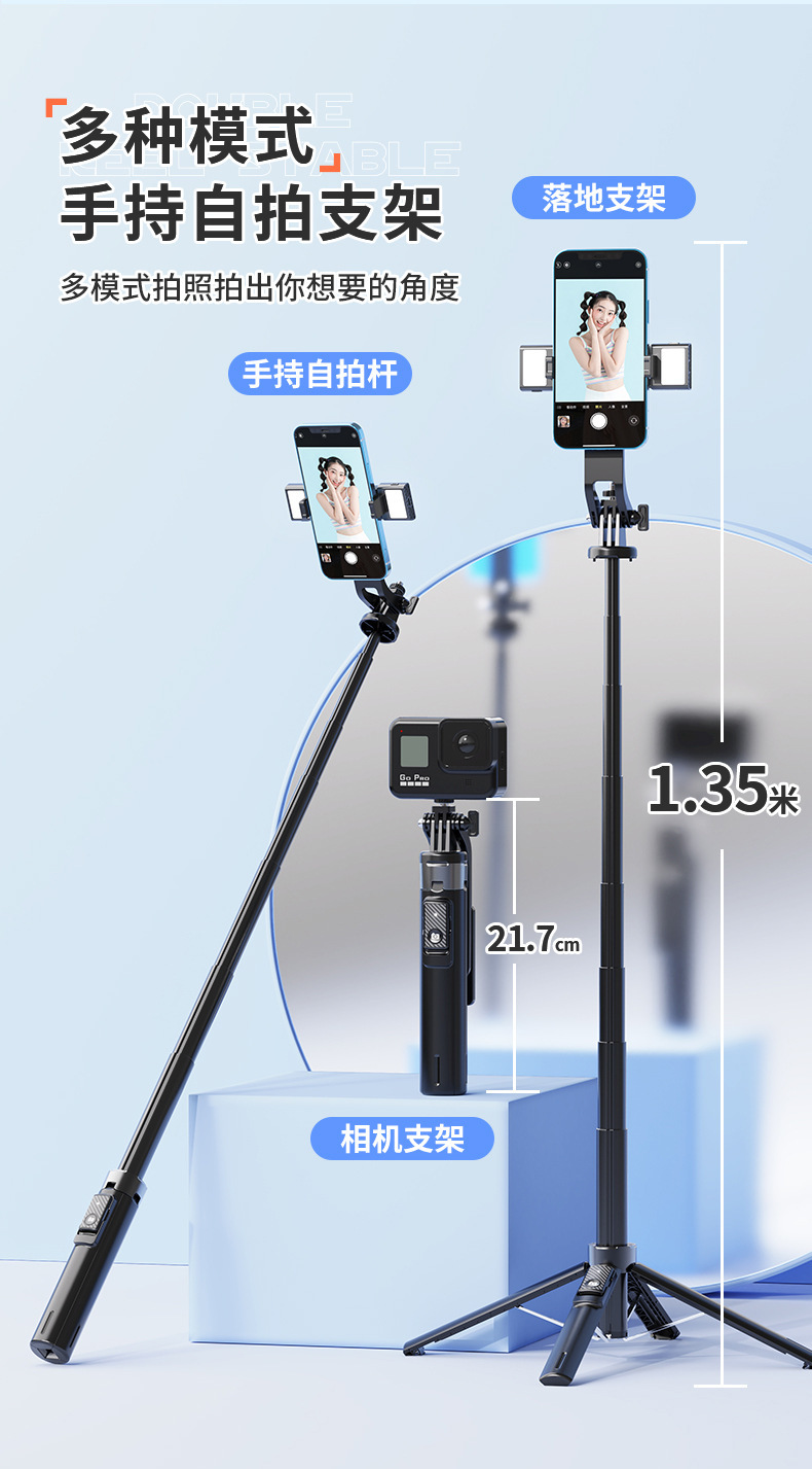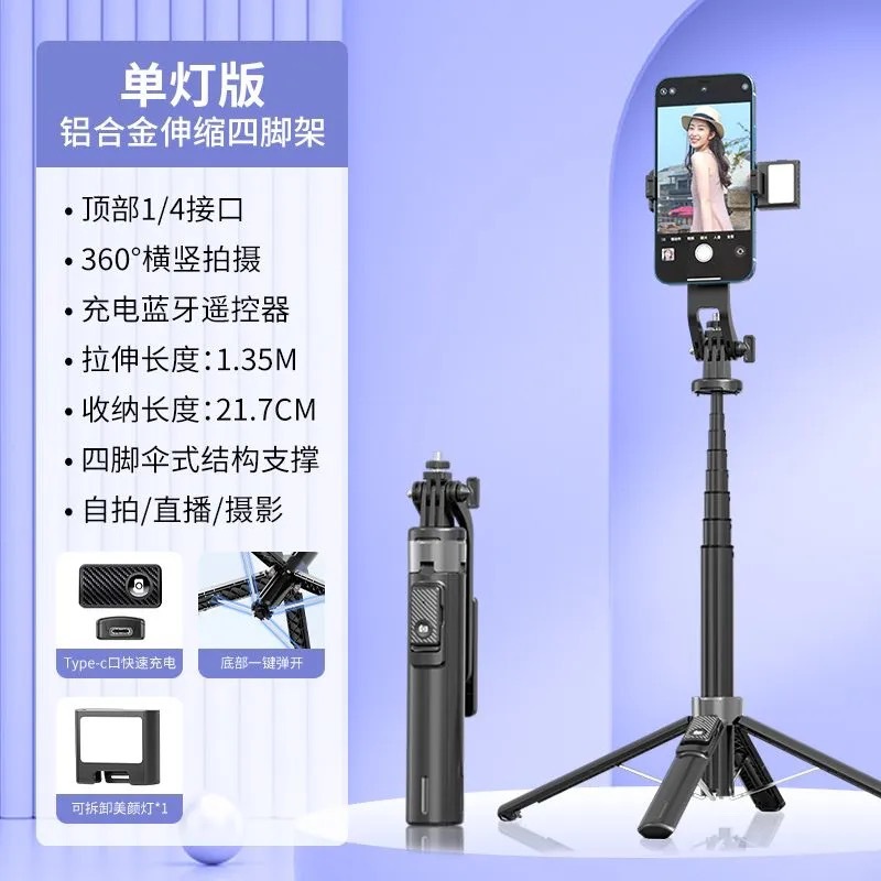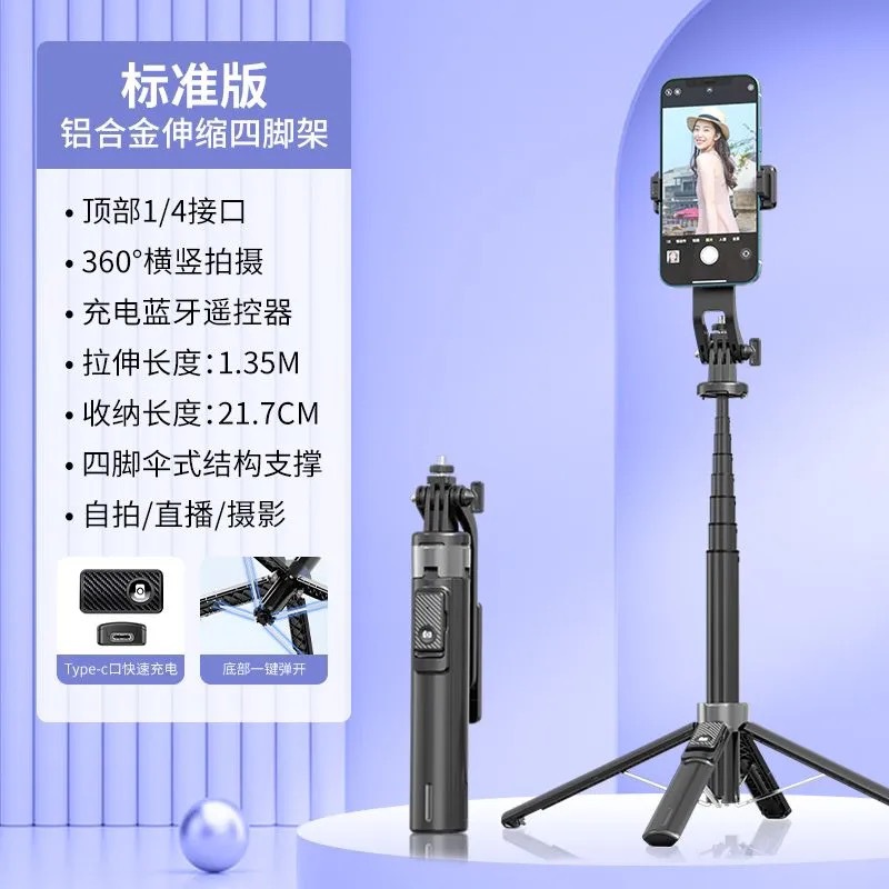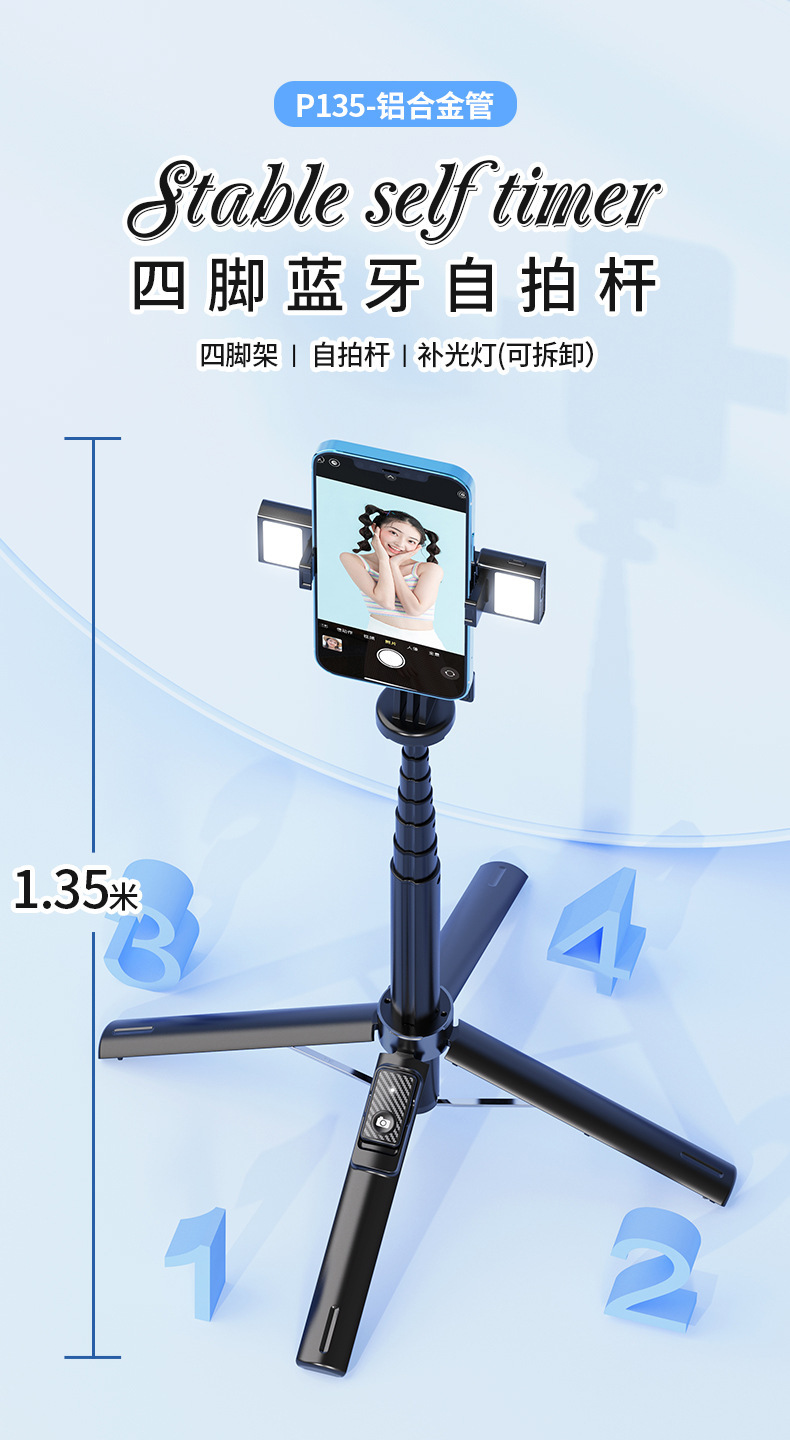 P135 알루미늄 합금 범용 휴대 전화 셀카 스틱 사진 및 비디오 촬영 유물 바닥 라이브 방송 브래킷 여행 휴대용스토어 가기