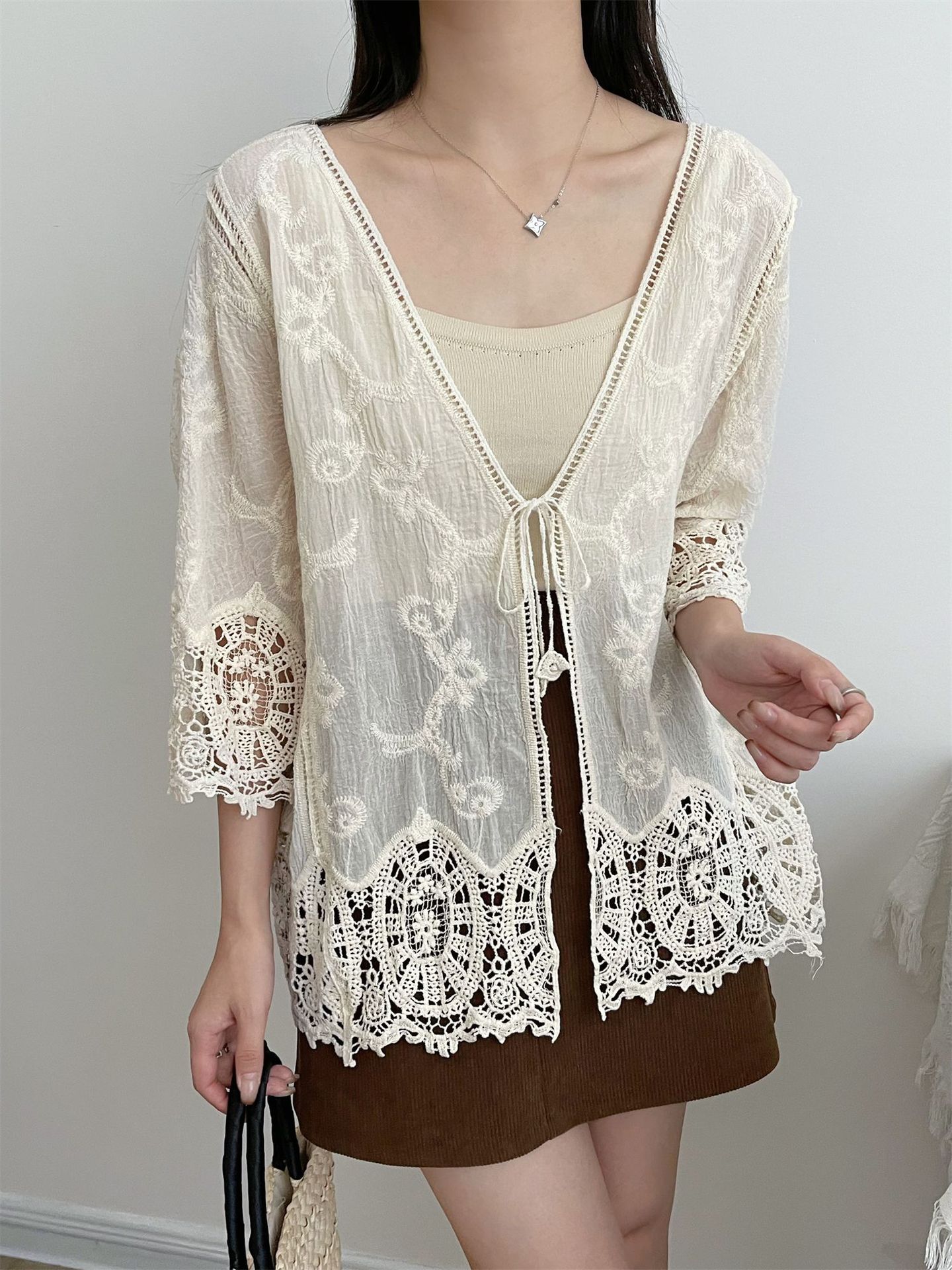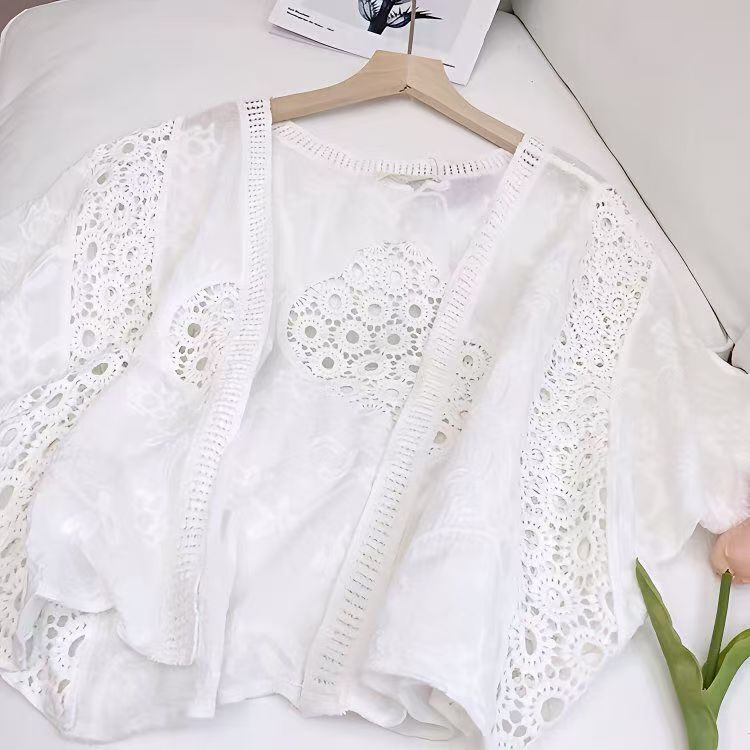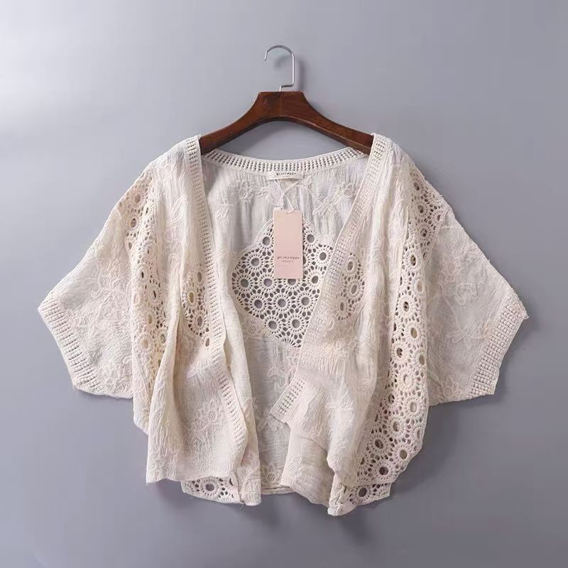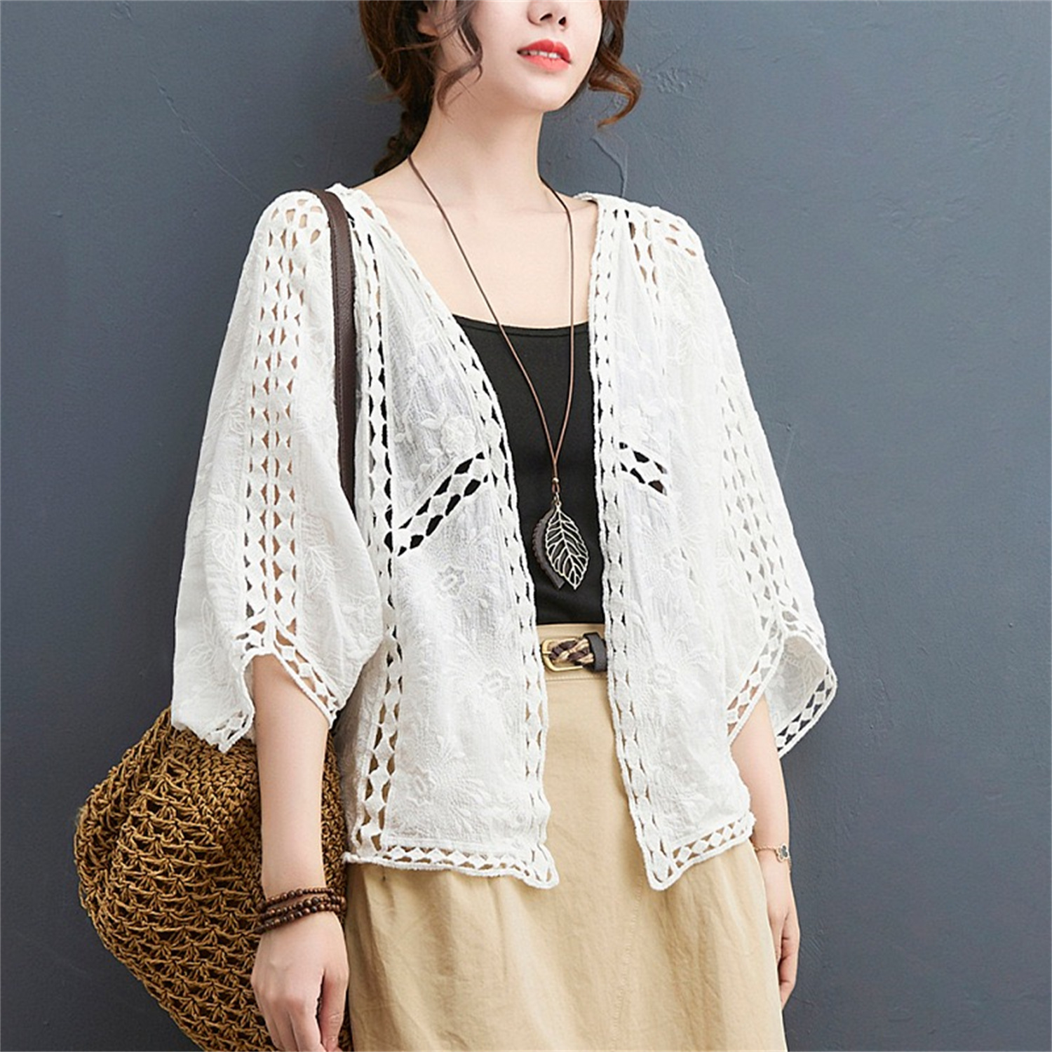 짧은 옷 탑 외부 태양 보호 코트 착용 여성 의류 외부 카디건 자수 중공 보헤미안 민족 스타일 와이드스토어 가기