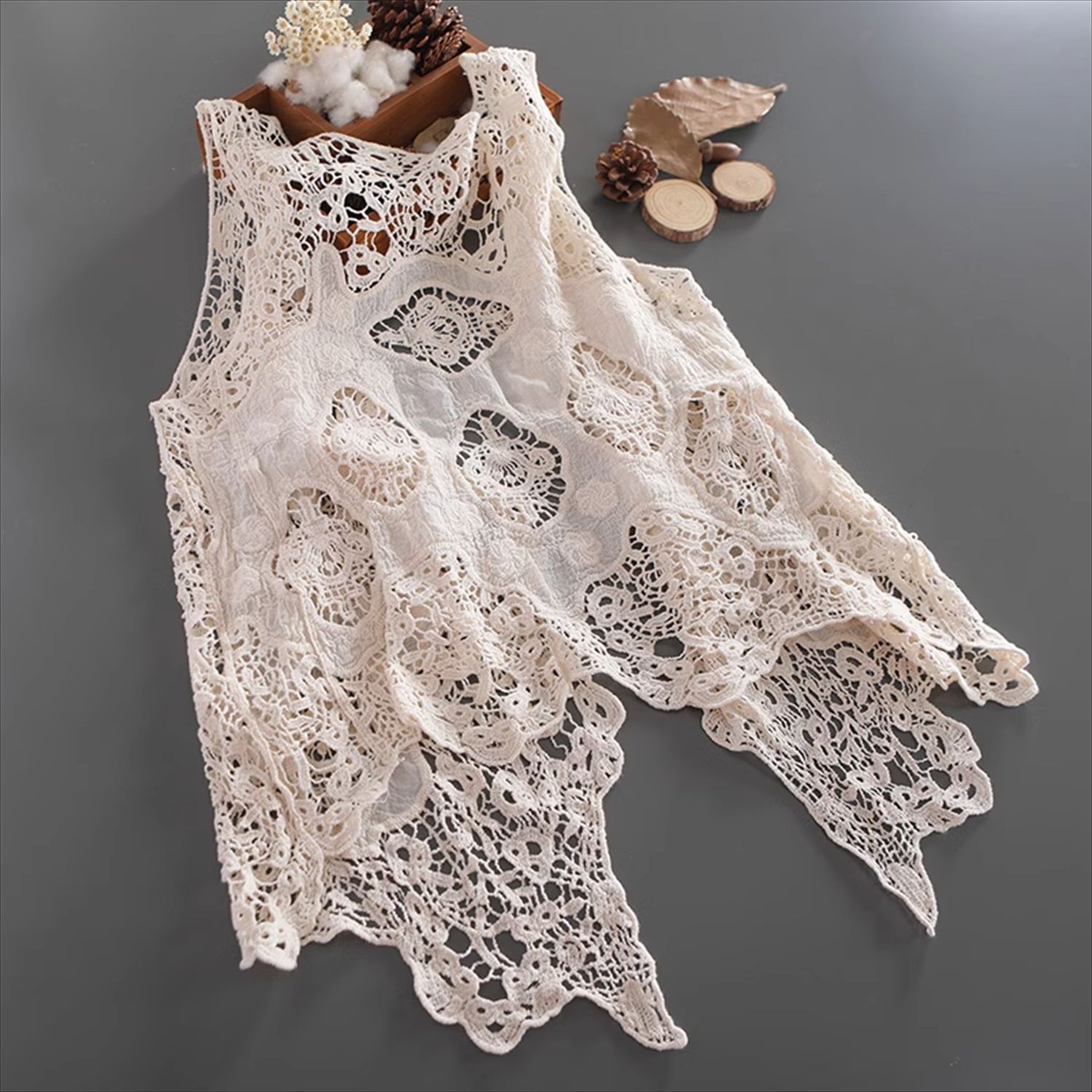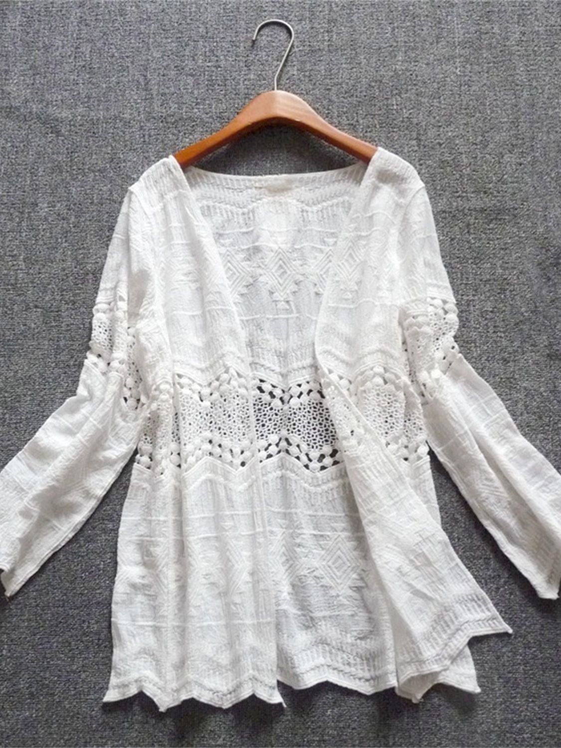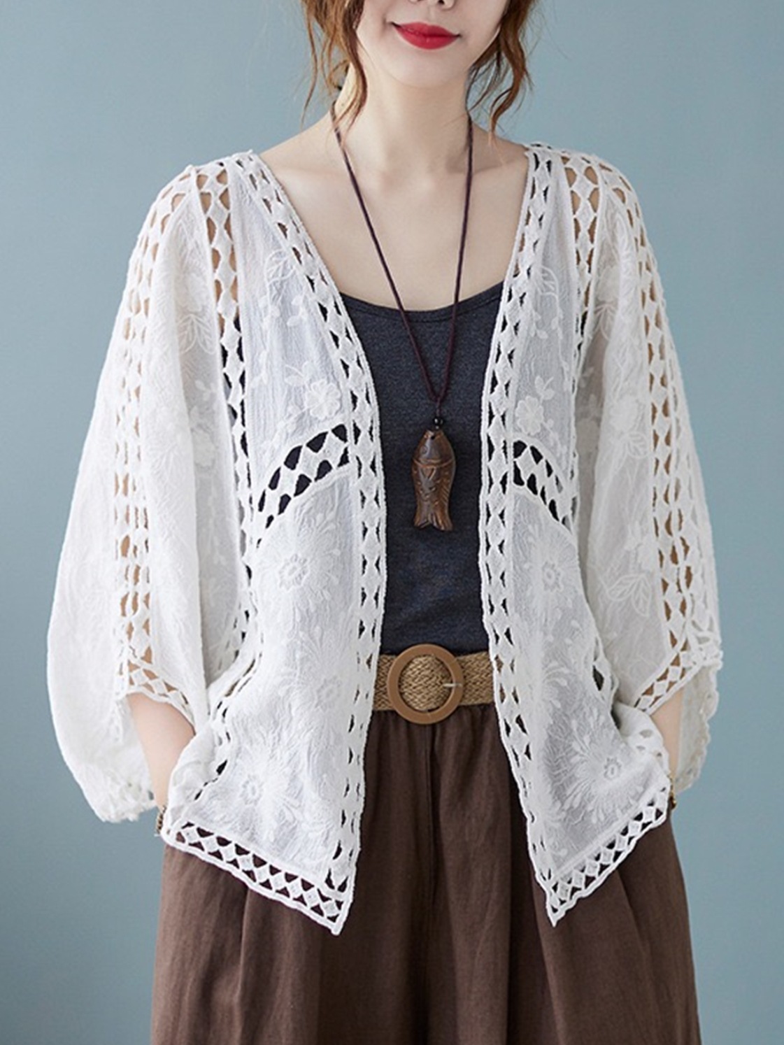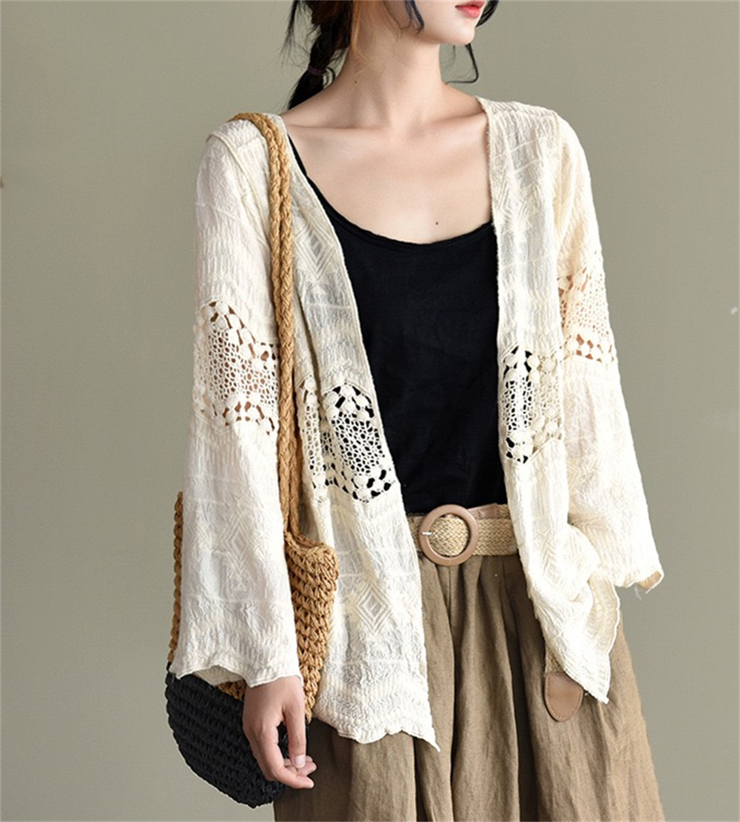 짧은 옷 탑 외부 태양 보호 코트 착용 여성 의류 외부 카디건 자수 중공 보헤미안 민족 스타일 와이드