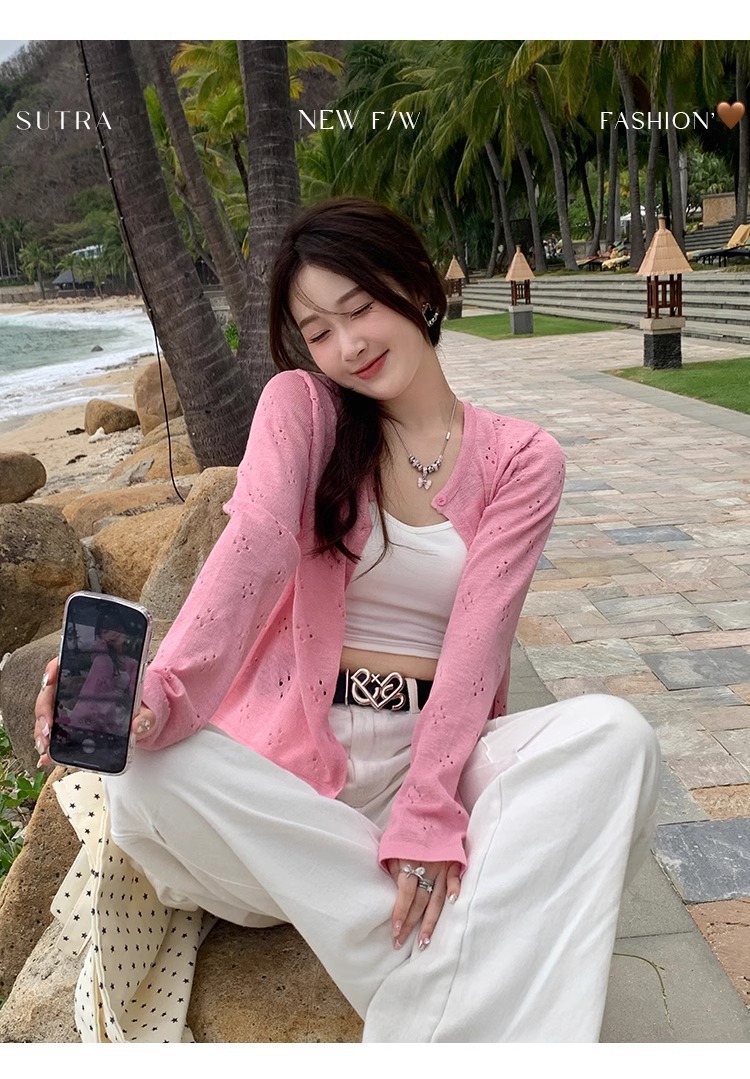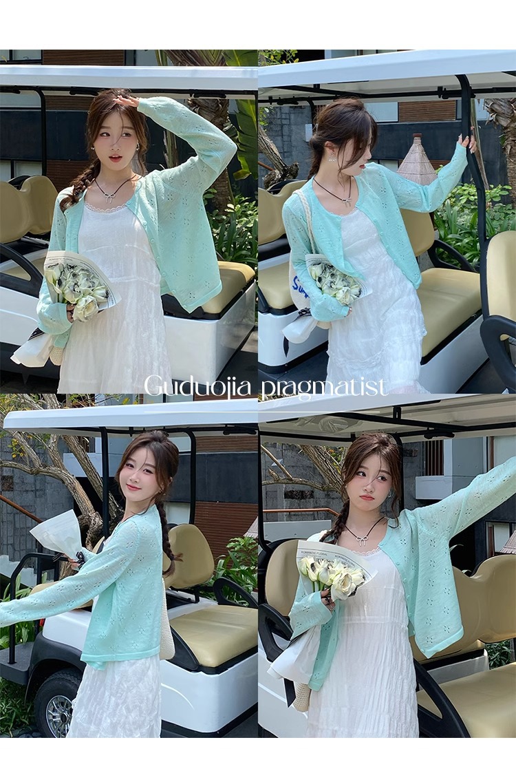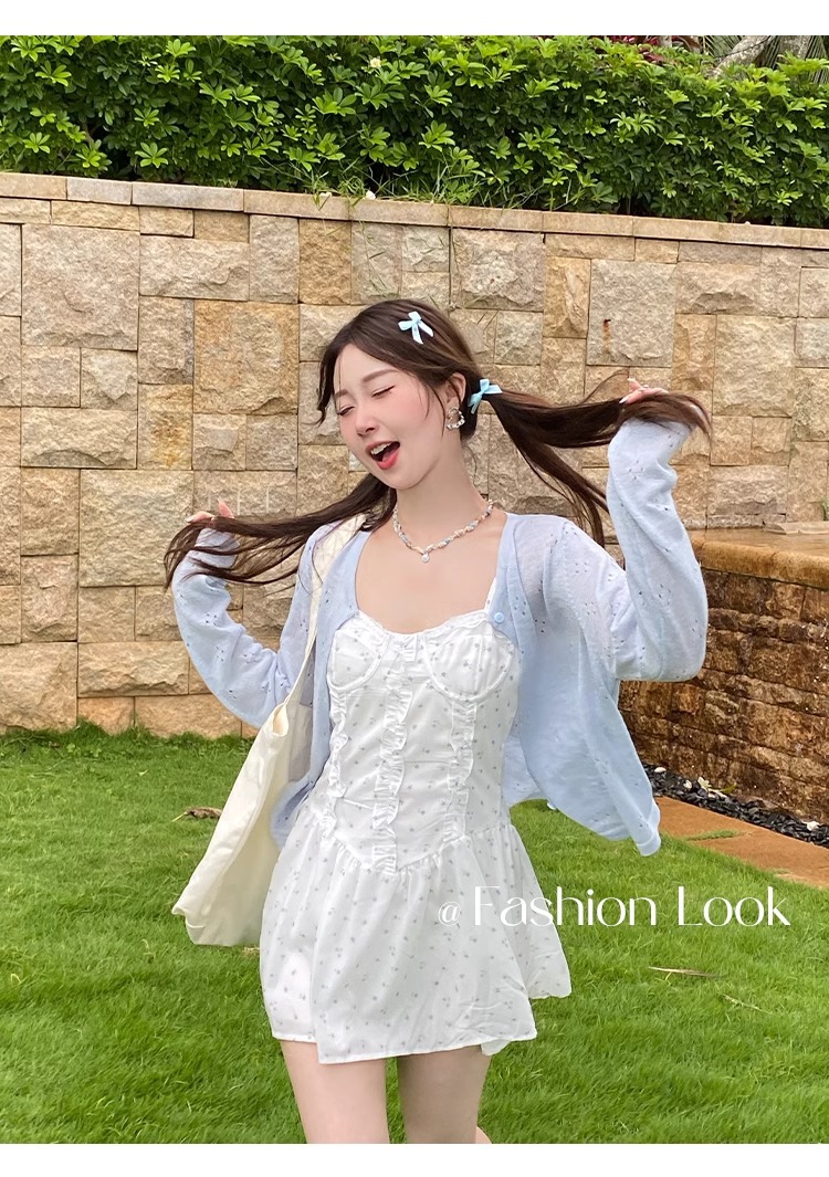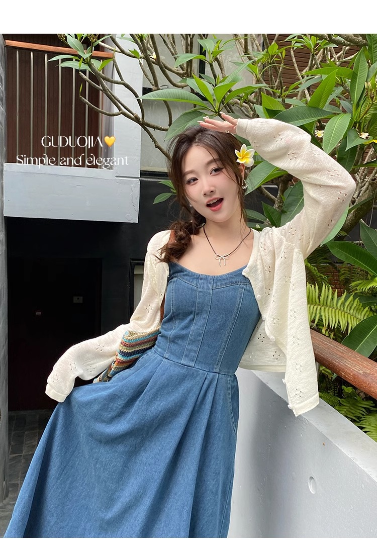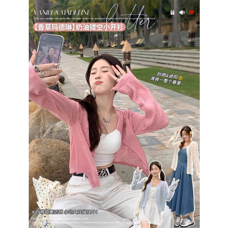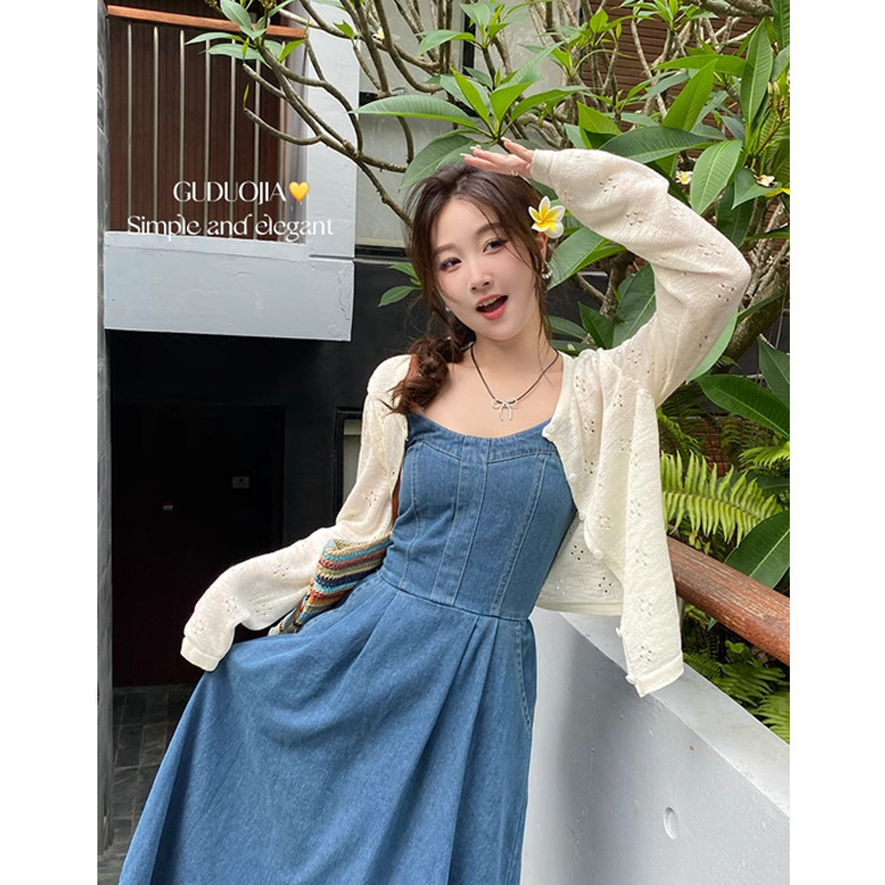 Zhen Dai Ni 니트 카디건 재킷 여성 2025 새로운 한국 스타일 봄 탑 화이트 중공 서스펜더 스커트스토어 가기