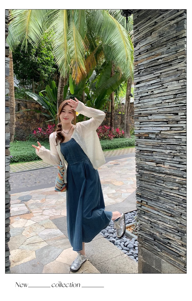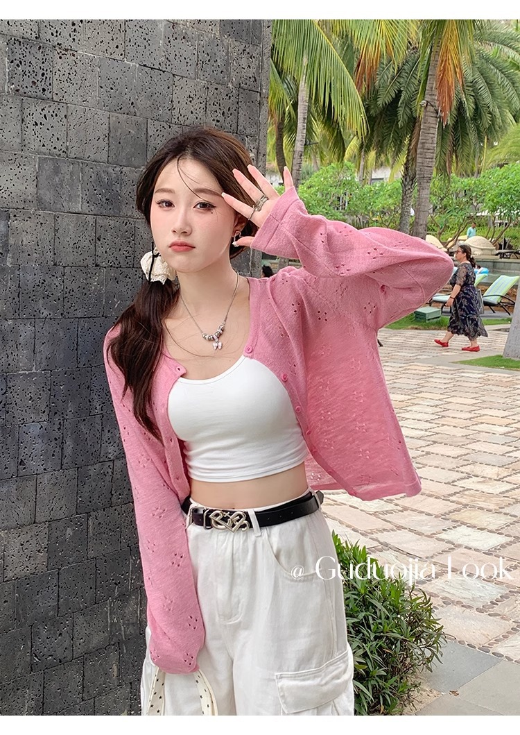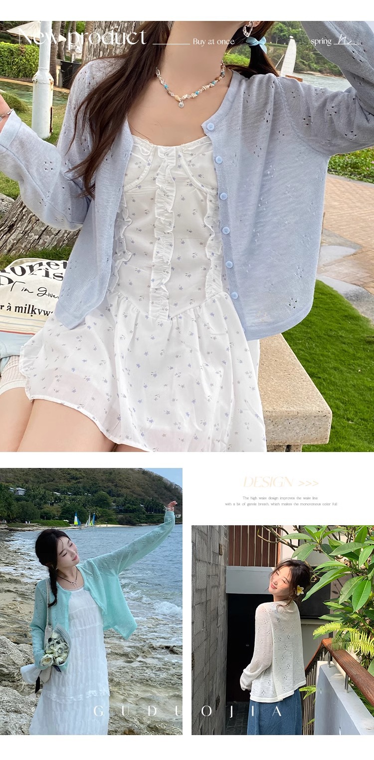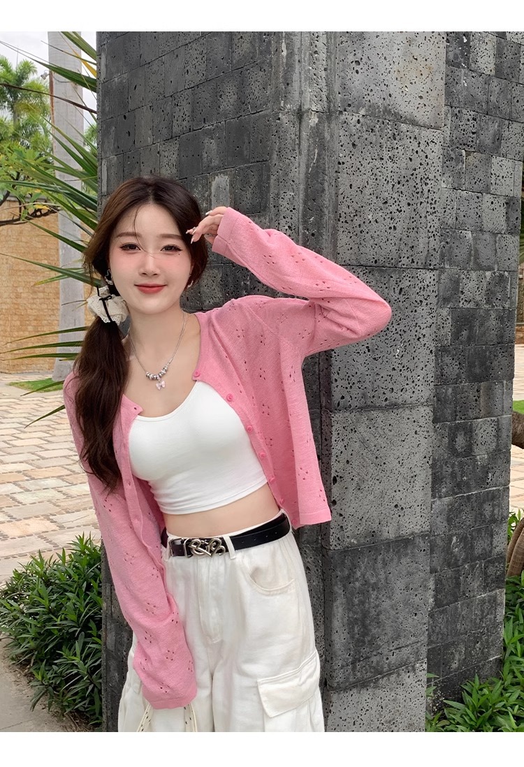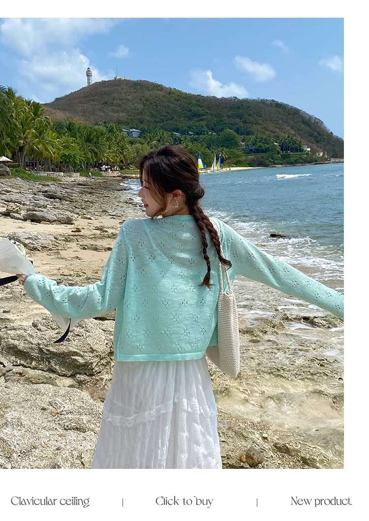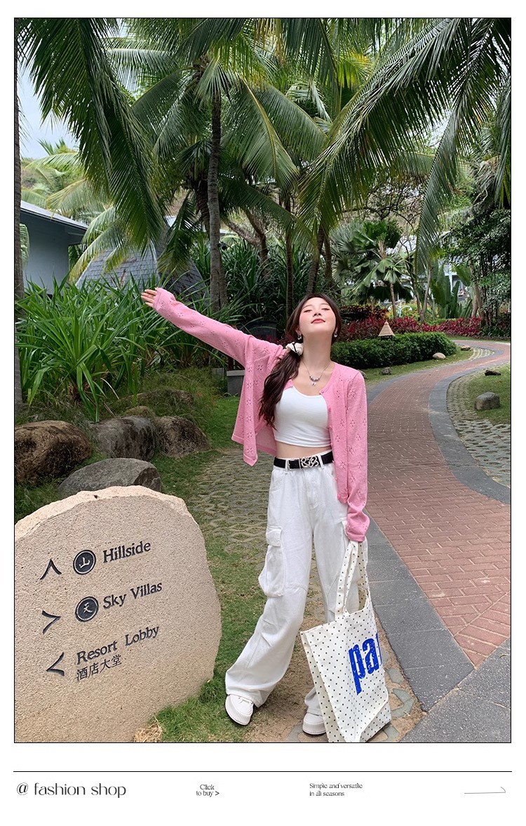 Zhen Dai Ni 니트 카디건 재킷 여성 2025 새로운 한국 스타일 봄 탑 화이트 중공 서스펜더 스커트스토어 가기