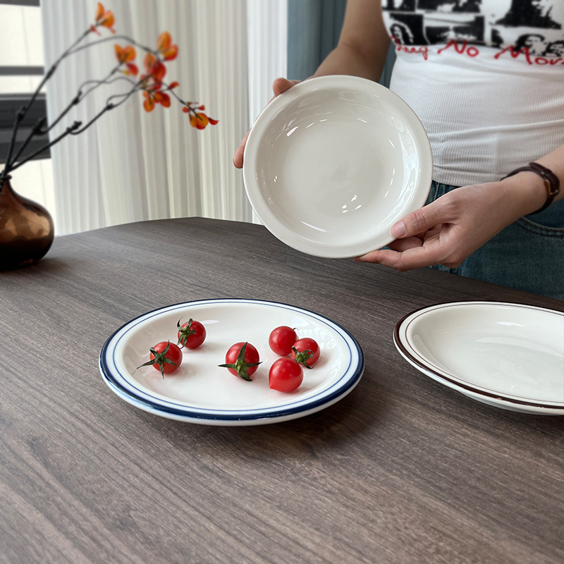 대외 무역 수출 복고풍 평판 세라믹 뼈 침 판 7 인치 반찬 케이크 애프터눈 티 플레이트 레스토랑 플레이트