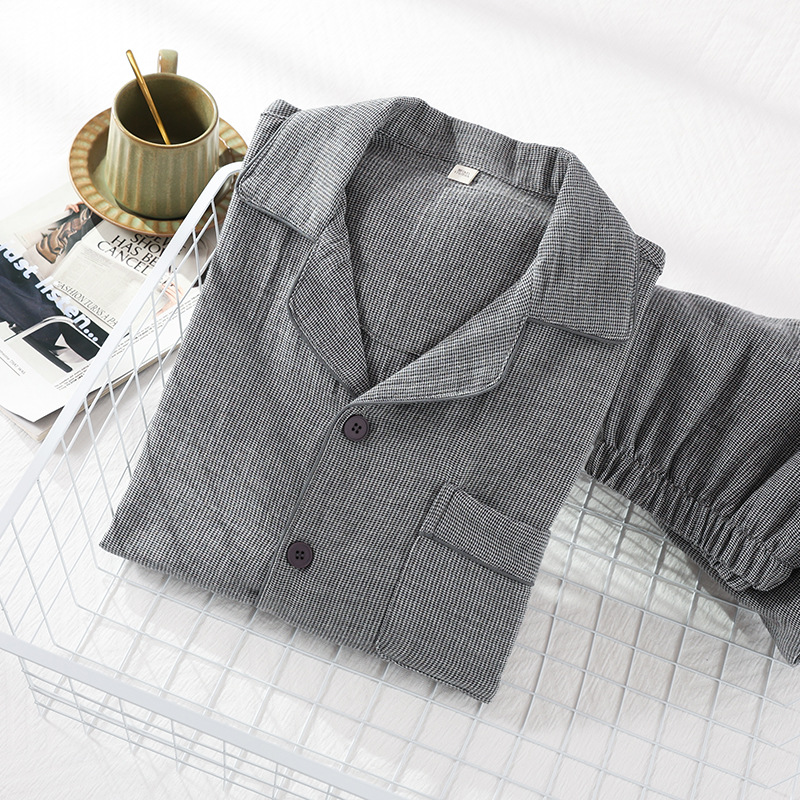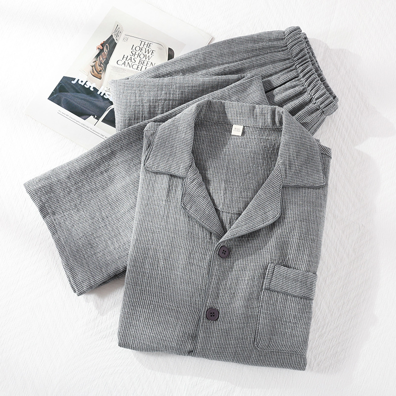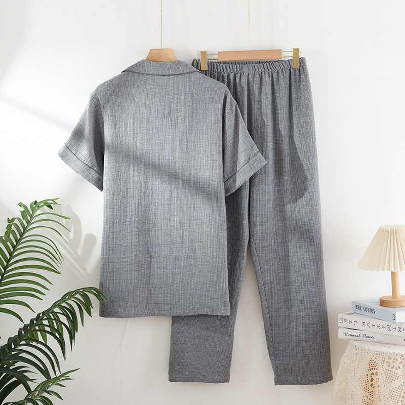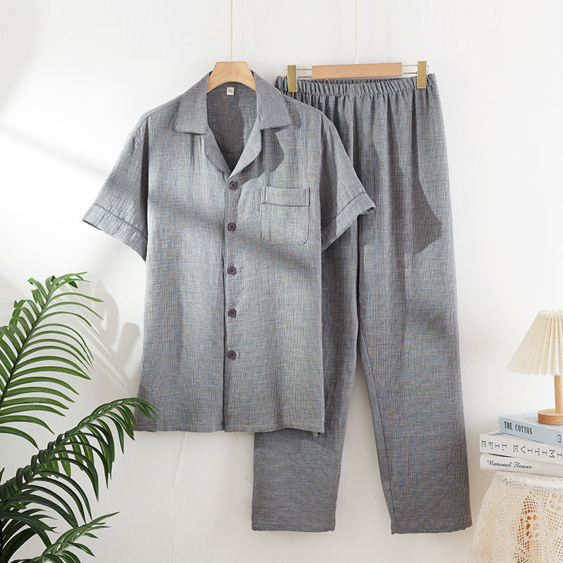 잠옷 남성용 봄과 여름면 얇은 반팔 바지 플러스 사이즈 홈 의류 세트 코튼 거즈 남성용 반팔 바지스토어 가기