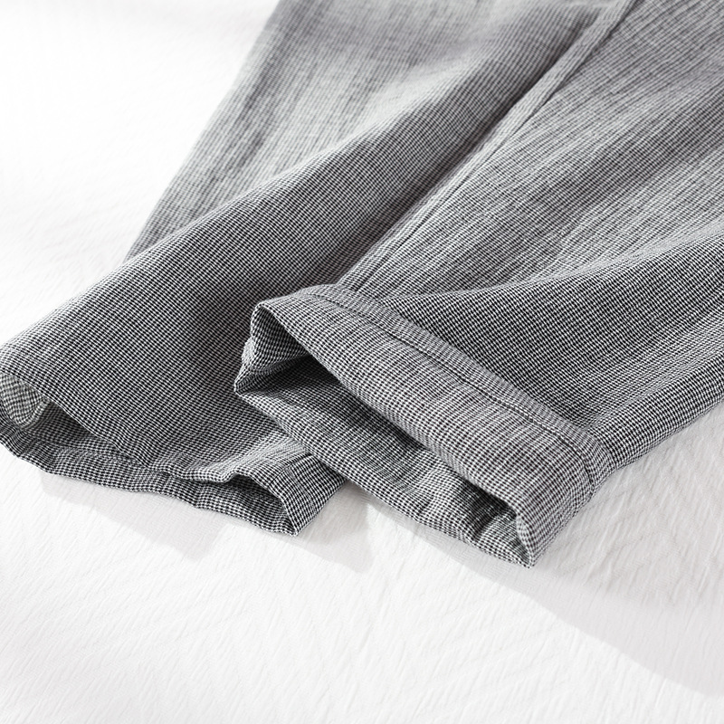 잠옷 남성용 봄과 여름면 얇은 반팔 바지 플러스 사이즈 홈 의류 세트 코튼 거즈 남성용 반팔 바지