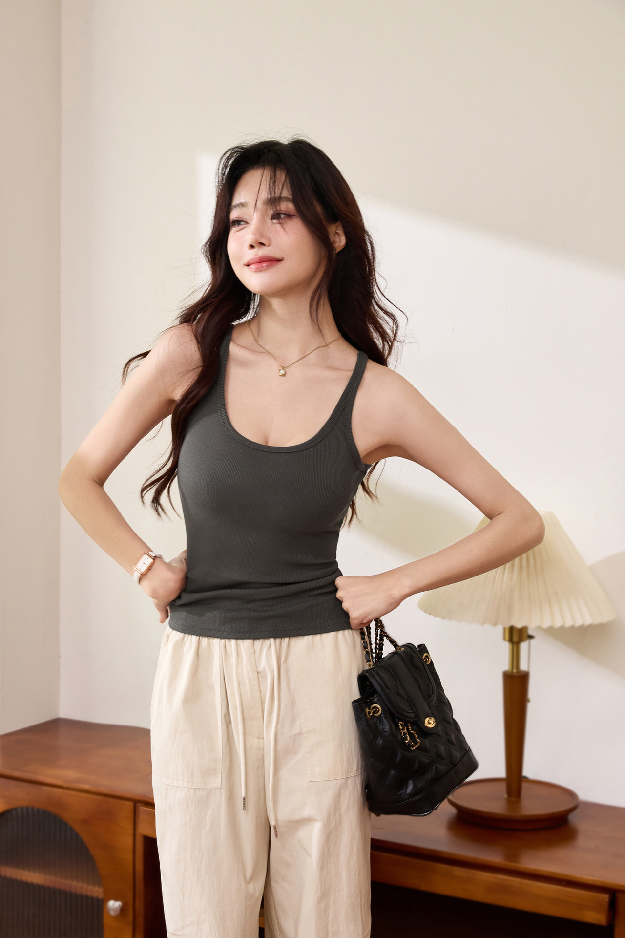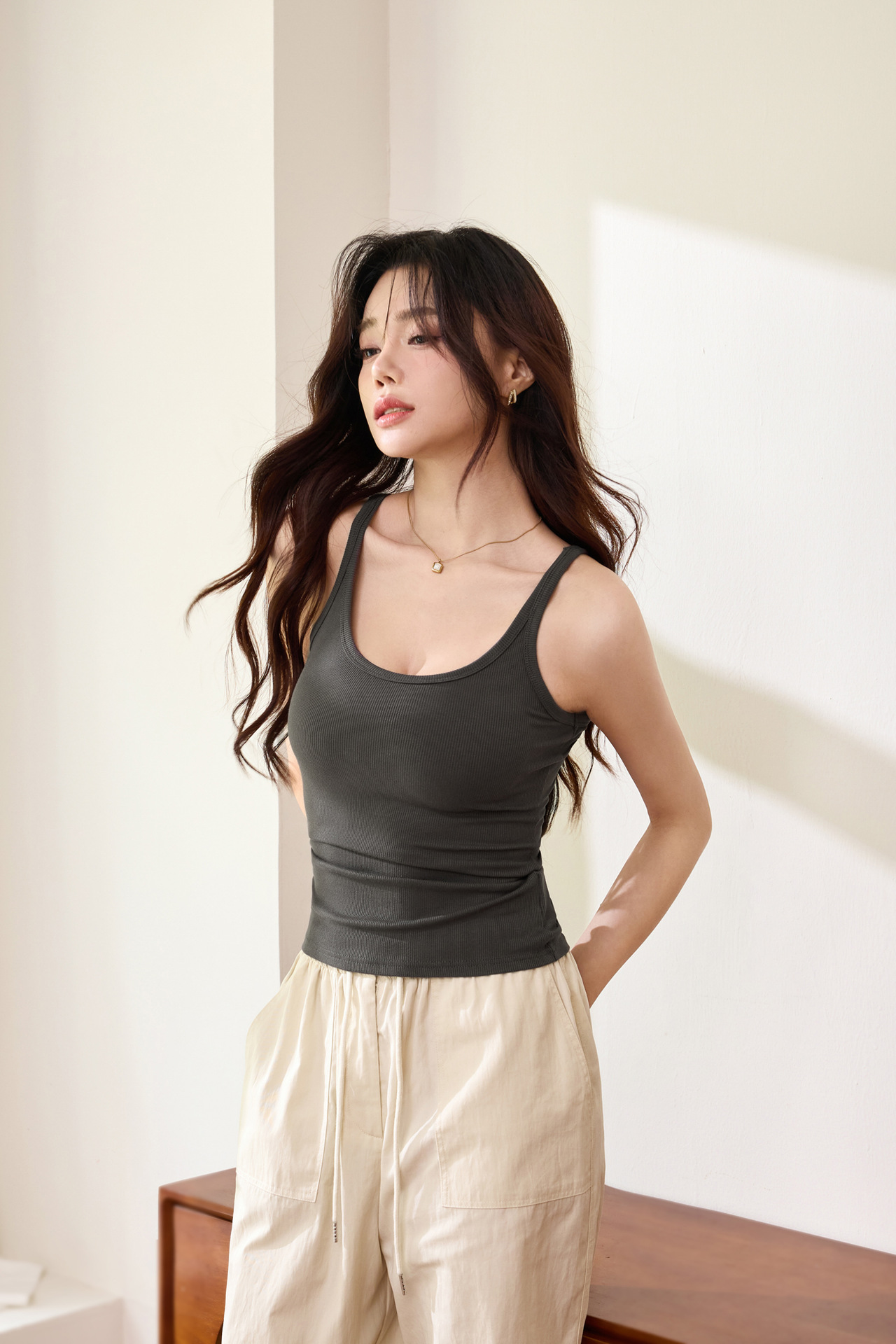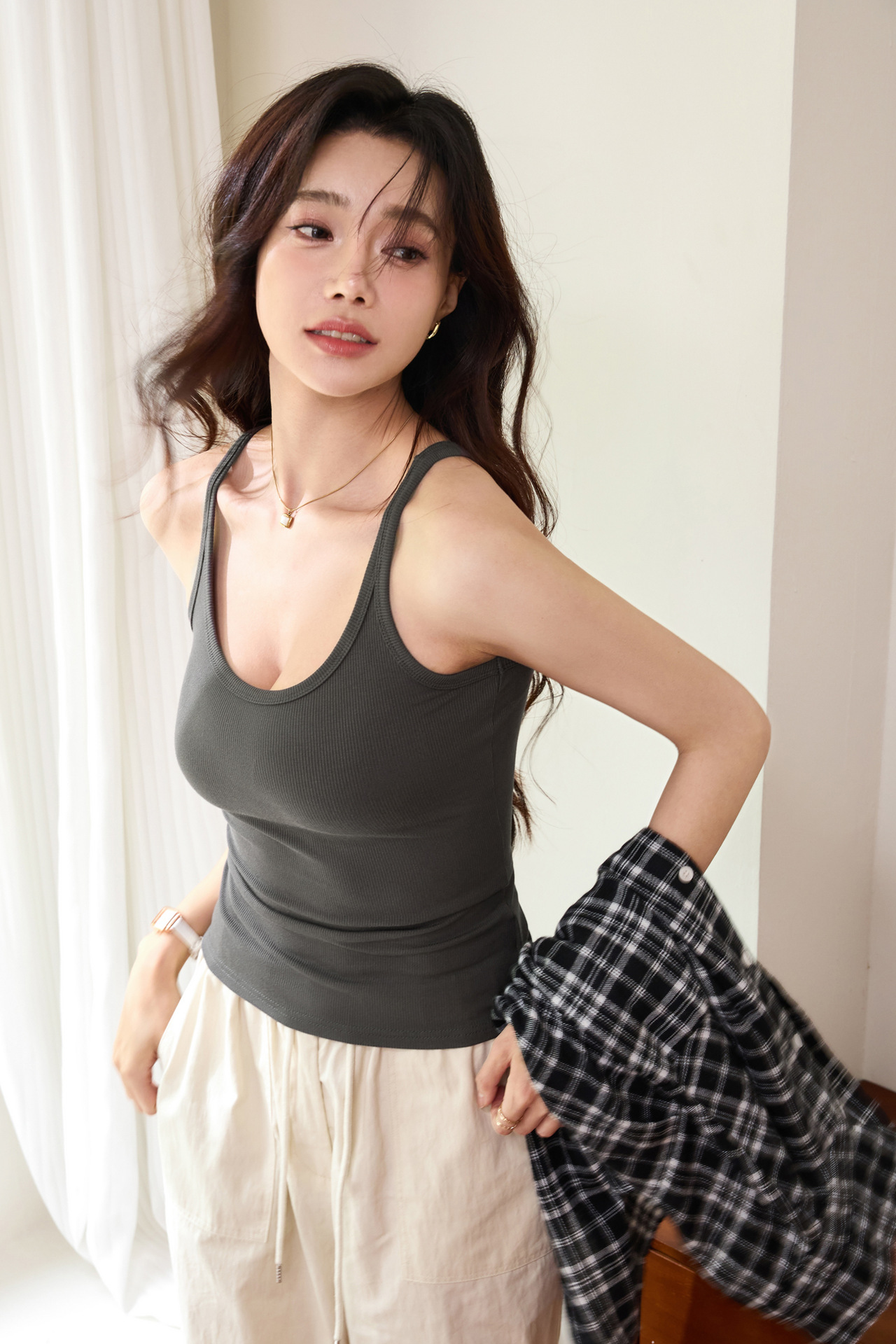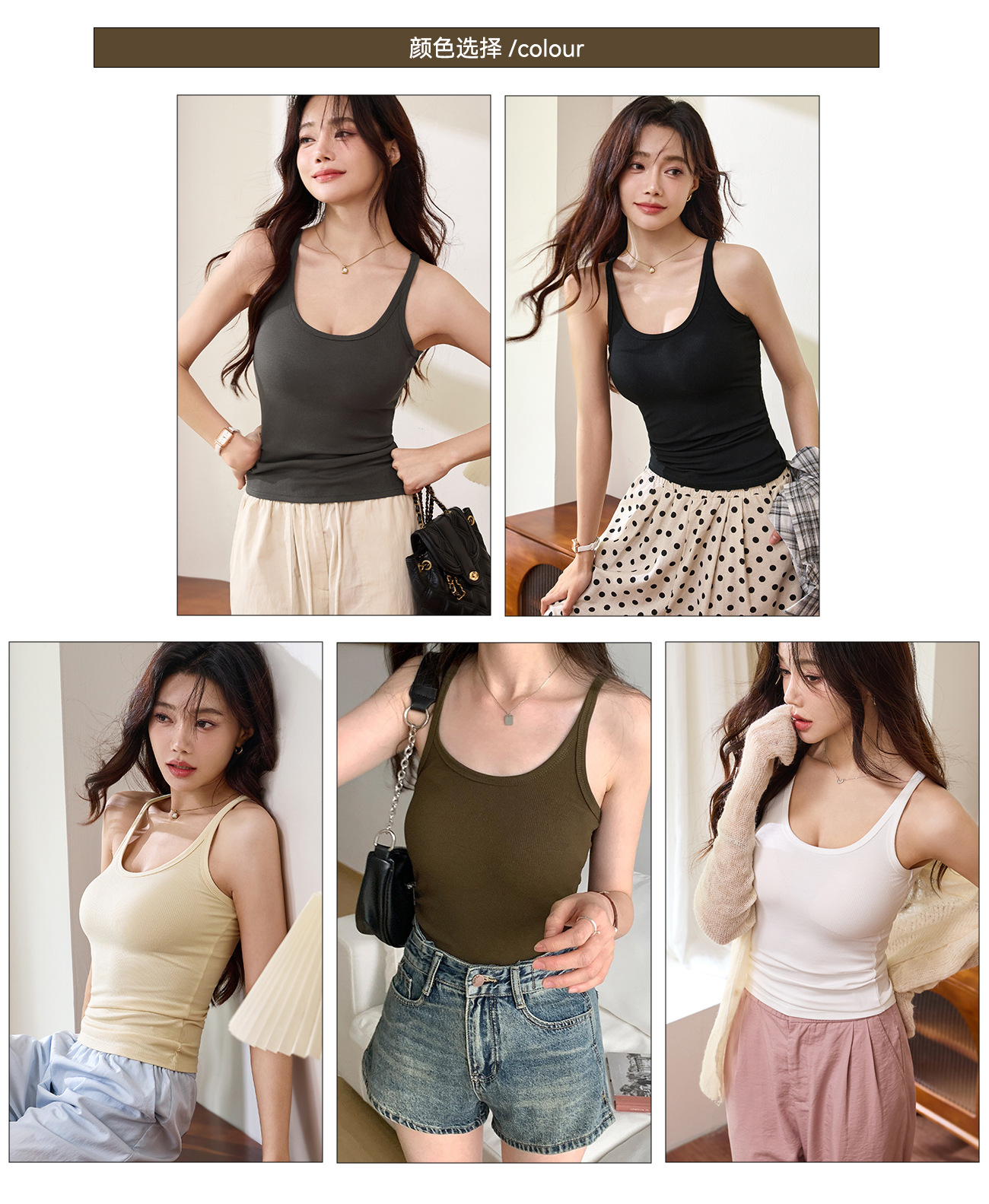 여성용 가슴 패드 슬링 2025년 여름 신상 섹시한 U넥 조끼, 슬림핏 아우터 튜브탑스토어 가기
