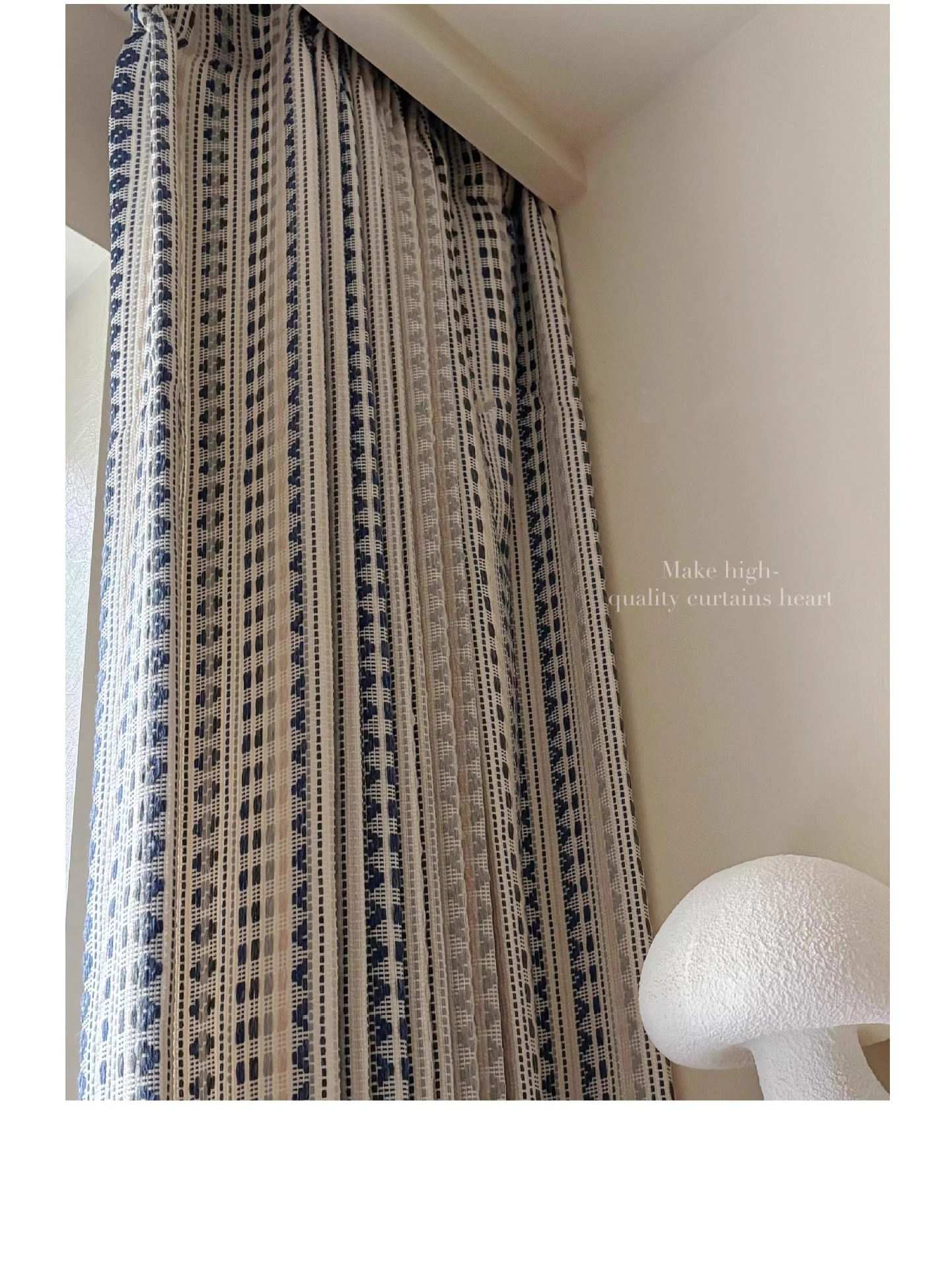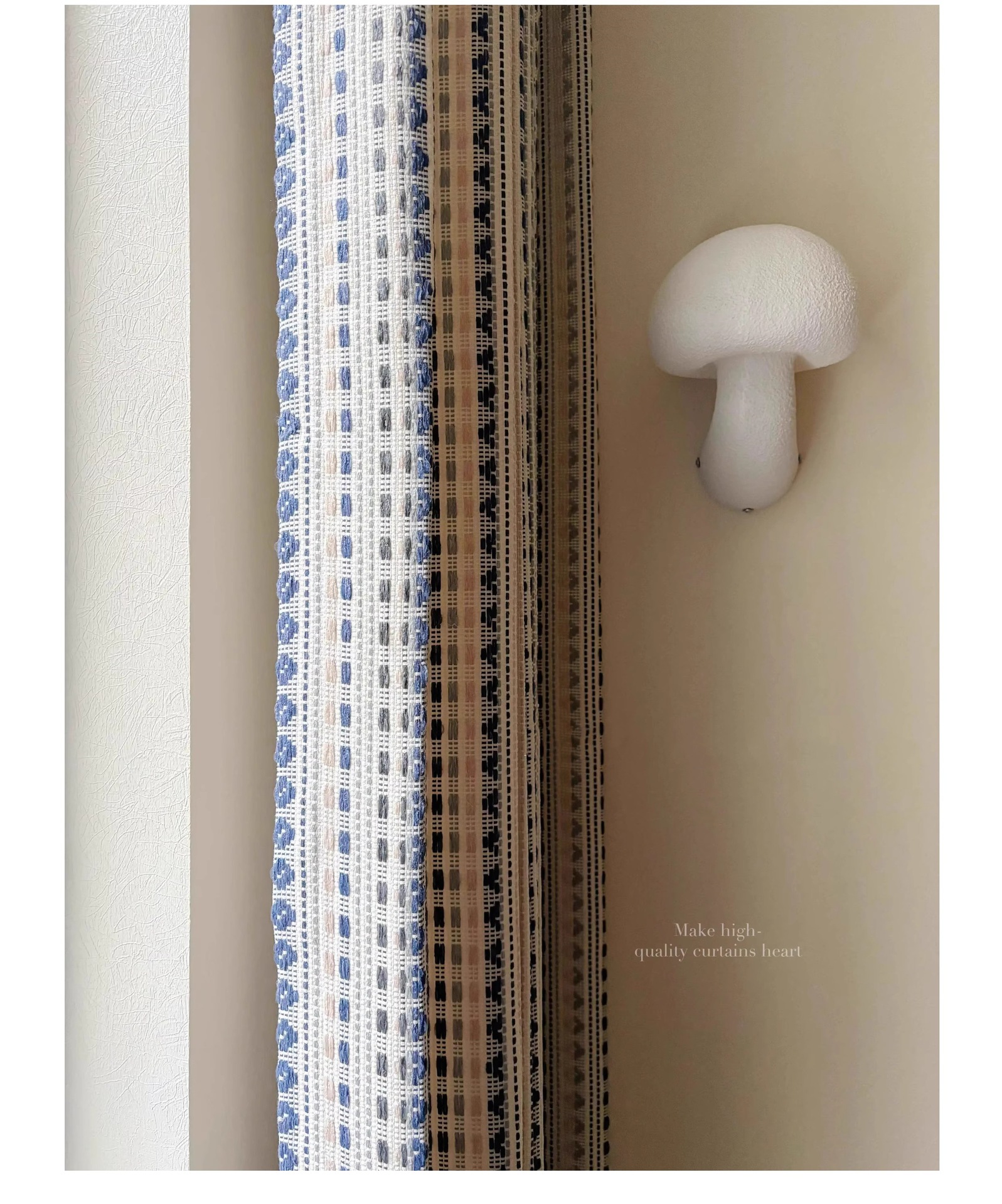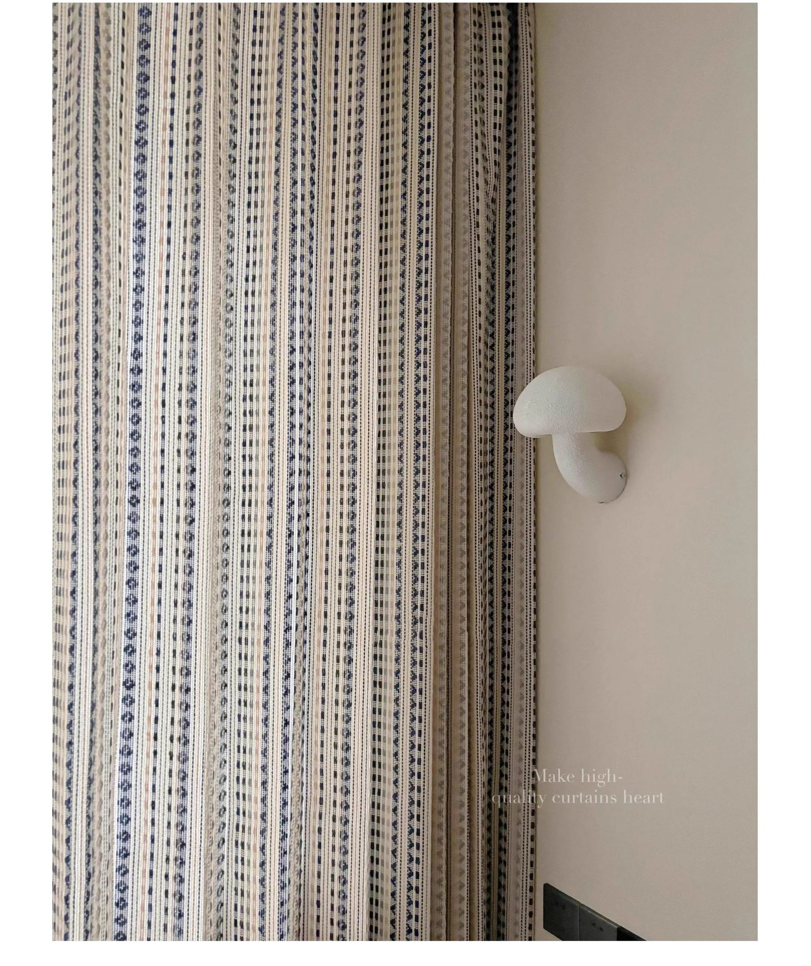 레트로 페어 아일 어린이 방 커튼 도파민 스트라이프 하이 엔드 소녀 방 침실 빛 차단 크림 커튼