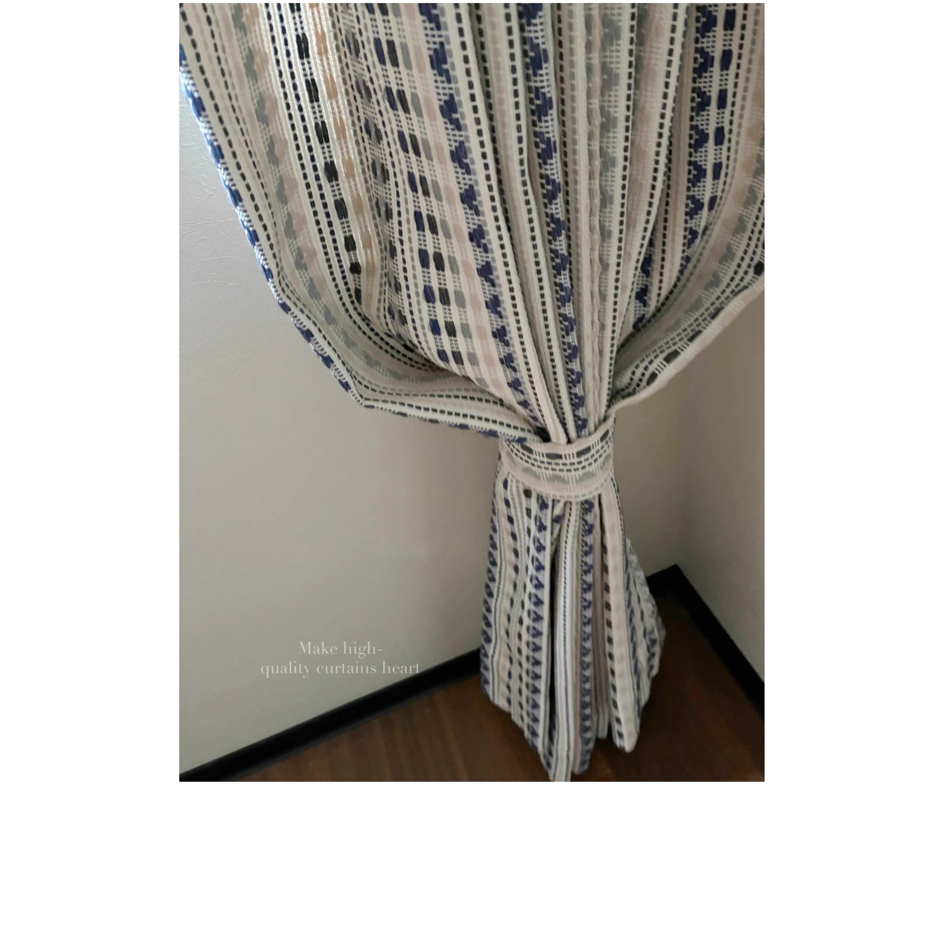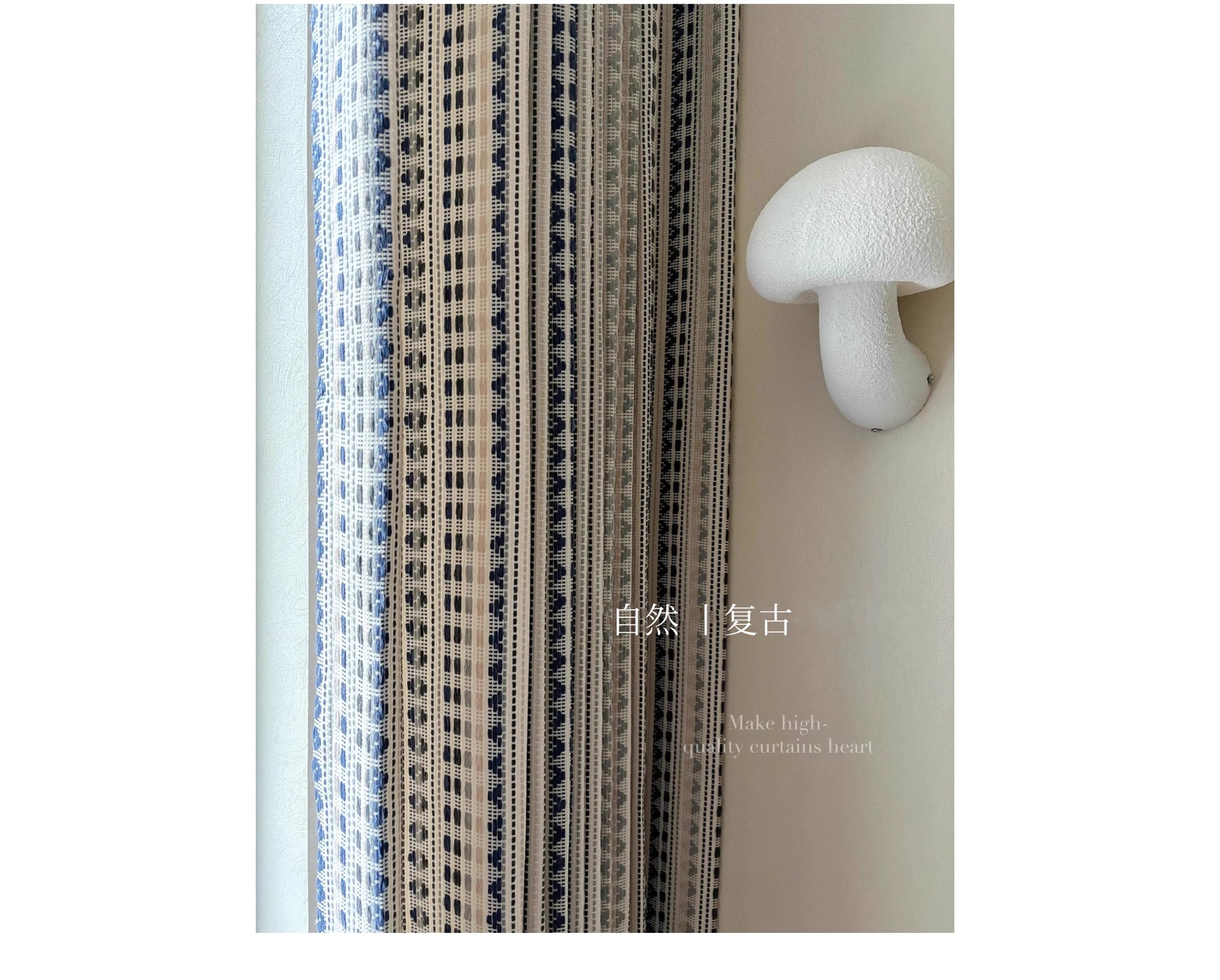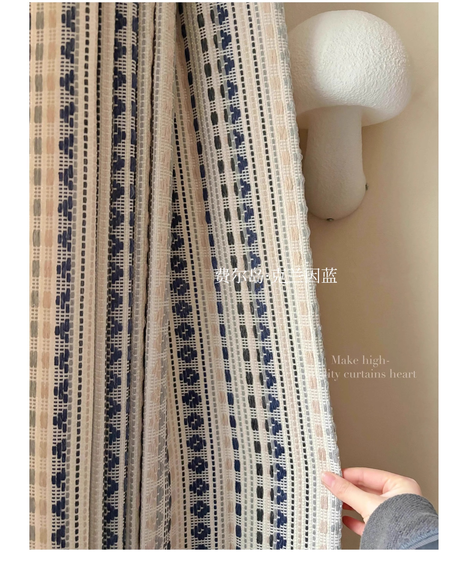레트로 페어 아일 어린이 방 커튼 도파민 스트라이프 하이 엔드 소녀 방 침실 빛 차단 크림 커튼스토어 가기