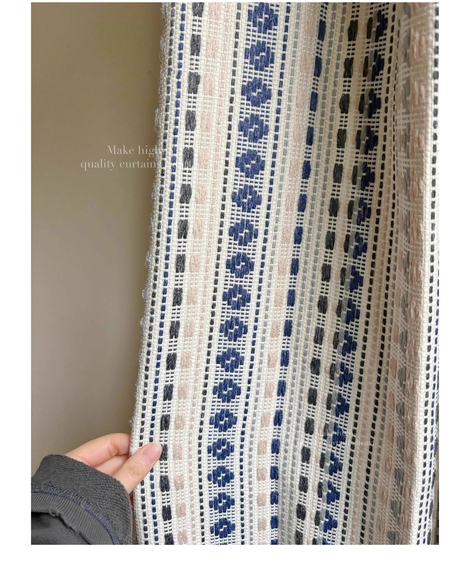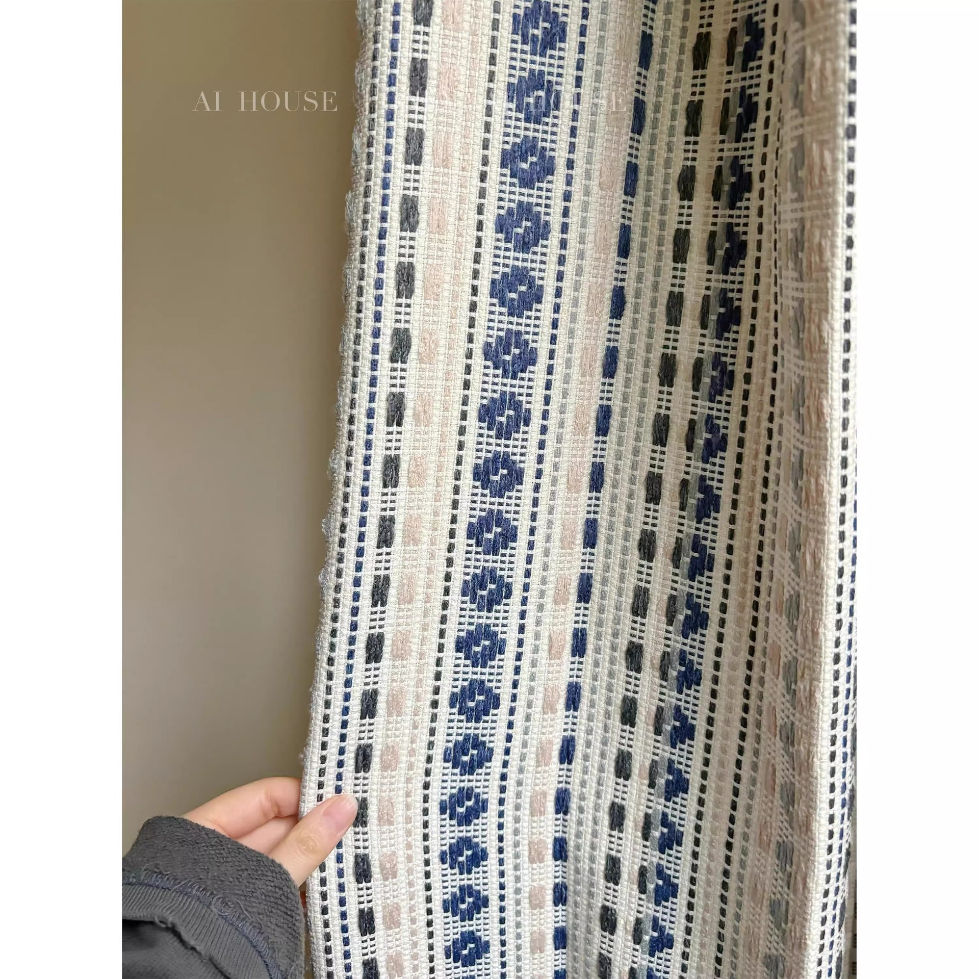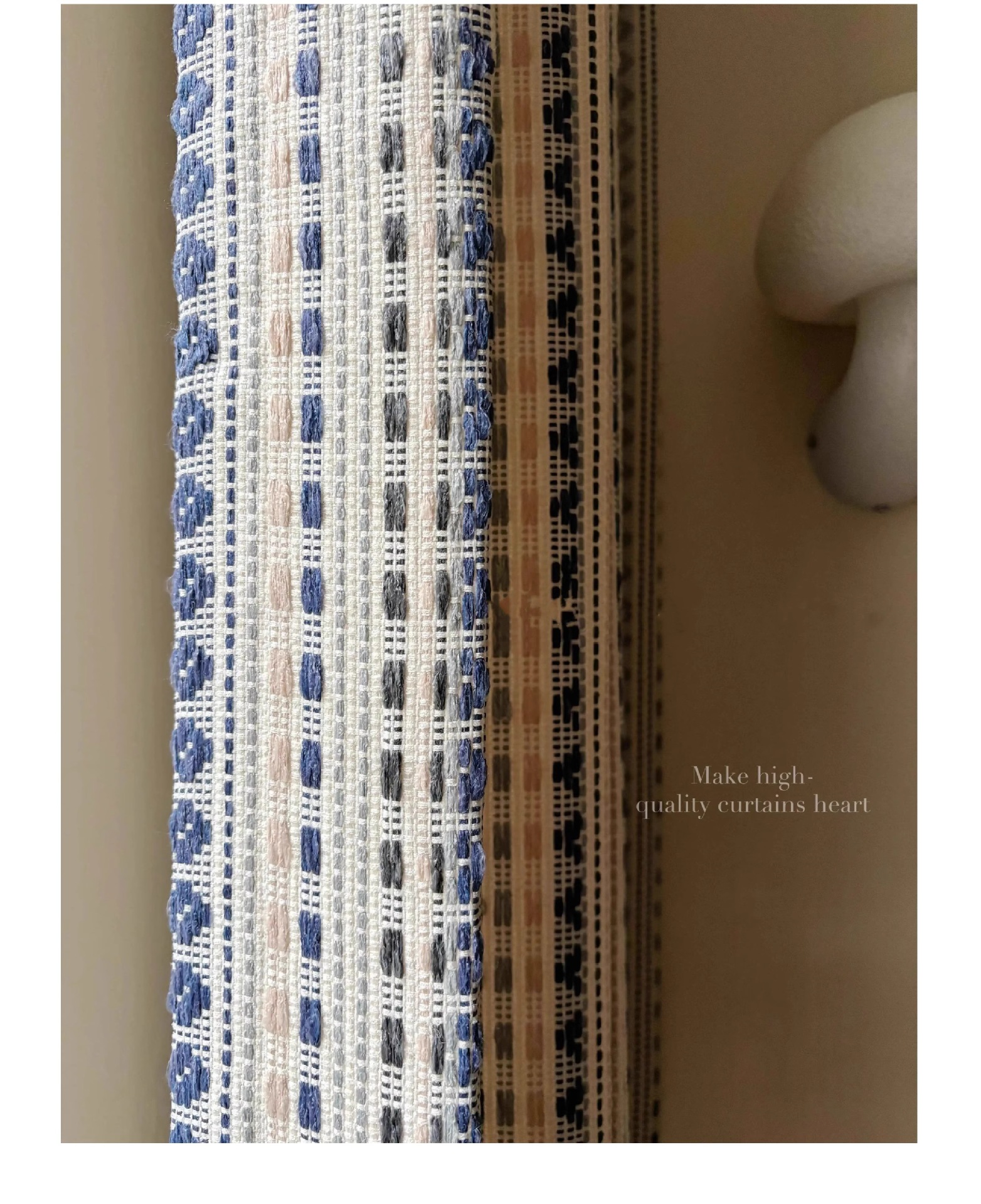 레트로 페어 아일 어린이 방 커튼 도파민 스트라이프 하이 엔드 소녀 방 침실 빛 차단 크림 커튼스토어 가기