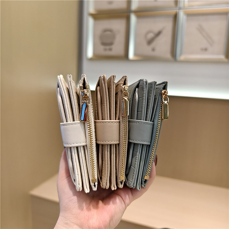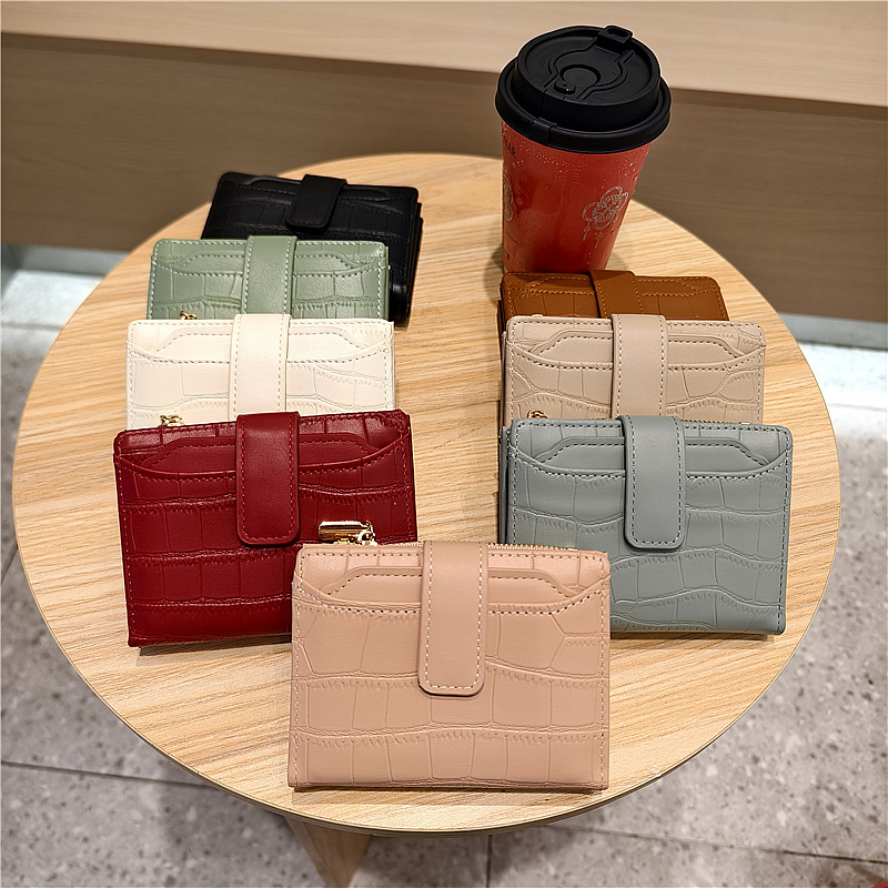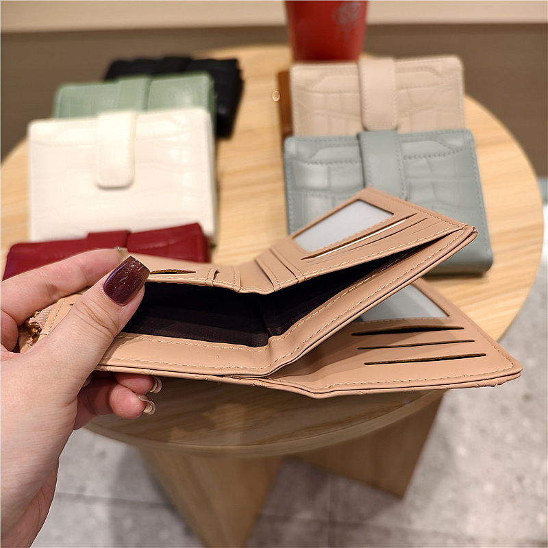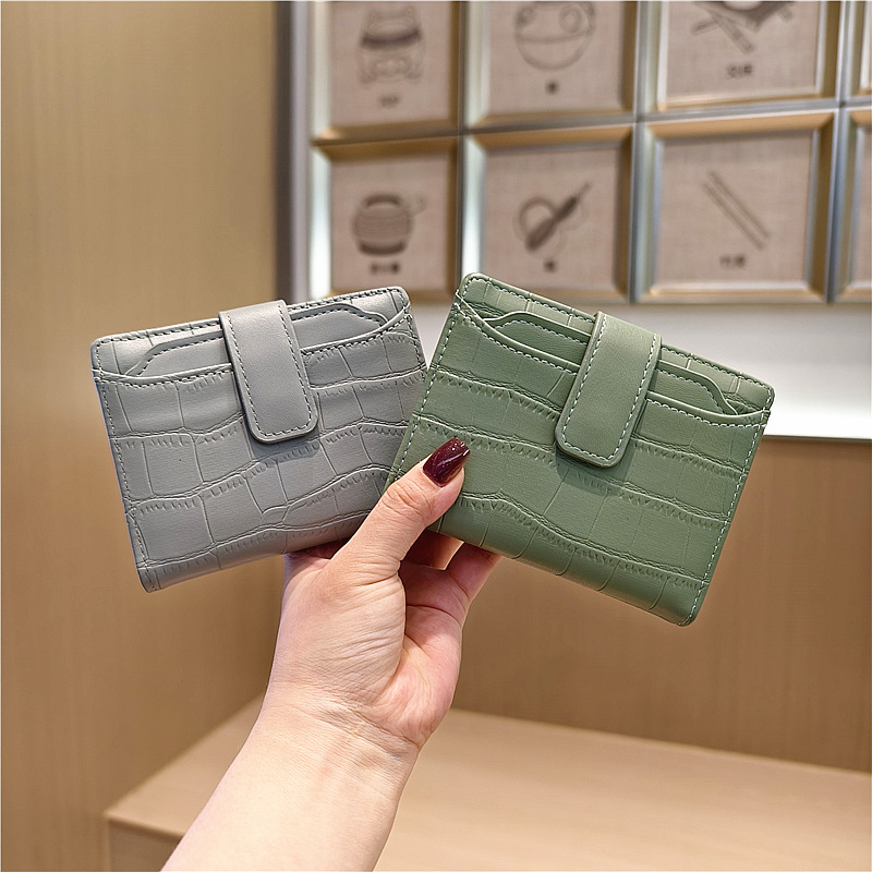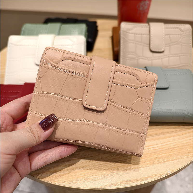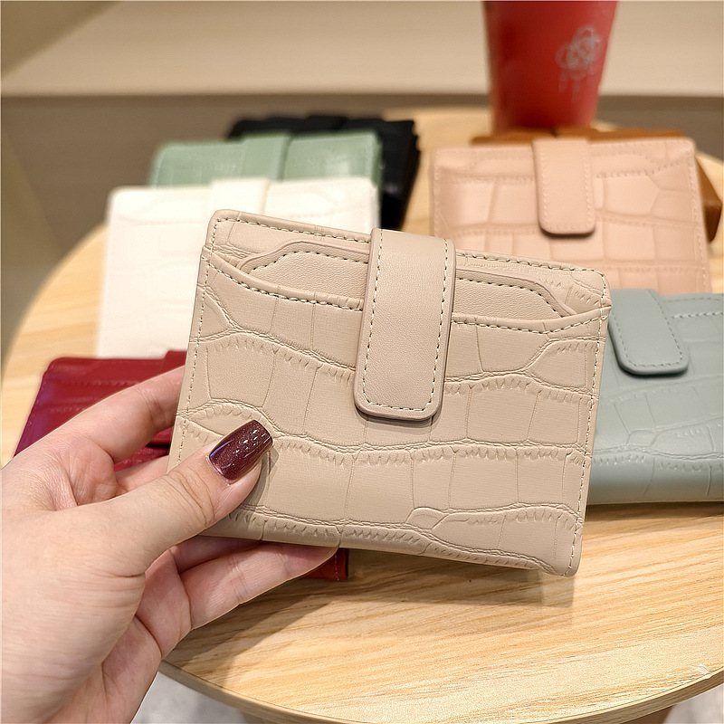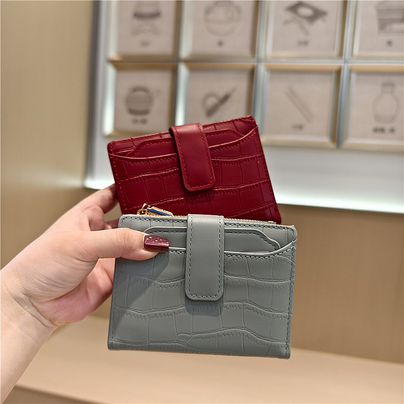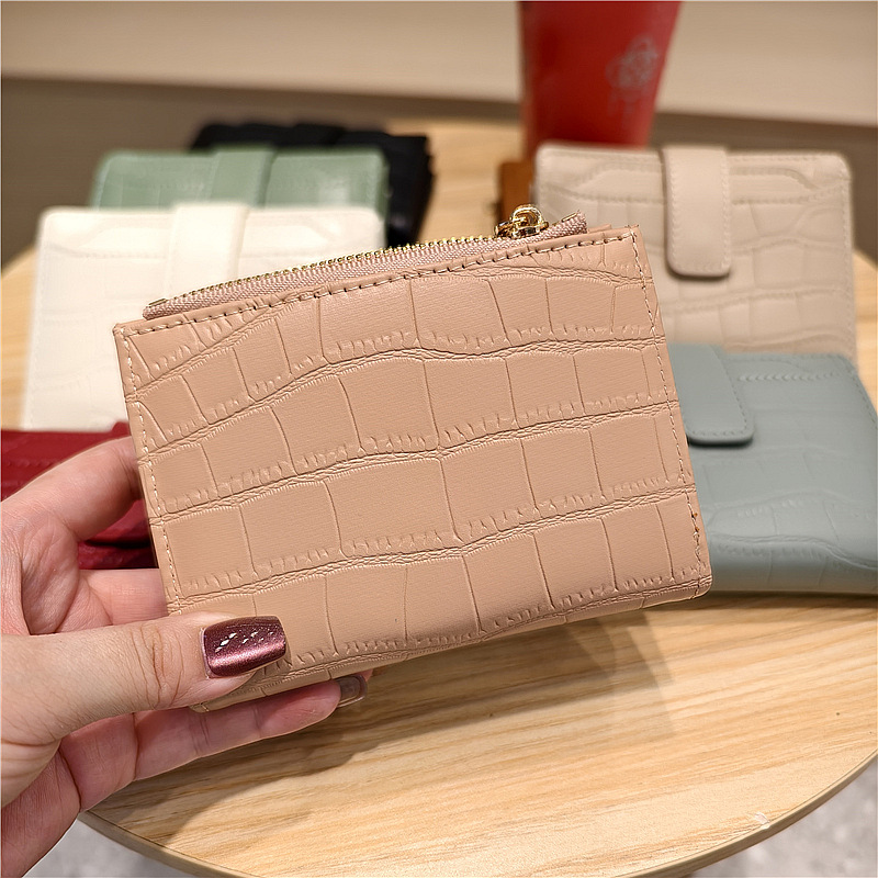다이니 한국 신작 스톤 패턴 짧은 지갑 심플 80% off 접이식 지퍼 멀티 카드 슬롯 가죽 지갑 여성용