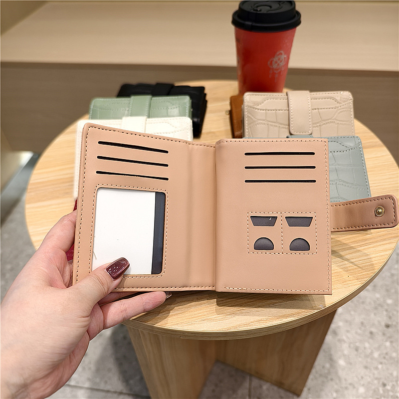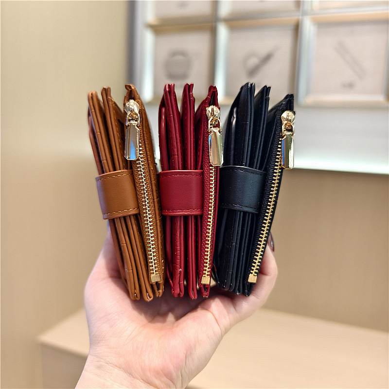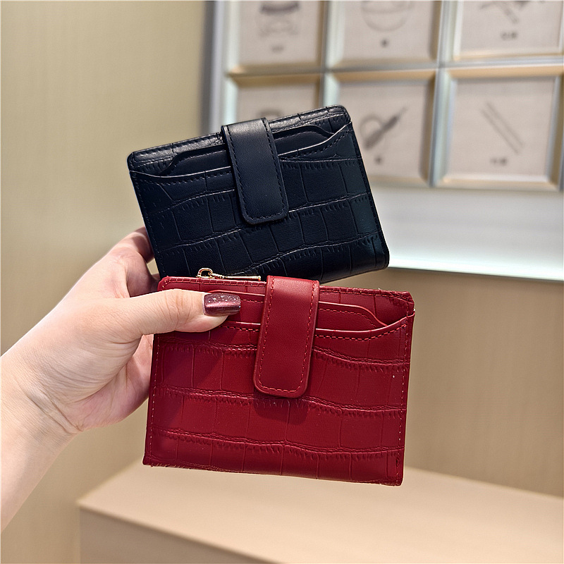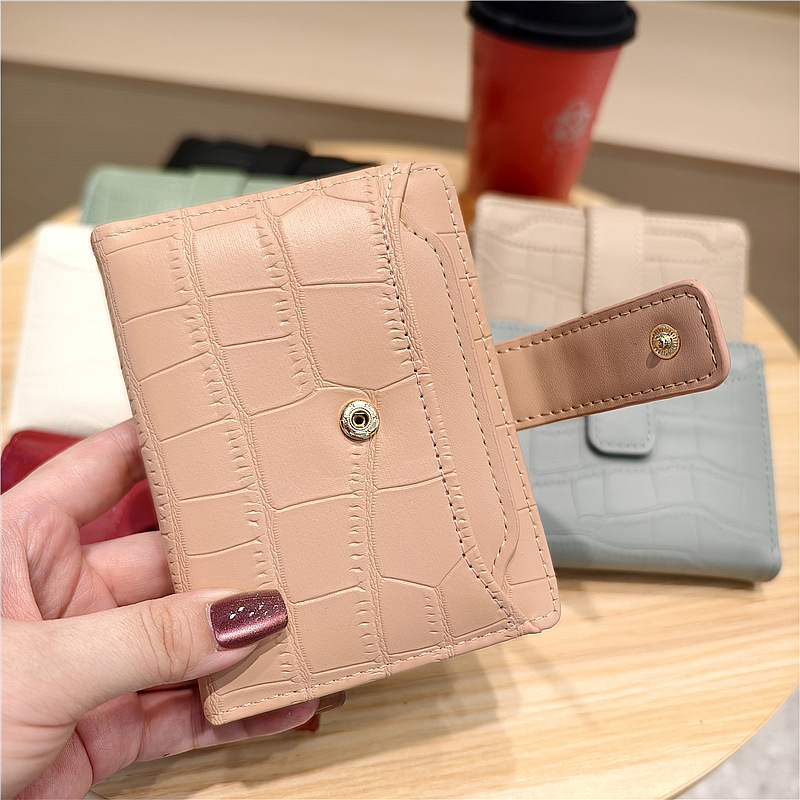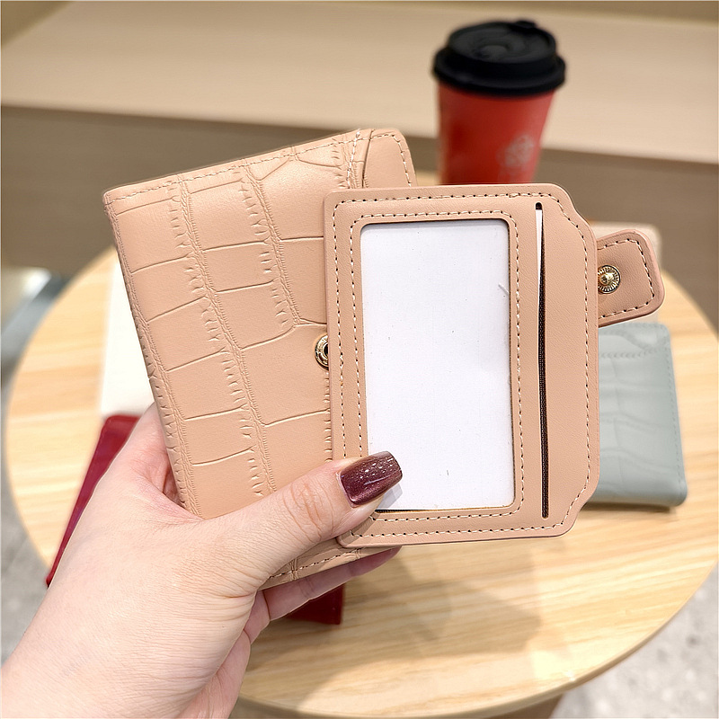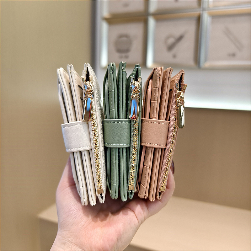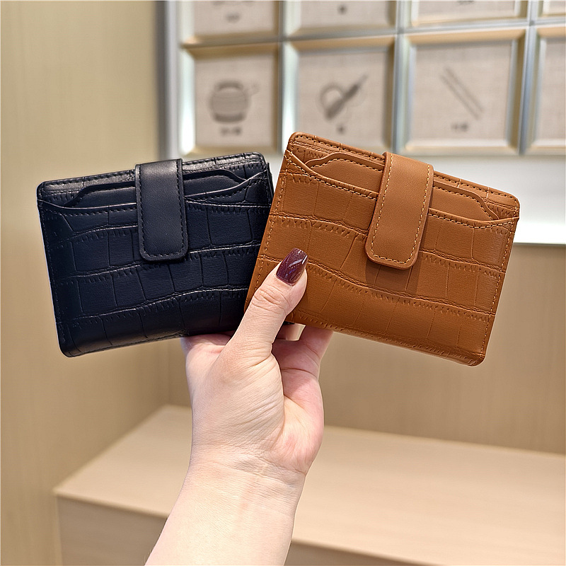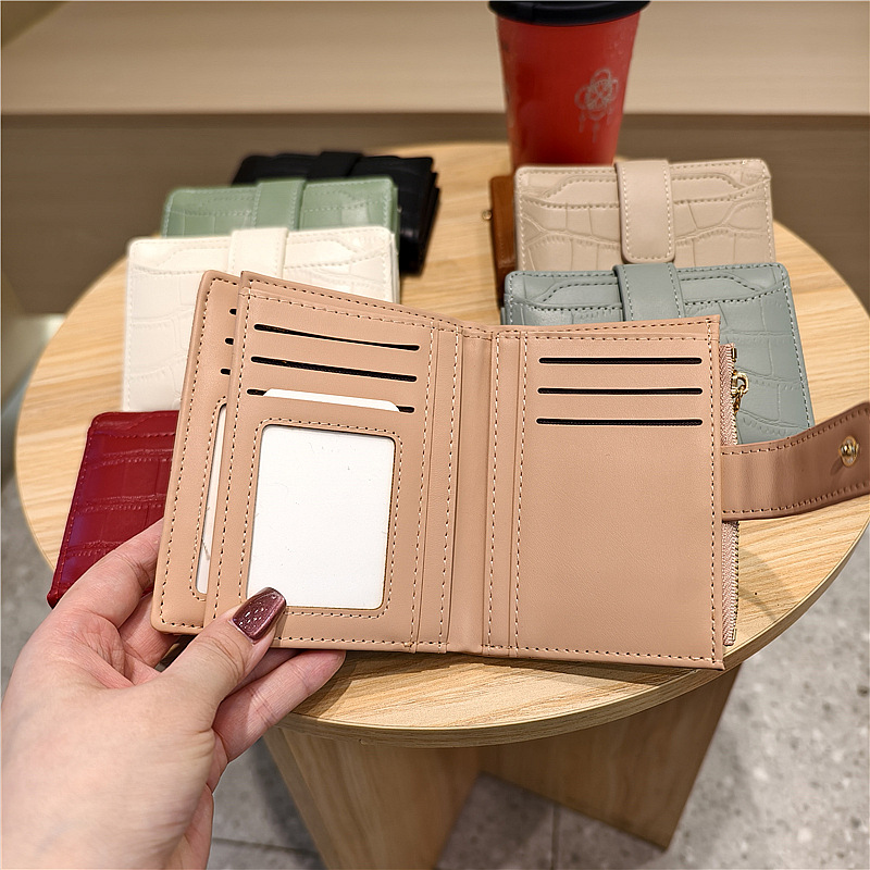 다이니 한국 신작 스톤 패턴 짧은 지갑 심플 80% off 접이식 지퍼 멀티 카드 슬롯 가죽 지갑 여성용
