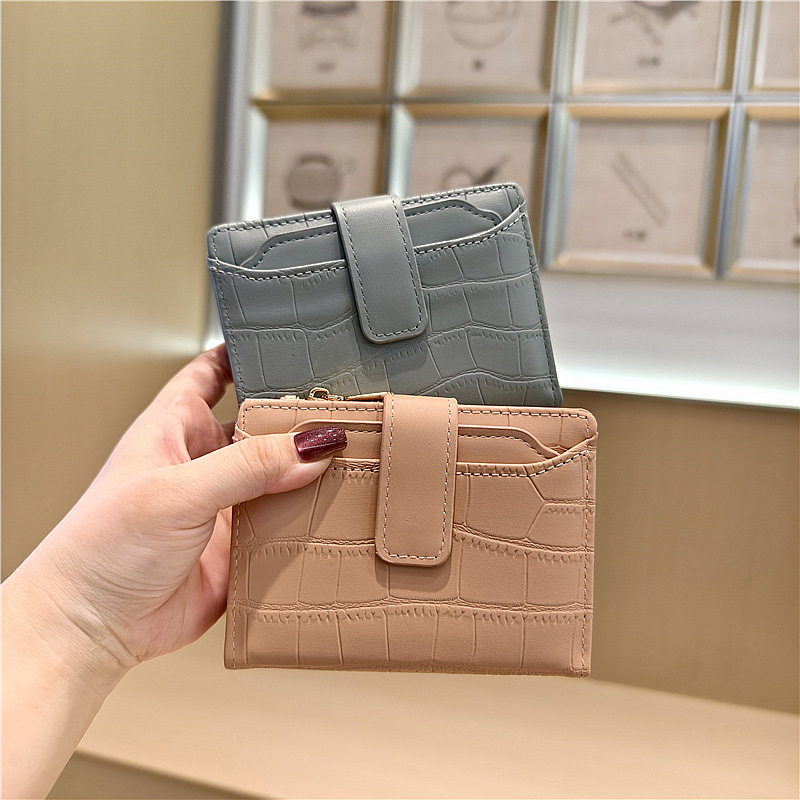 다이니 한국 신작 스톤 패턴 짧은 지갑 심플 80% off 접이식 지퍼 멀티 카드 슬롯 가죽 지갑 여성용스토어 가기