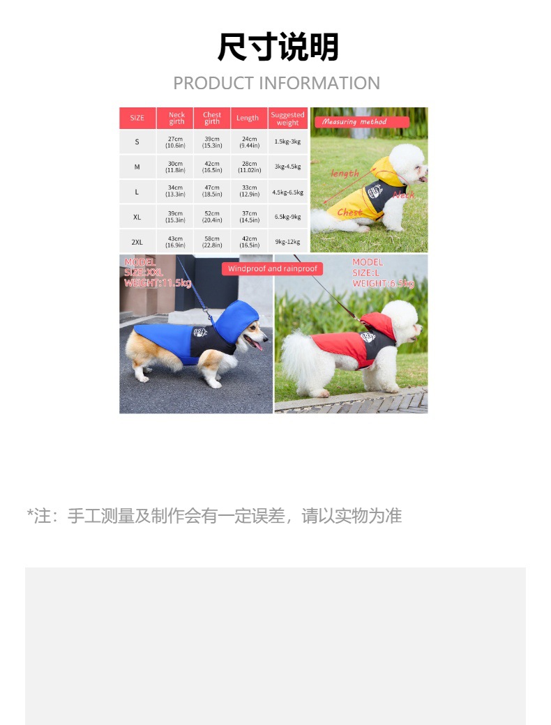 국경을 넘는 새로운 개 비옷 색상 매칭 스티커 사계절 애완 동물 옷 작은 개 테디 비숑 재킷 후드스토어 가기