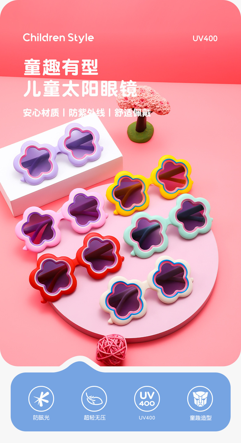 꽃무늬 어린이 만화 선글라스, 자외선 차단, 남녀 아기 선글라스, 귀여운 유아용 안경, 그라데이션스토어 가기