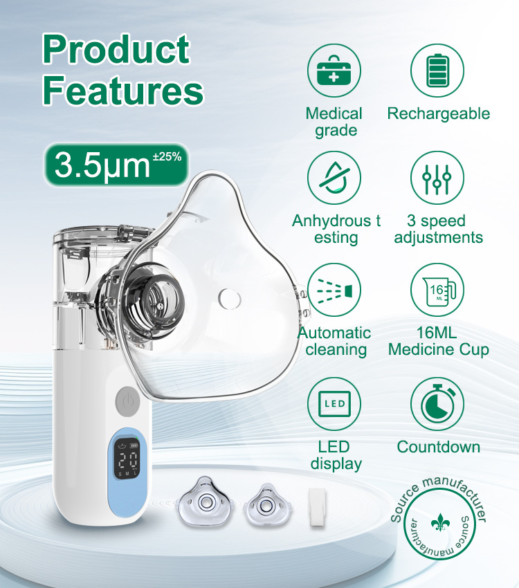 대외 무역 국경 간 인기 LED 디스플레이 리튬 배터리 휴대용 의료용 분무기 가정용 어린이 휴대용 마이크로 네트워크 분무기