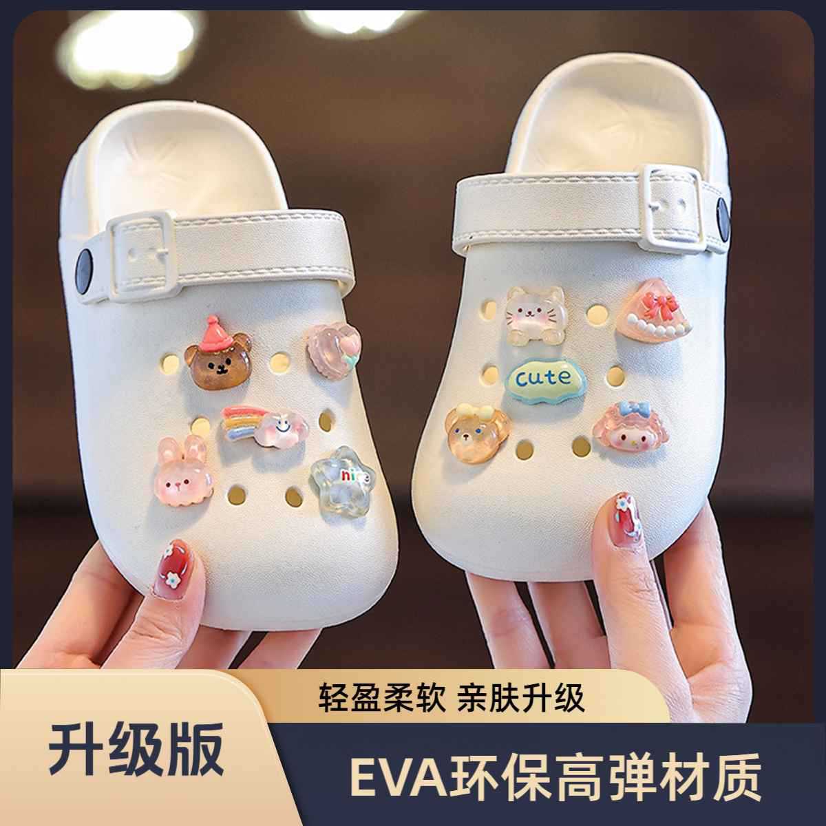 소년과 소녀를위한 어린이 EVA 나막신 귀여운 크리스탈 여름 새로운 이중 목적 실내 욕실 아기 홈 미끄럼 방지
