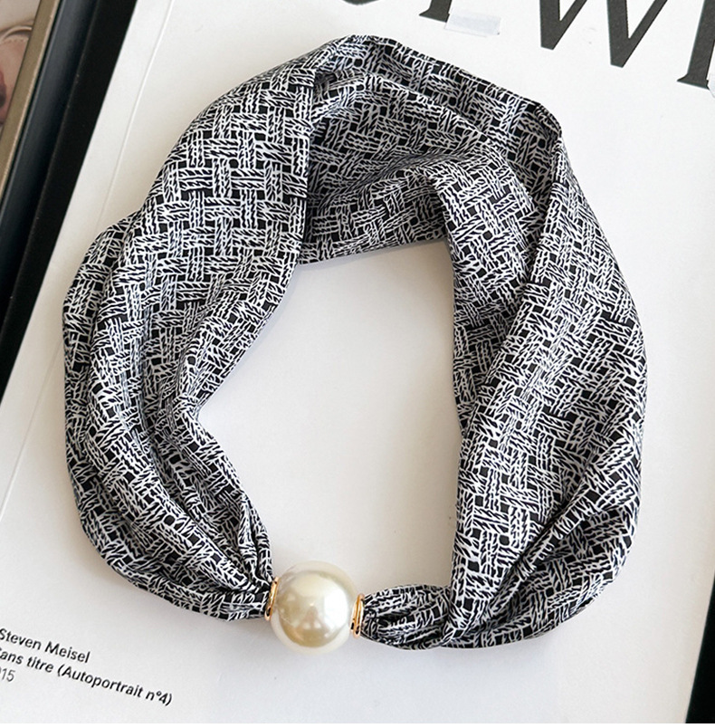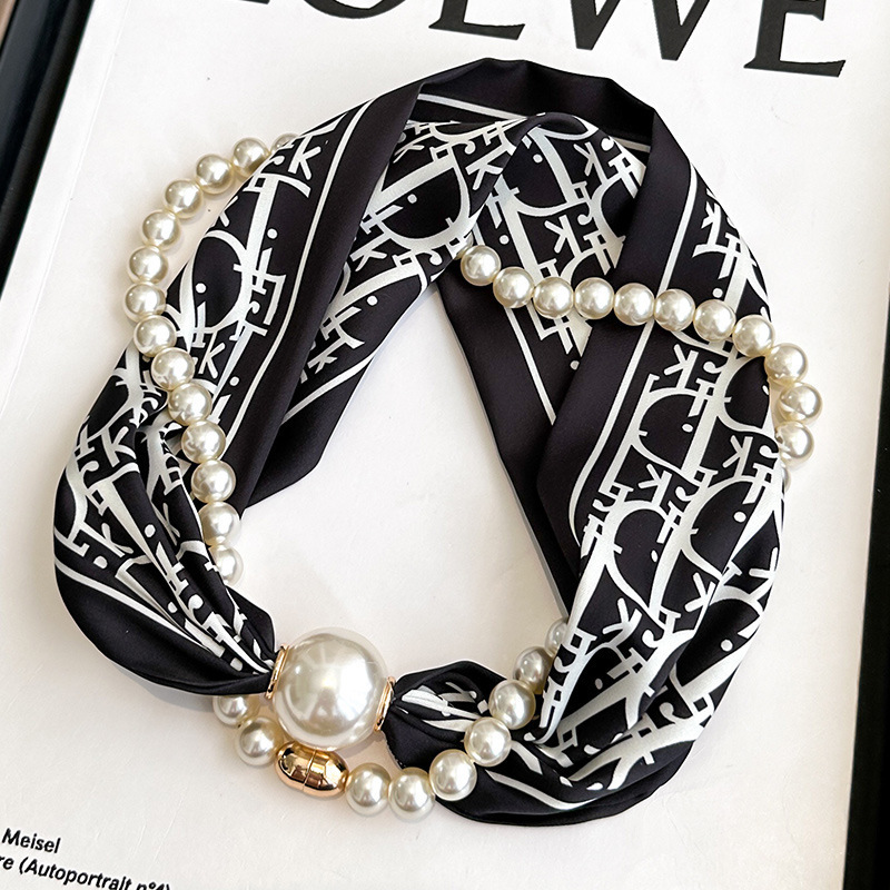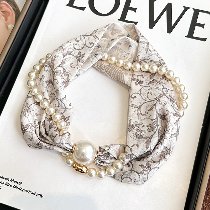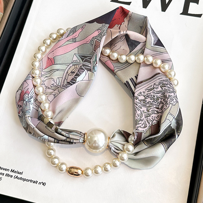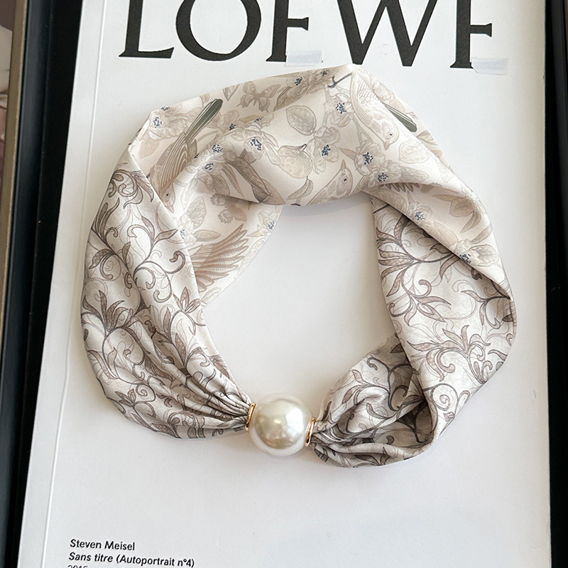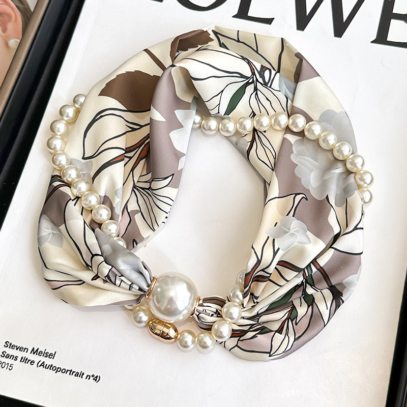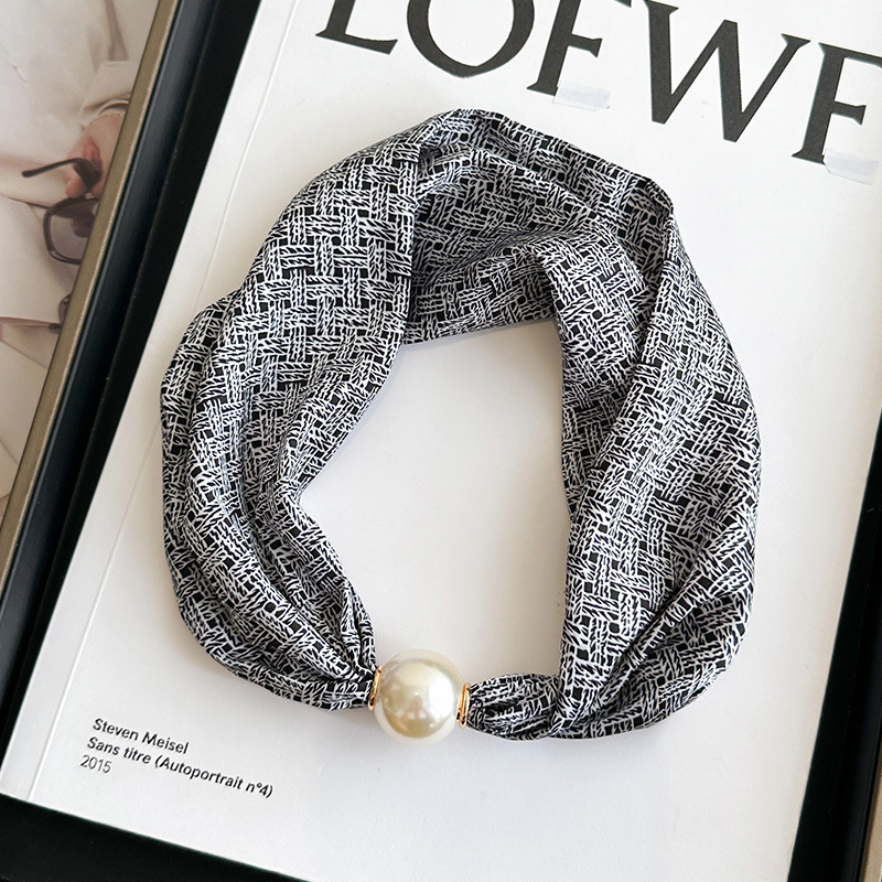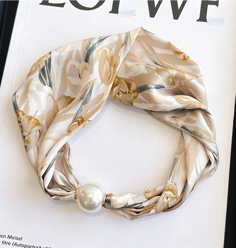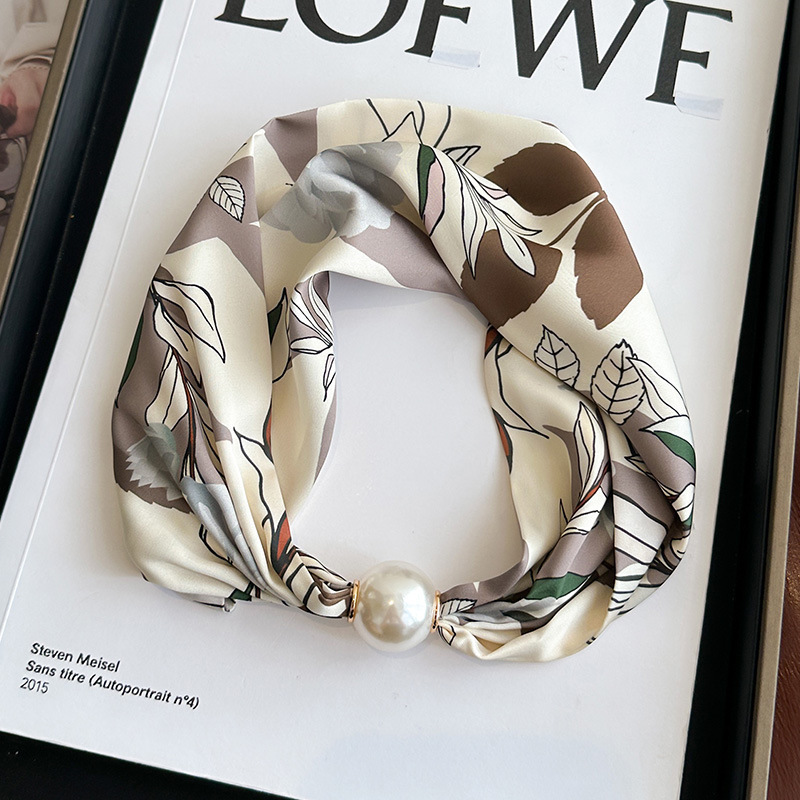 여성을위한 여름 패션 마그네틱 버클 진주 긴 실크 스카프 봄, 가을 스카프 인쇄 장식 스카프 다목적 얇은 목 보호대스토어 가기