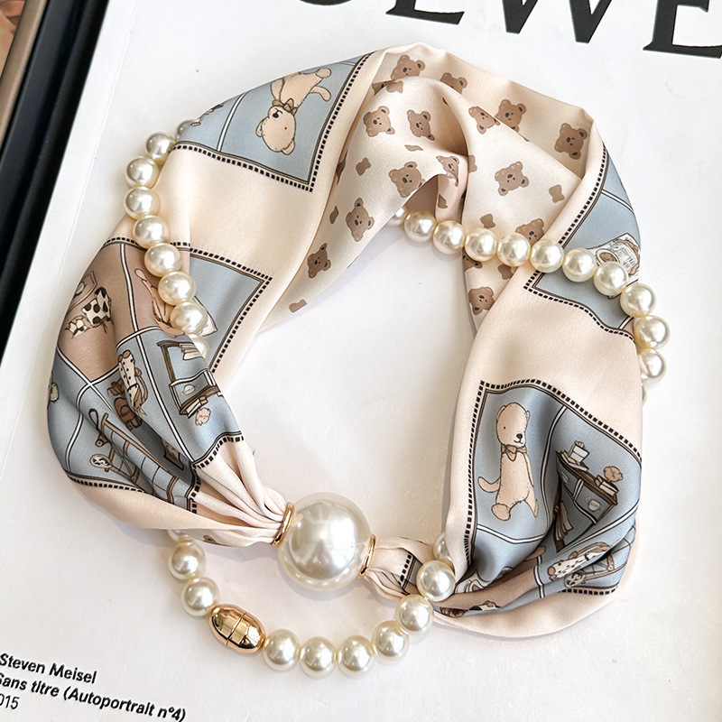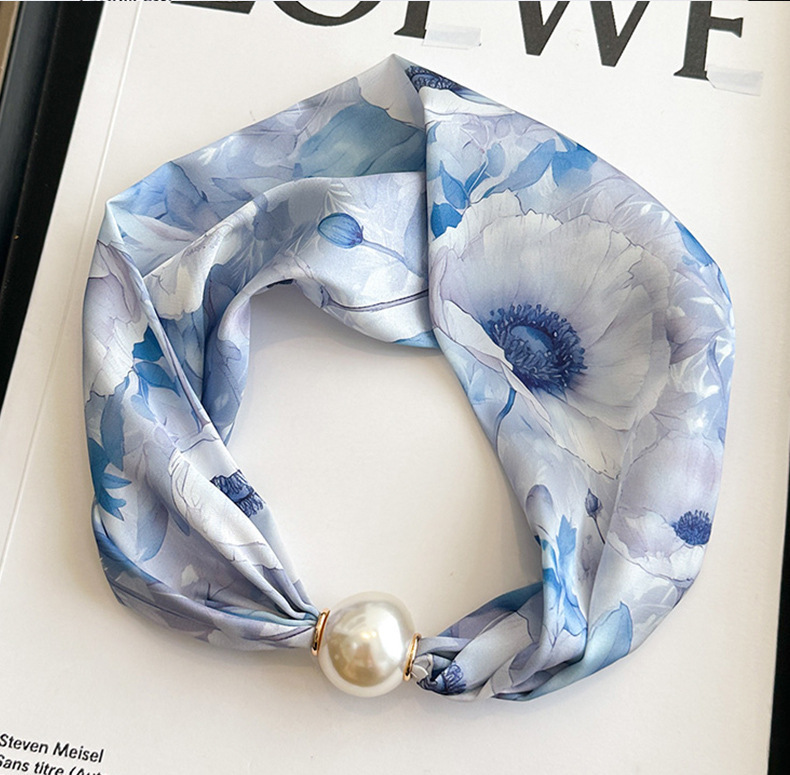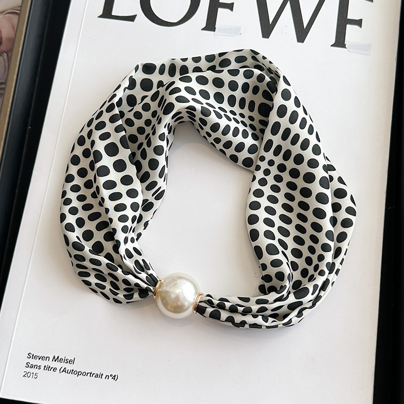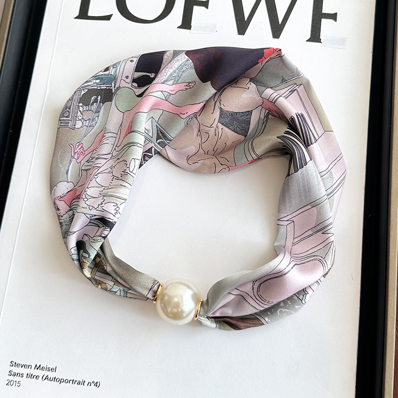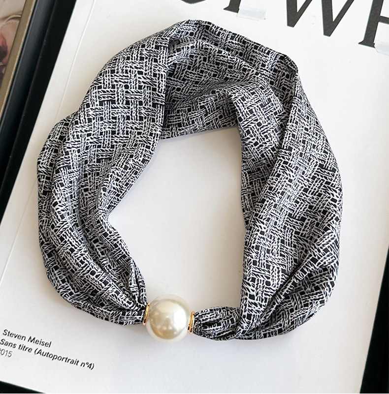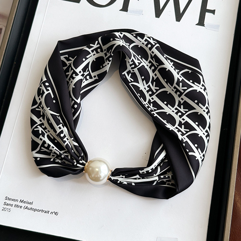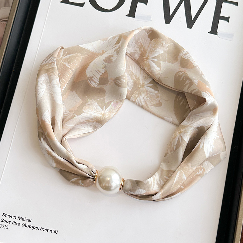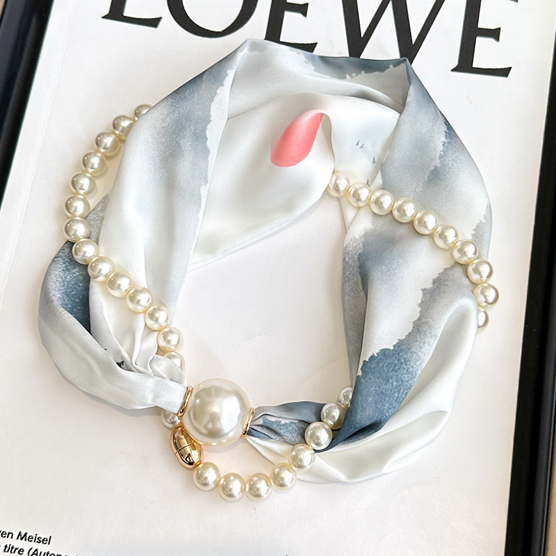 여성을위한 여름 패션 마그네틱 버클 진주 긴 실크 스카프 봄, 가을 스카프 인쇄 장식 스카프 다목적 얇은 목 보호대스토어 가기
